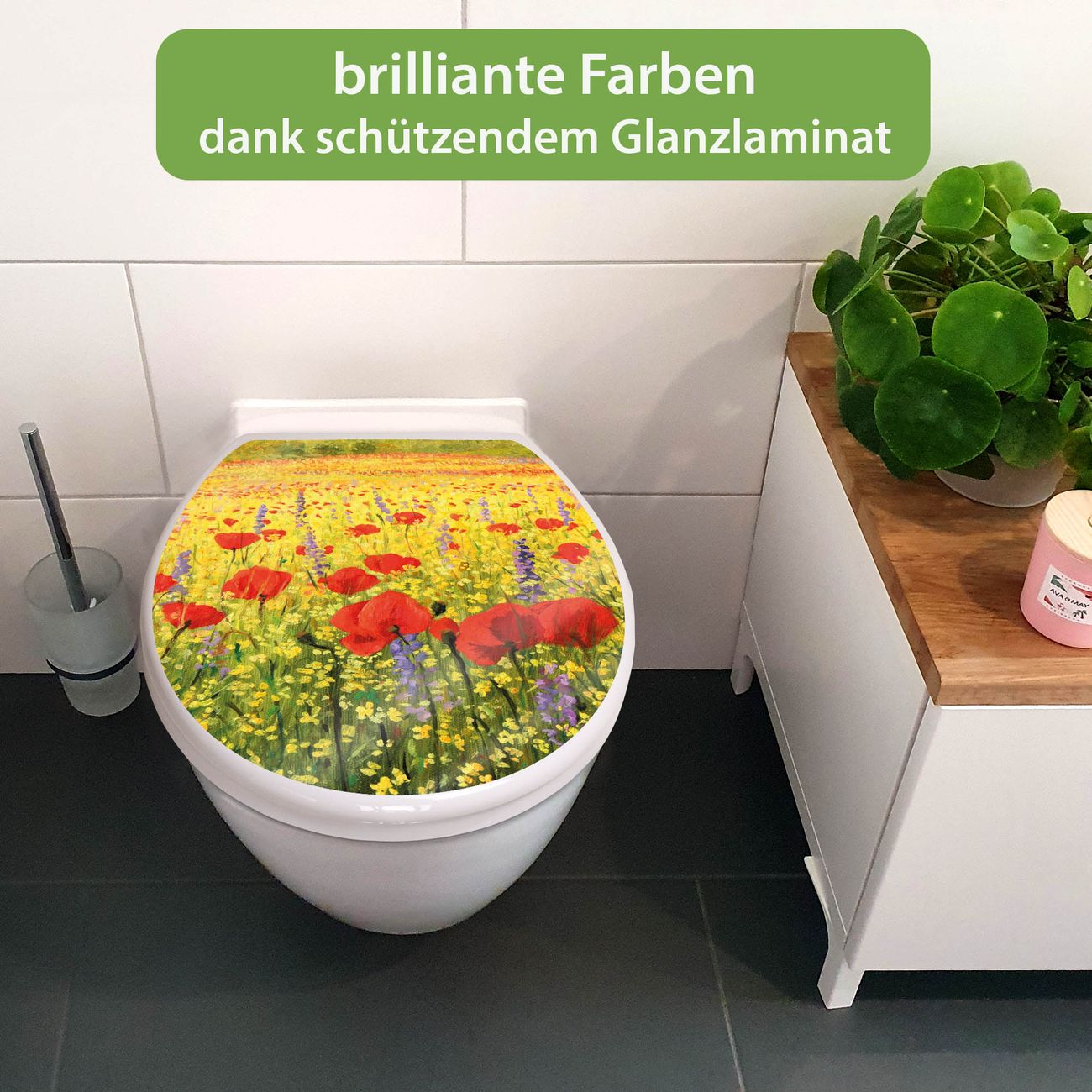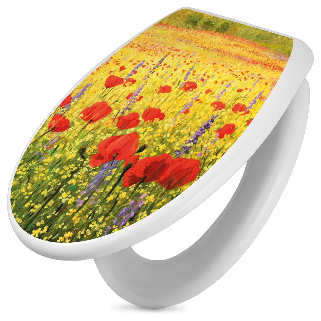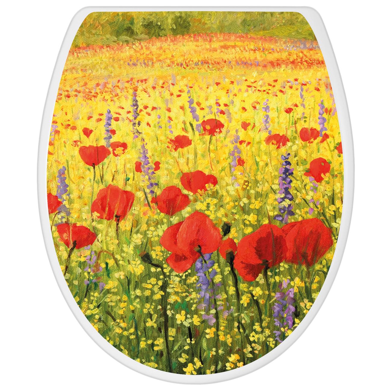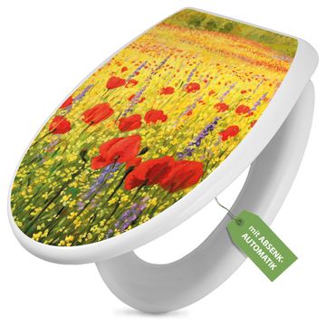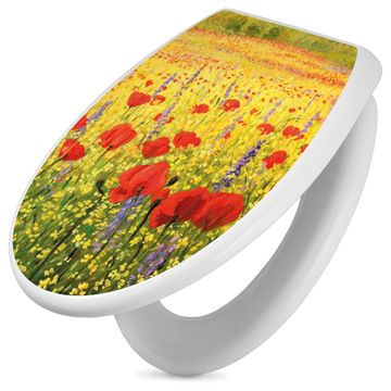 Toilettendeckel weiß mit Absenkautomatik Motiv Feld Mit Mohnblumen