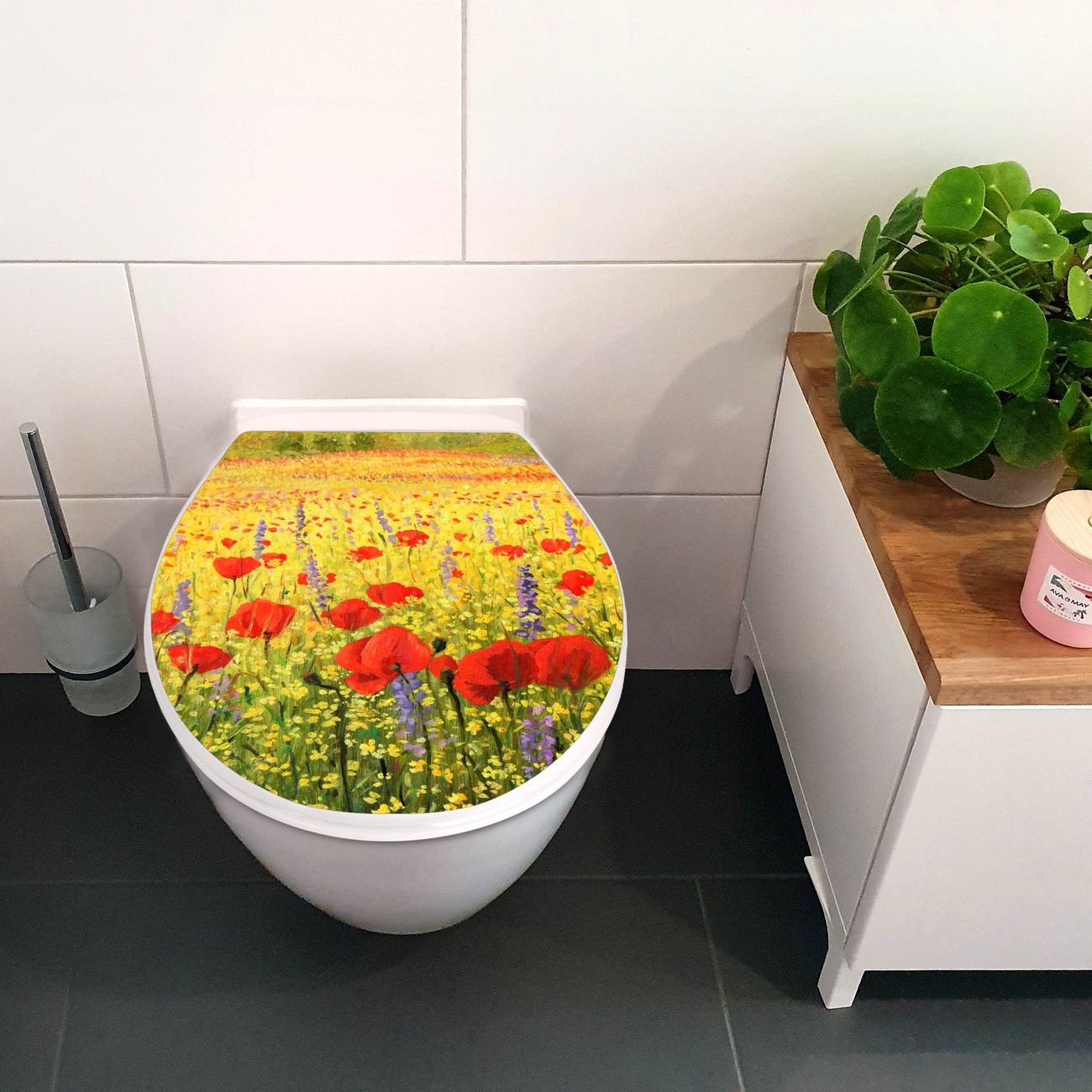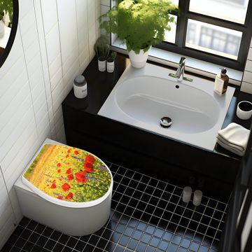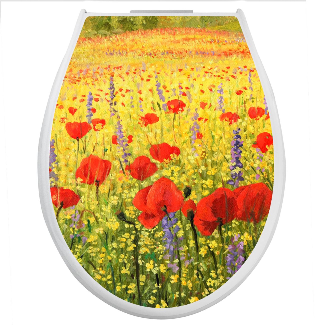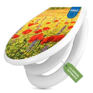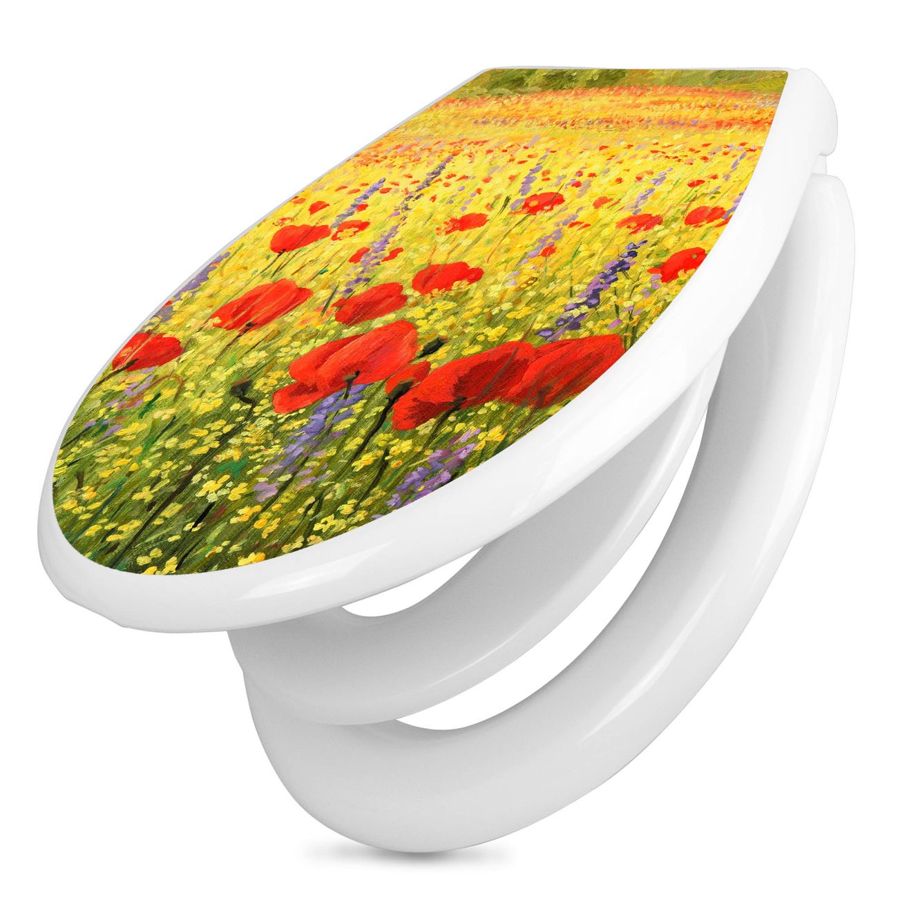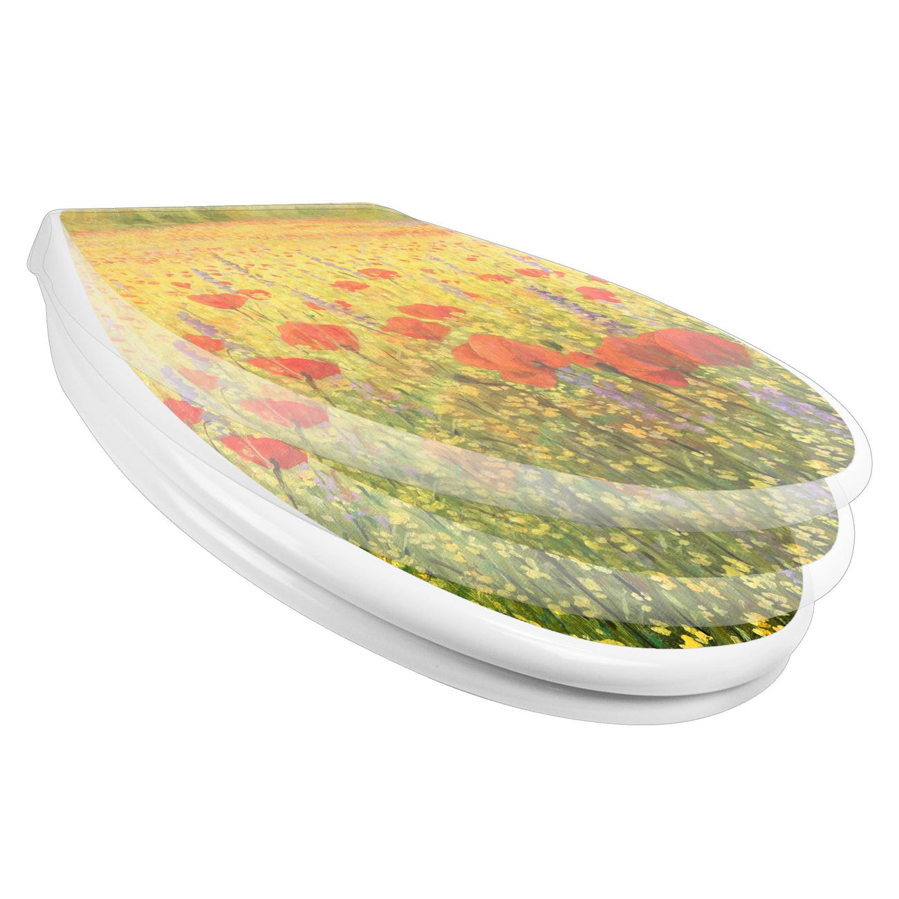 Toilettendeckel weiß mit Absenkautomatik Motiv Feld Mit Mohnblumen