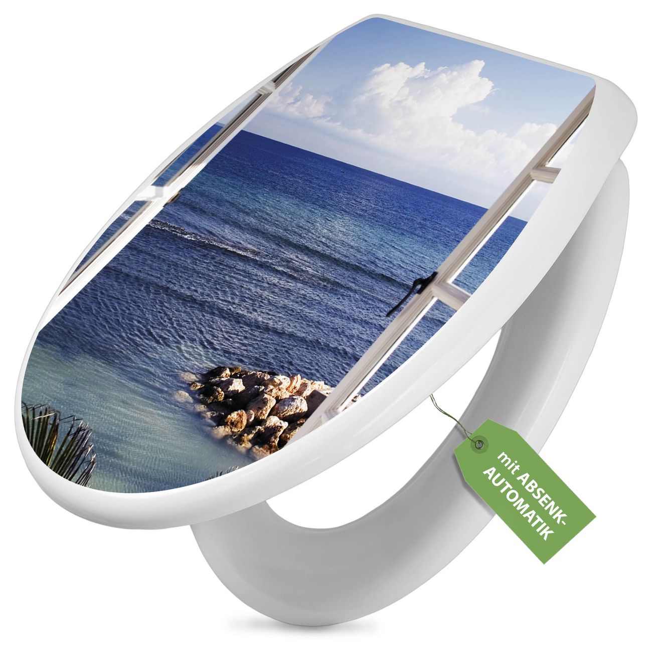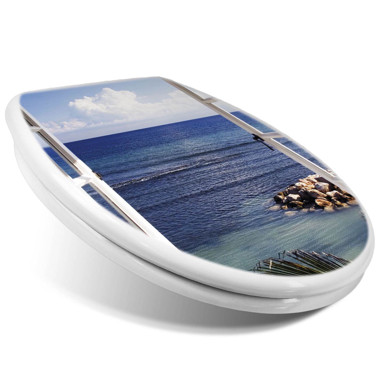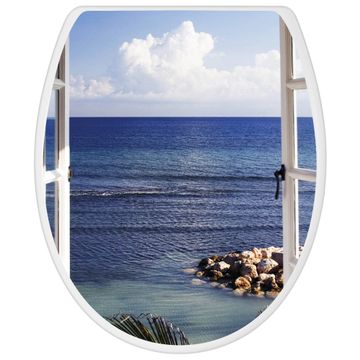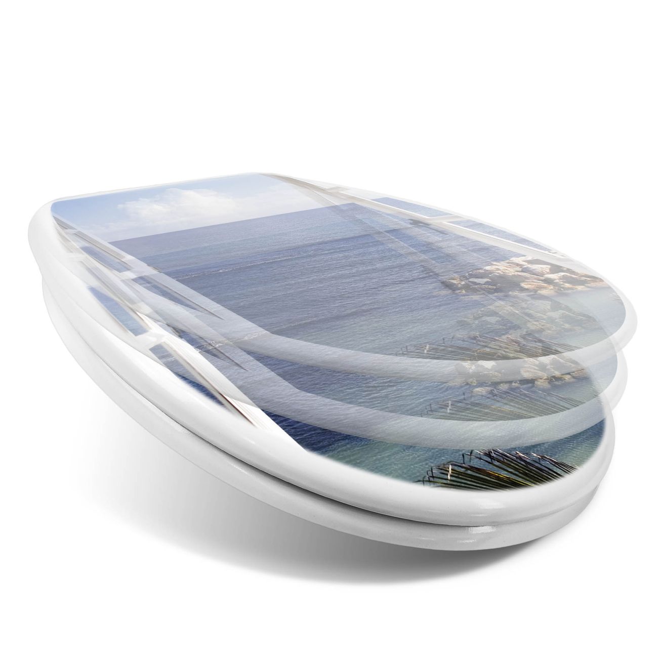 Toilettendeckel weiß mit Absenkautomatik Motiv Fensterpanorama
