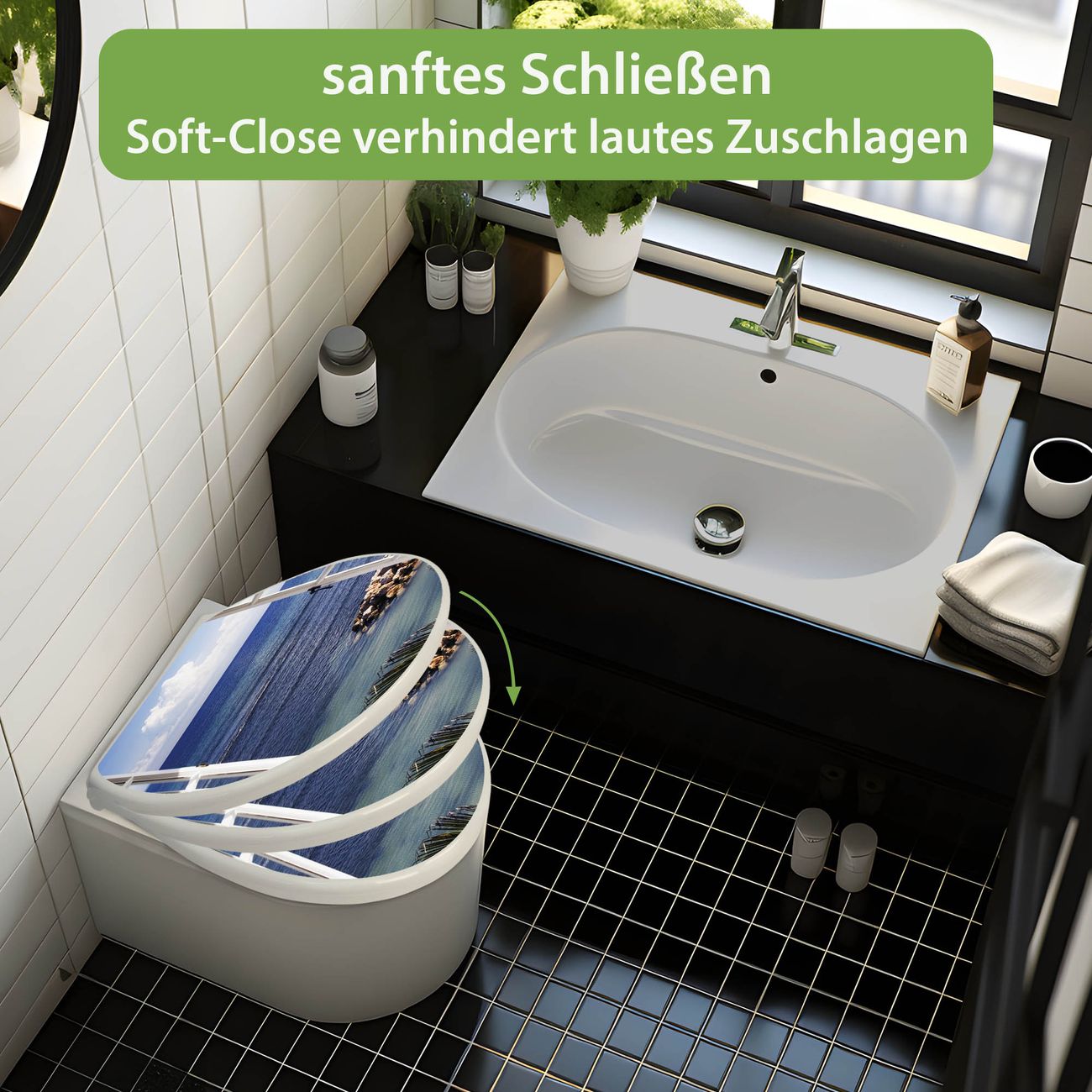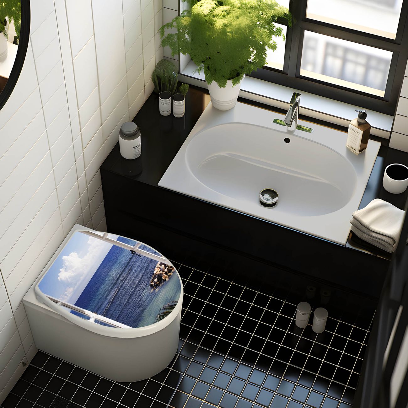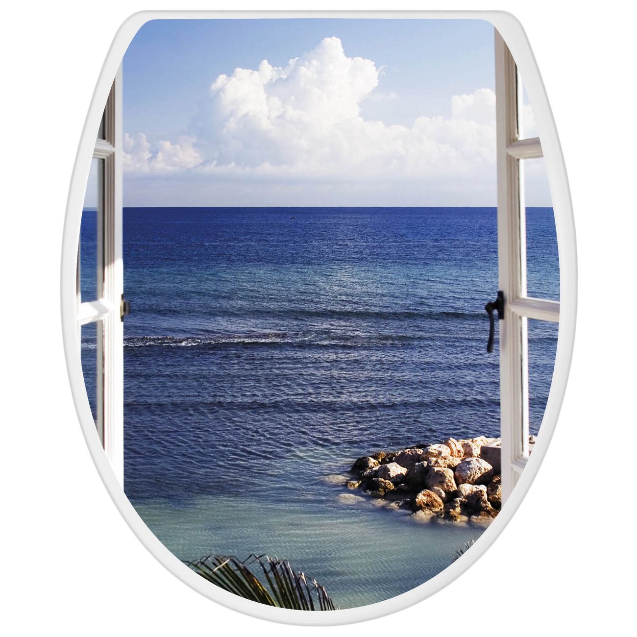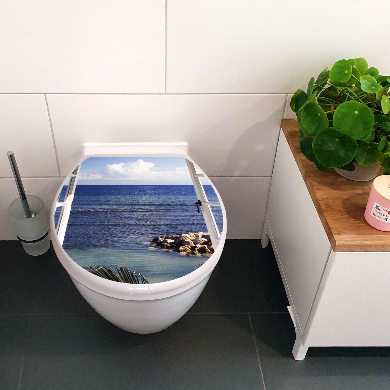 Toilettendeckel weiß mit Absenkautomatik Motiv Fensterpanorama