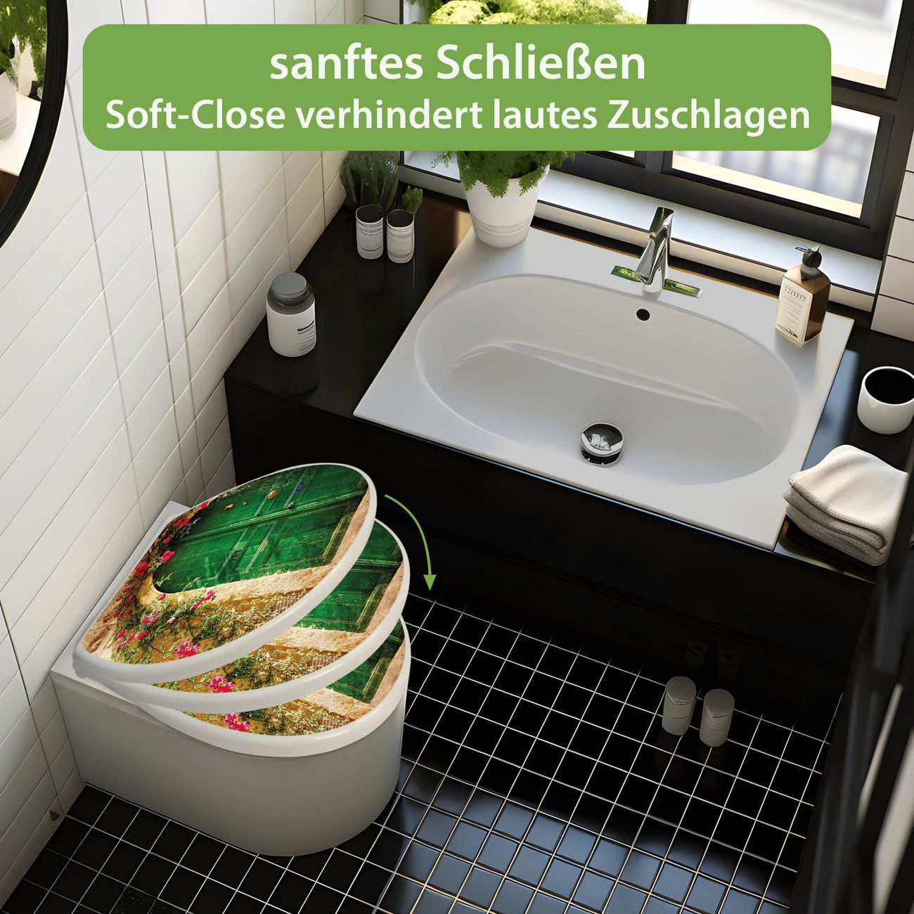 Toilettendeckel weiß mit Absenkautomatik Motiv Ferienhaus