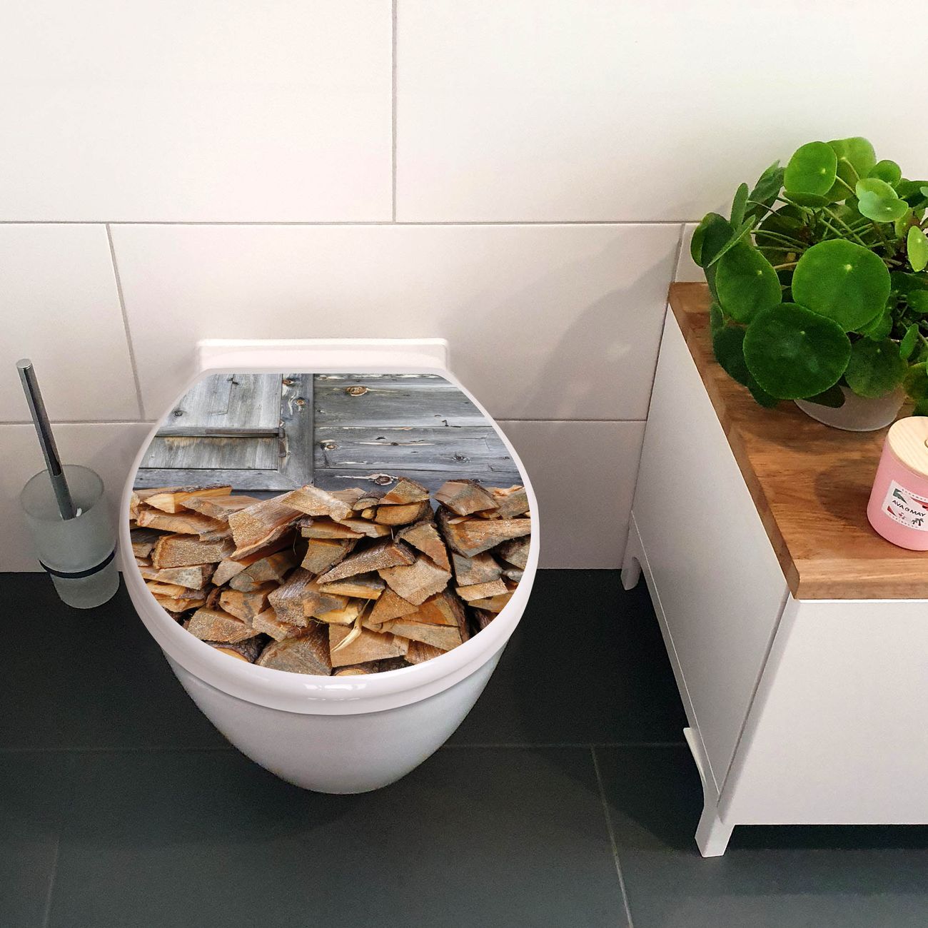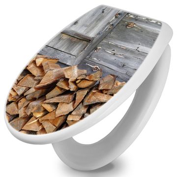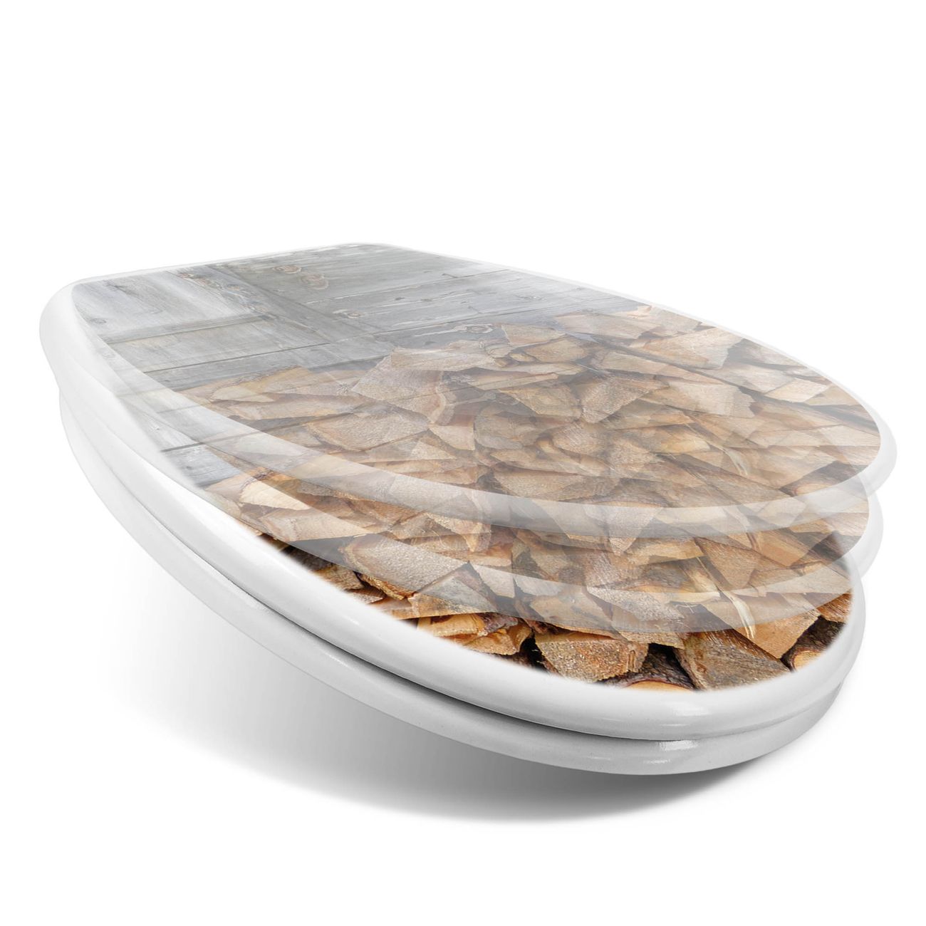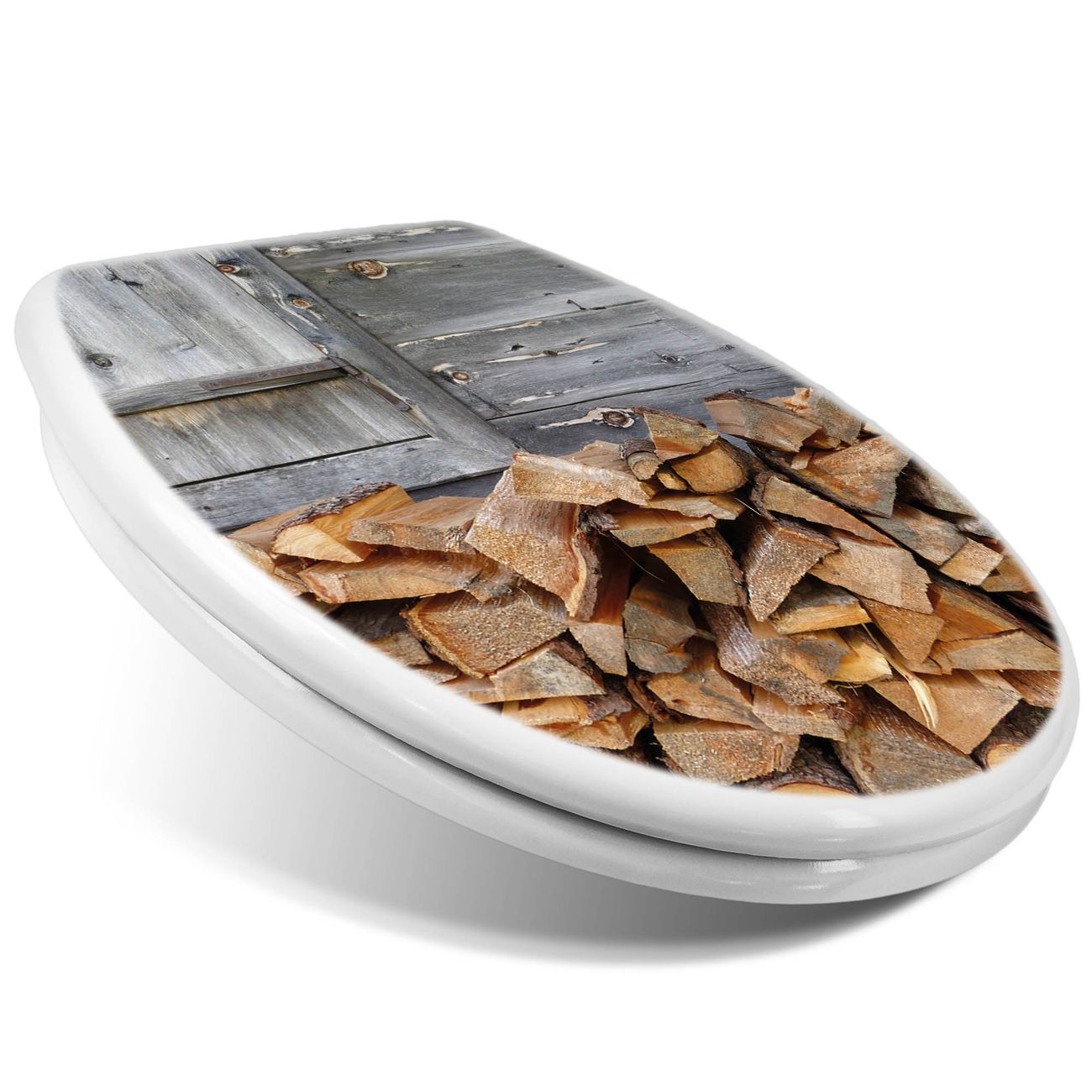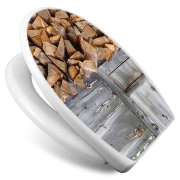 Toilettendeckel weiß mit Absenkautomatik Motiv Feuerholz