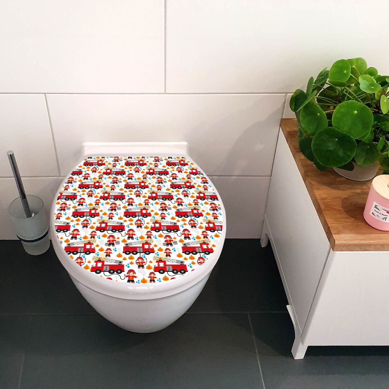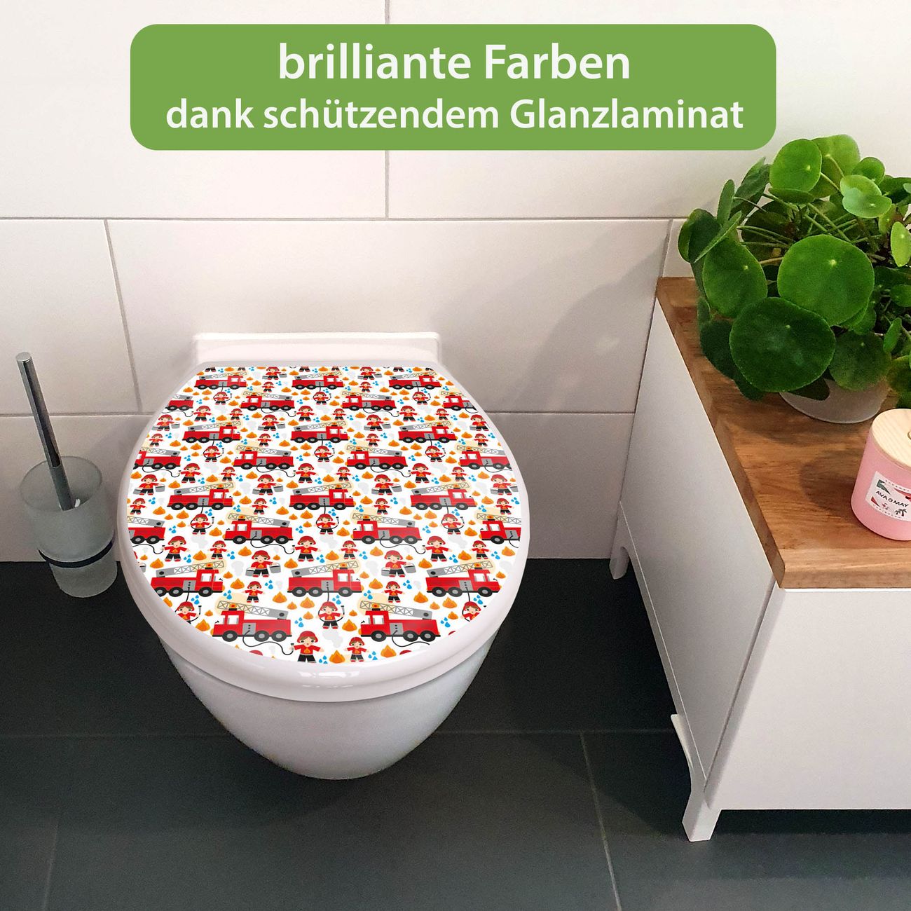 Toilettendeckel weiß mit Absenkautomatik Motiv Feuerwehr