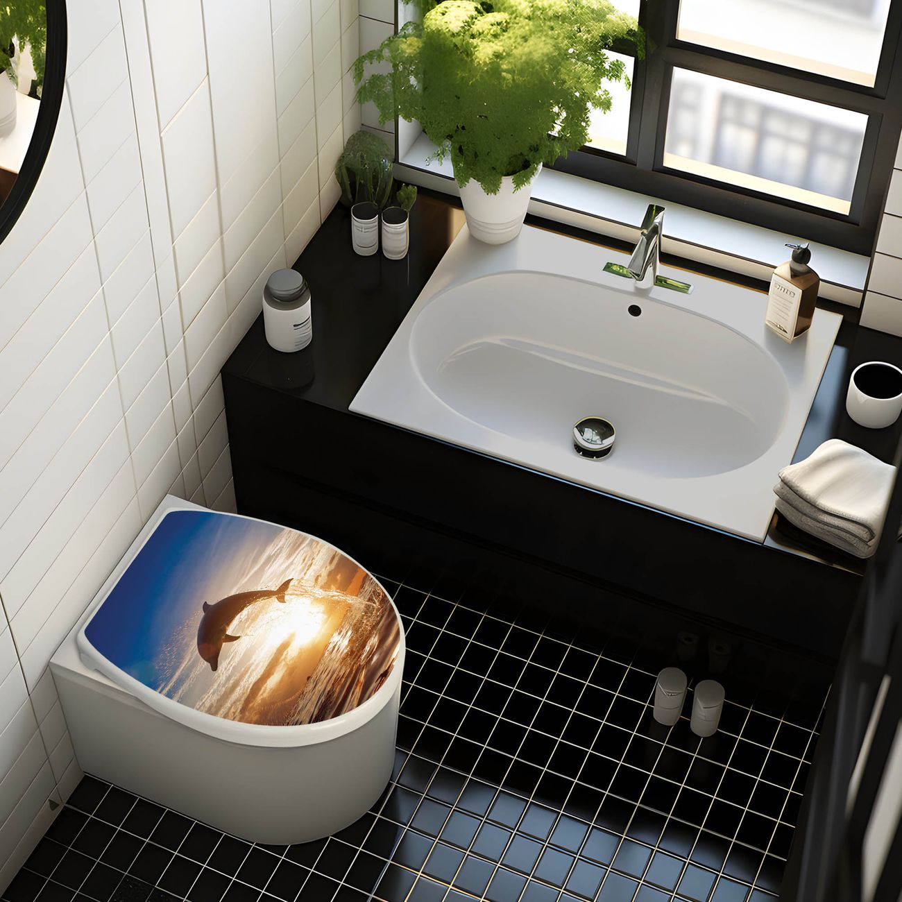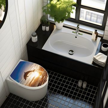 FUNKTION: Mit dem banjado Toilettendeckel mit Absenkautomatik verbinden Sie Design mit Funktionalität. Sie erhalten den WC Sitz in bewährt guter Qualität mit Edelstahl Scharnieren und Montagematerial. DESIGN: Der Klodeckel hat eine ansprechende Optik, eine besondere Form und ist sehr stabil. Das Motiv besteht aus einer farbbrillianten Motivfolie, die durch ein Schutzlaminat zusätzlich vor Kratzern schützt. DETAILS: Der Toilettensitz besteht aus Duroplast, die Scharniere sind aus hochwertigem Edelstahl, Materialien die Ihnen eine leichte und hygienische Reinigung ermöglichen. Die Gesamtgröße beträgt 37,3cm x 45cm x 5cm, die Grundfarbe ist weiß. NUTZEN: Mit Hilfe der detaillierten Aufbauanleitung ermöglichen wir eine schnelle und unkomplizierte Montage. Die banjado Klobrille ist universell geeignet für alle gängigen WC Schüsseln. Der Lochabstand zur Befestigung kann variable eingestellt werden. BANJADO: Ihr WC-Deckel wird in Sachsen in einer kleinen Manufaktur von Hand veredelt. Die Motivfolie ist lösungsmittelfrei und schutzlaminiert, für einen langen Halt. Wir wünschen viel Freude bei der Auswahl eines schönen Motivs.