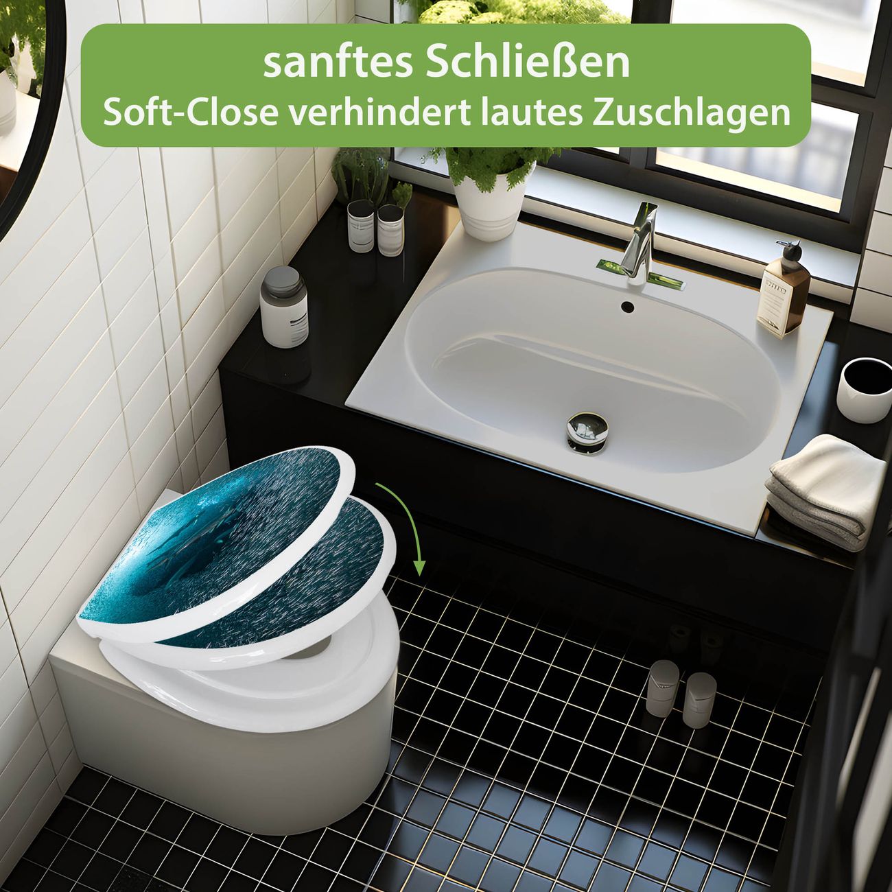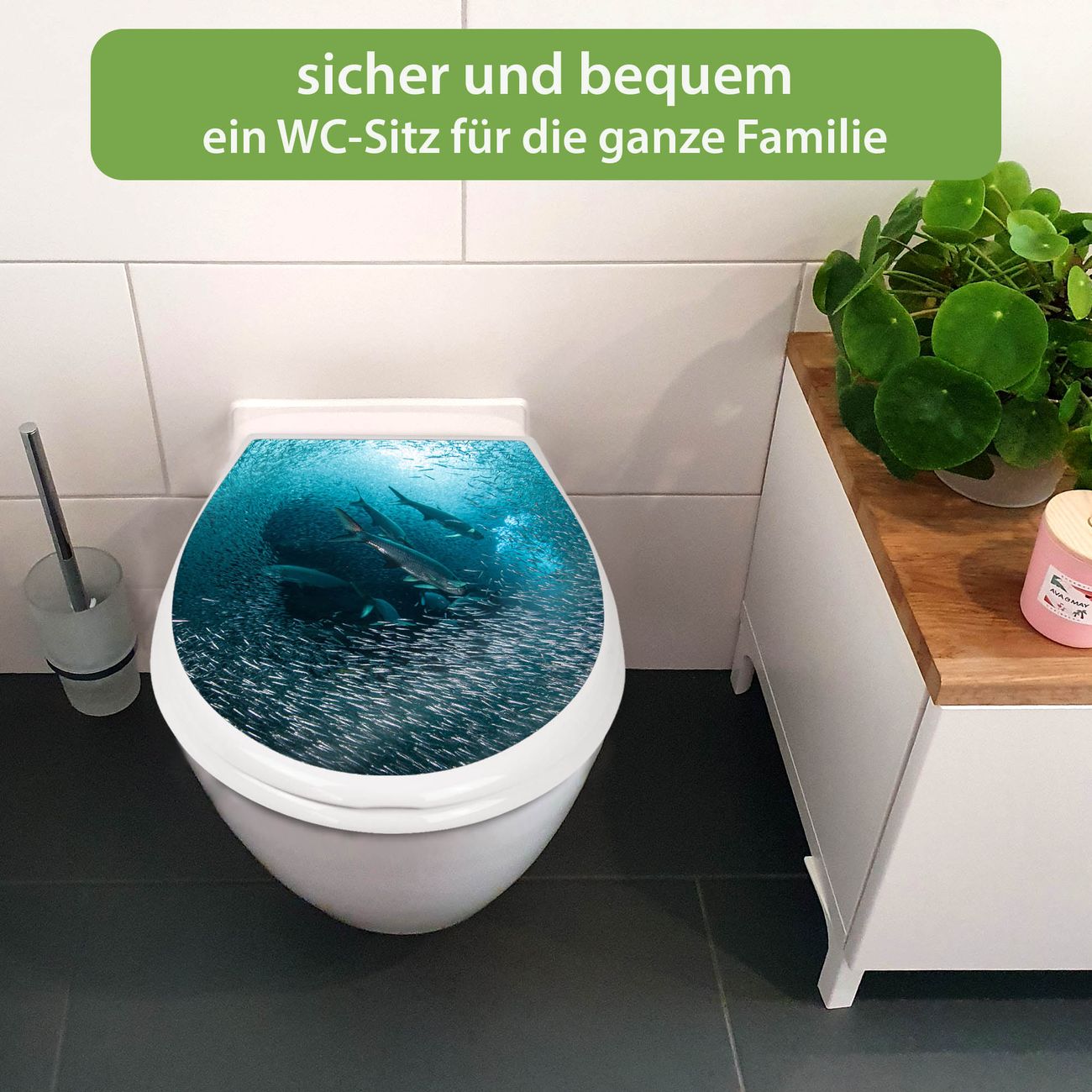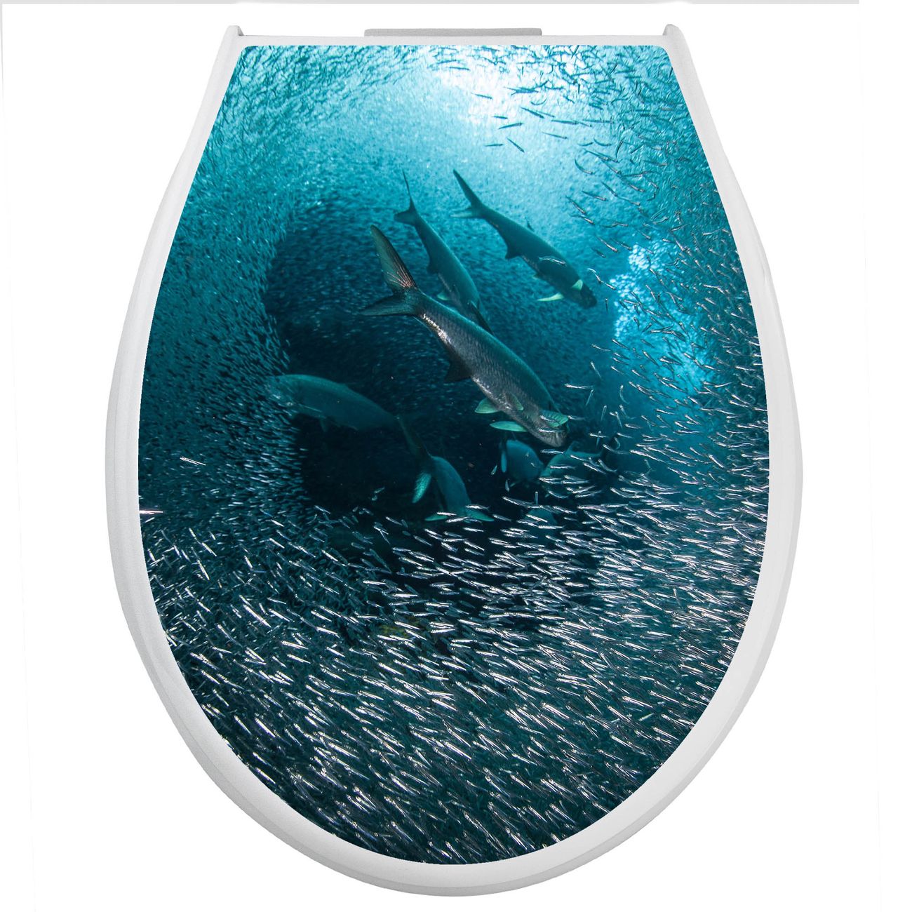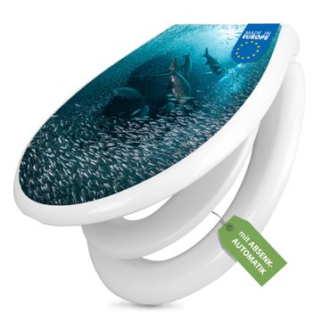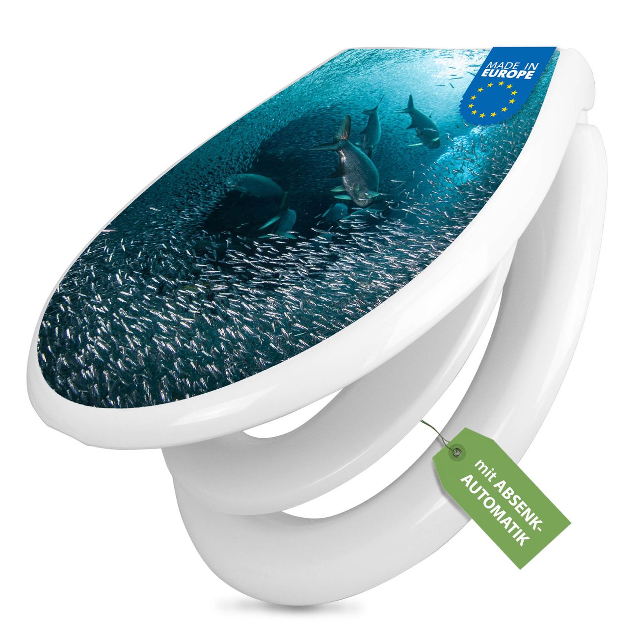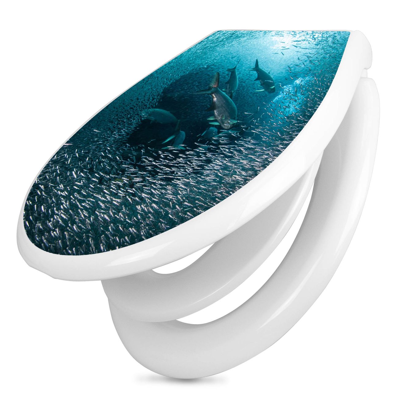 Toilettendeckel weiß mit Absenkautomatik Motiv Fische im Meer