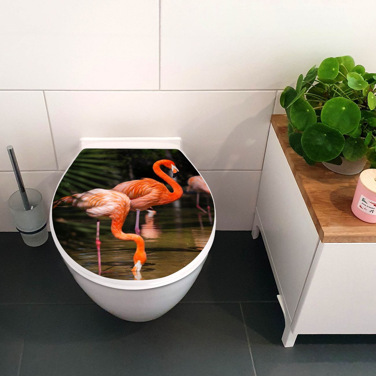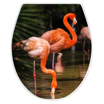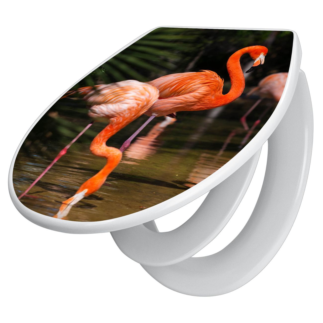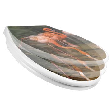 Toilettendeckel weiß mit Absenkautomatik Motiv Flamingo