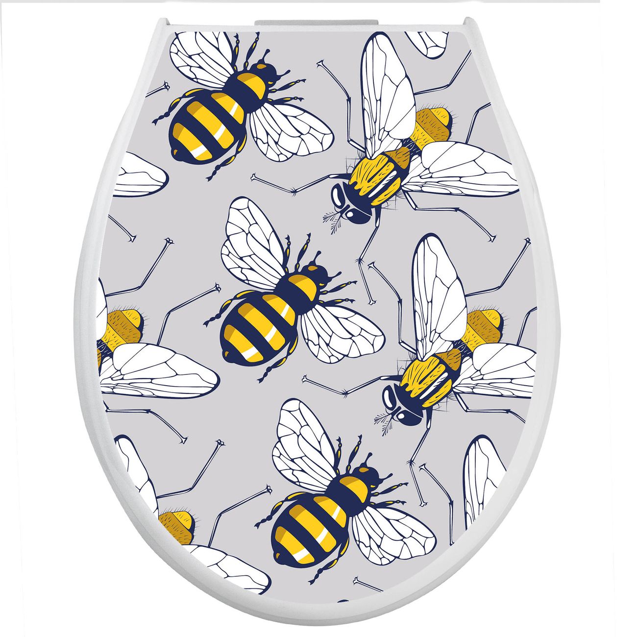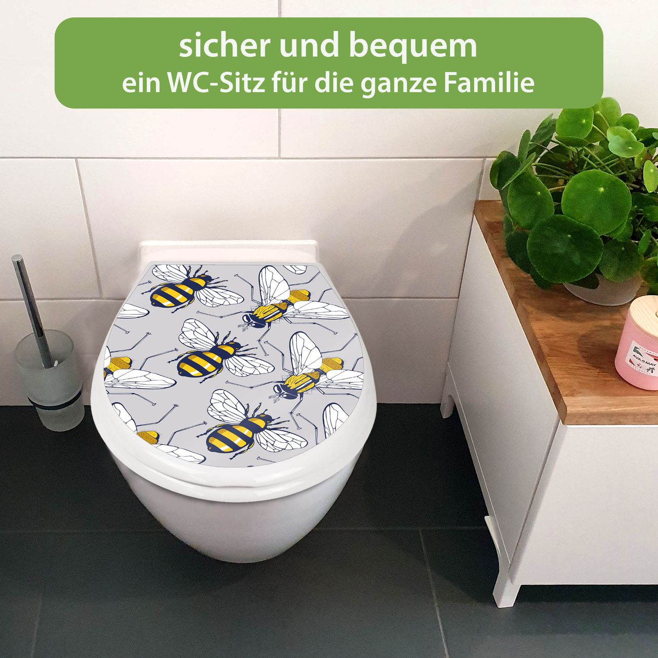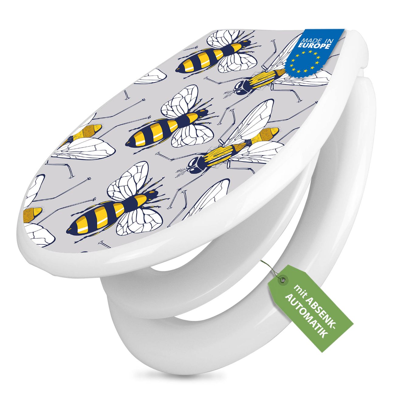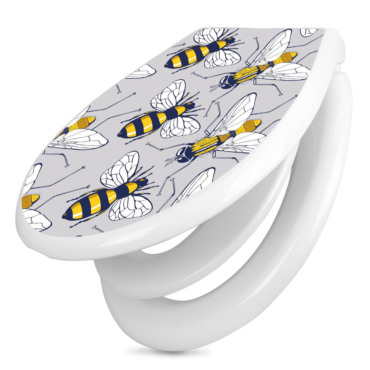 Toilettendeckel weiß mit Absenkautomatik Motiv Fliegen und Bienen