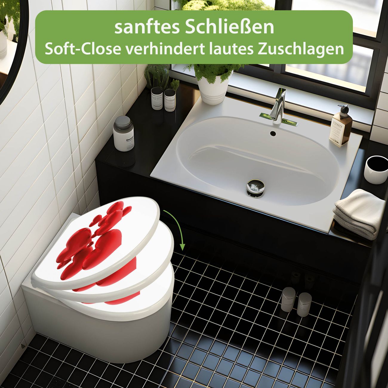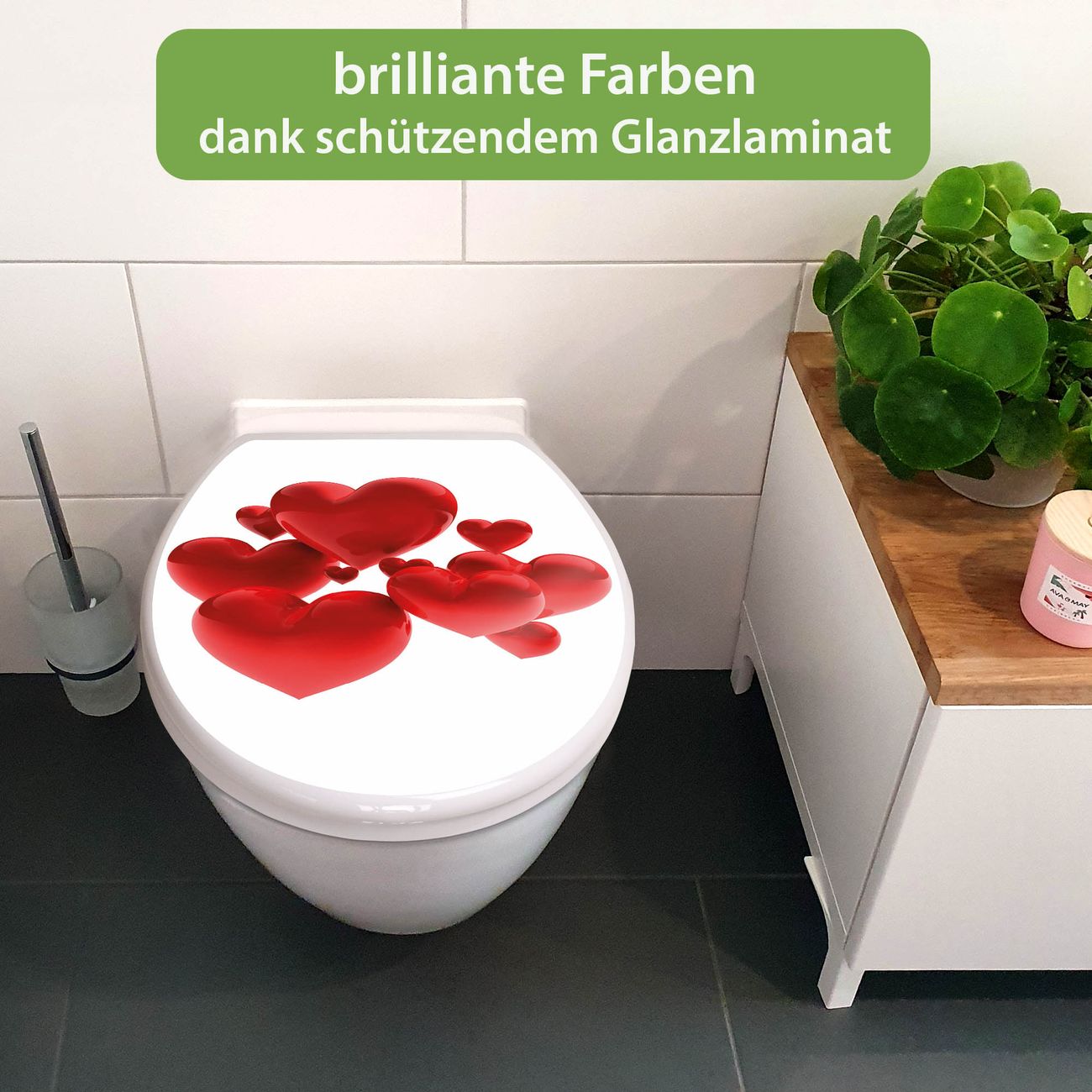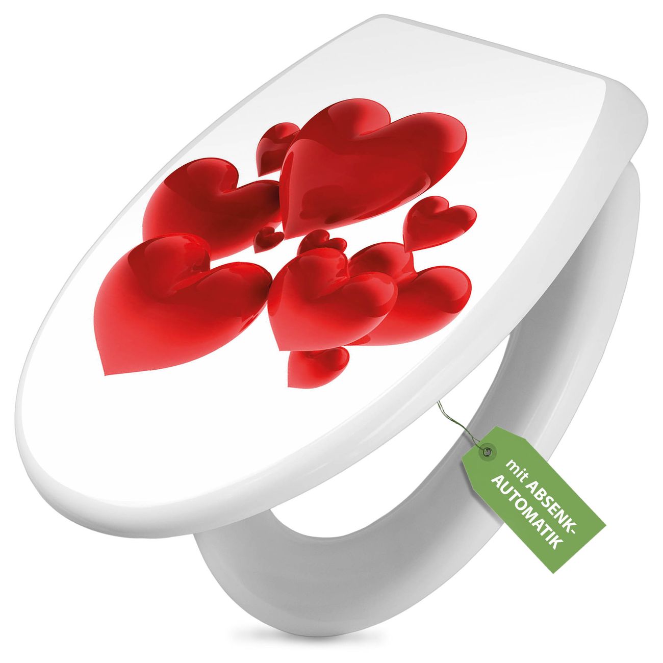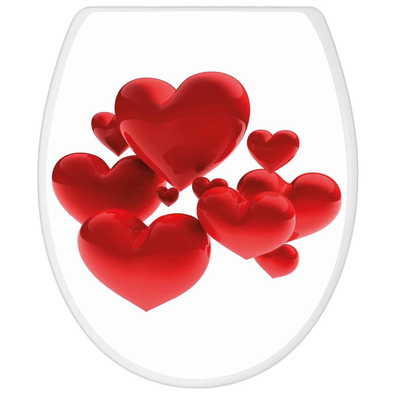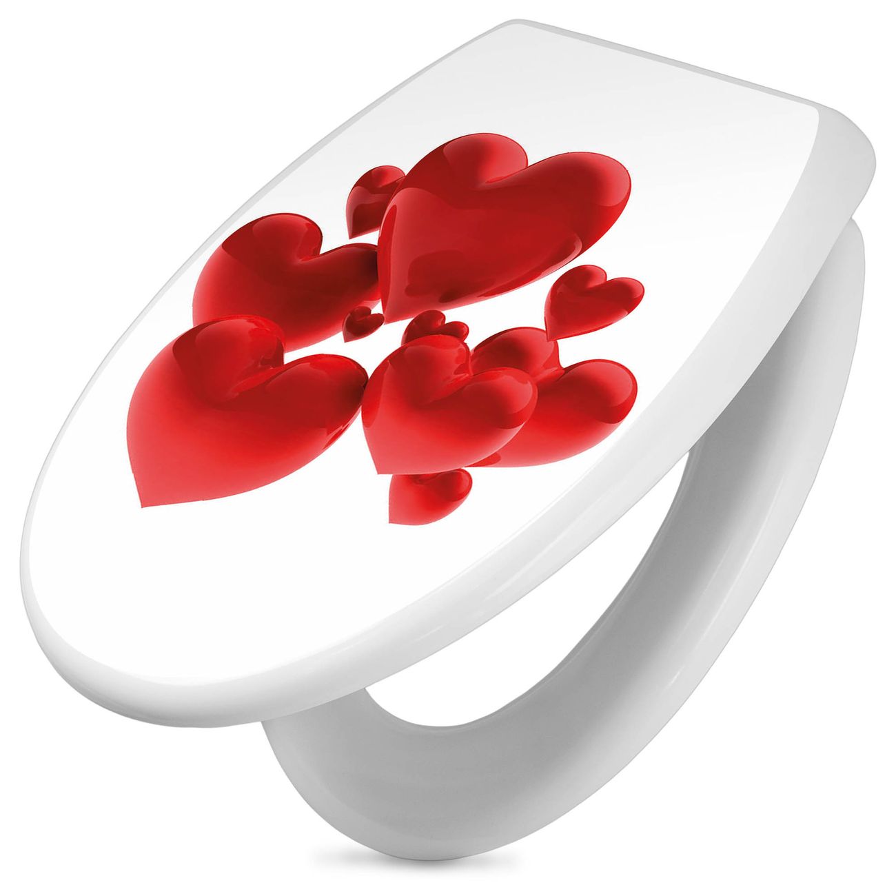Toilettendeckel weiß mit Absenkautomatik Motiv Fliegende Herzen
