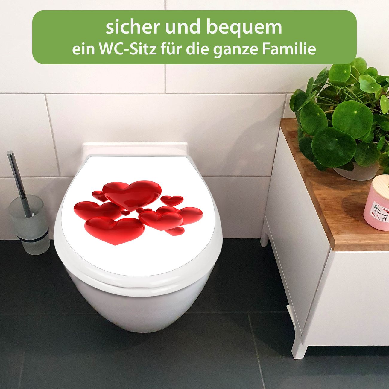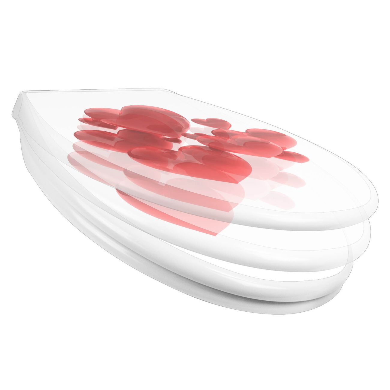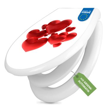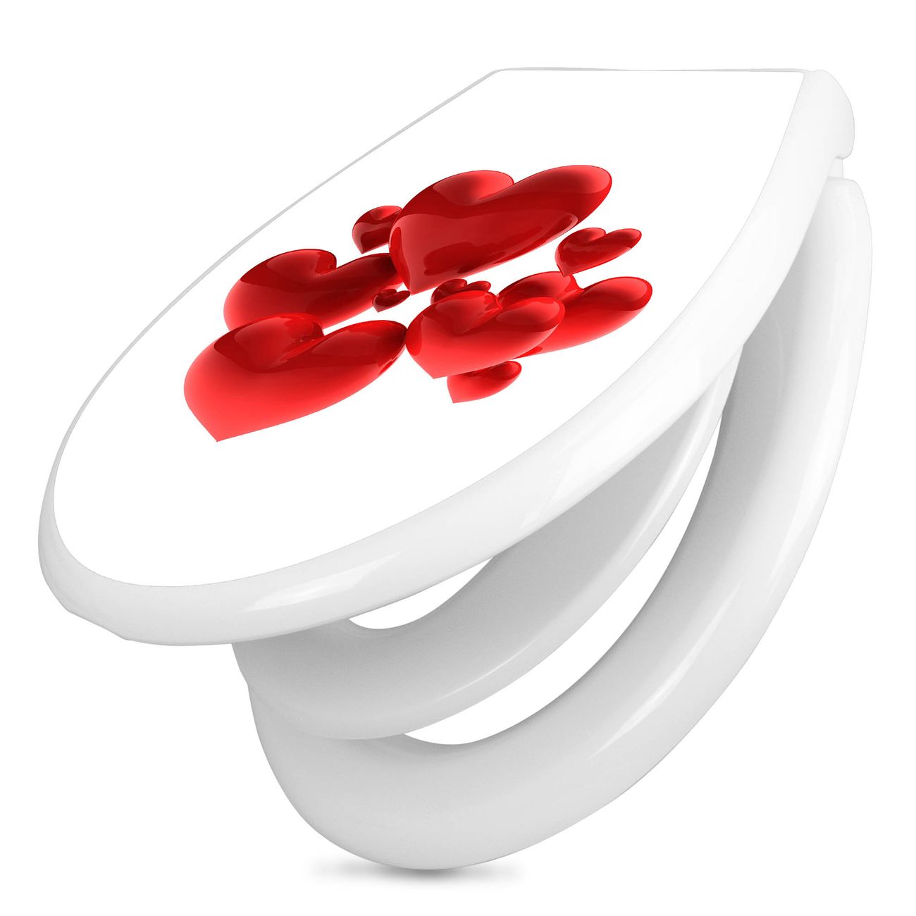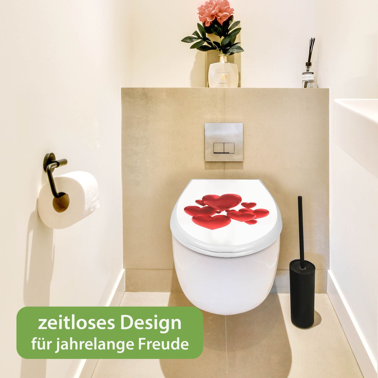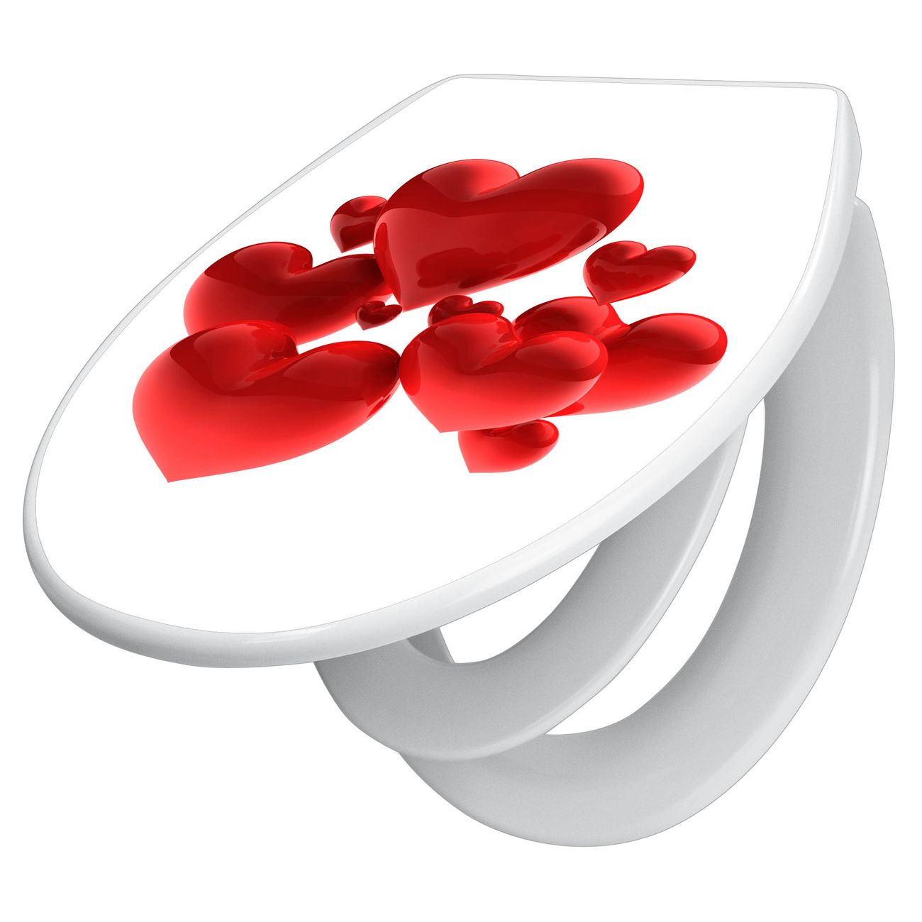 Toilettendeckel weiß mit Absenkautomatik Motiv Fliegende Herzen