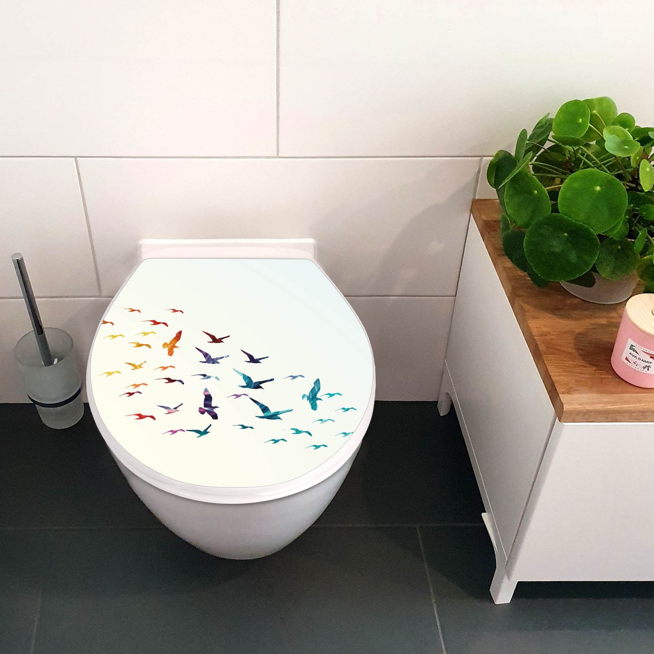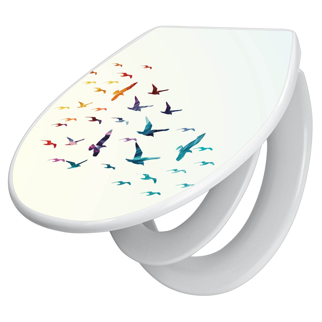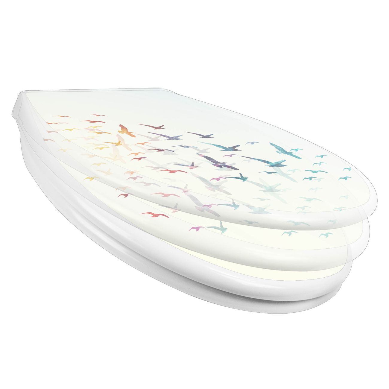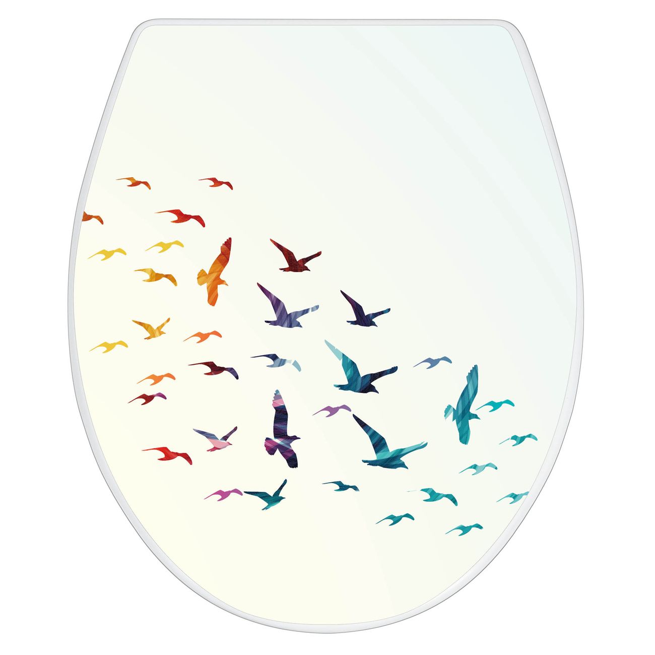 Toilettendeckel weiß mit Absenkautomatik Motiv Fliegende Vögel