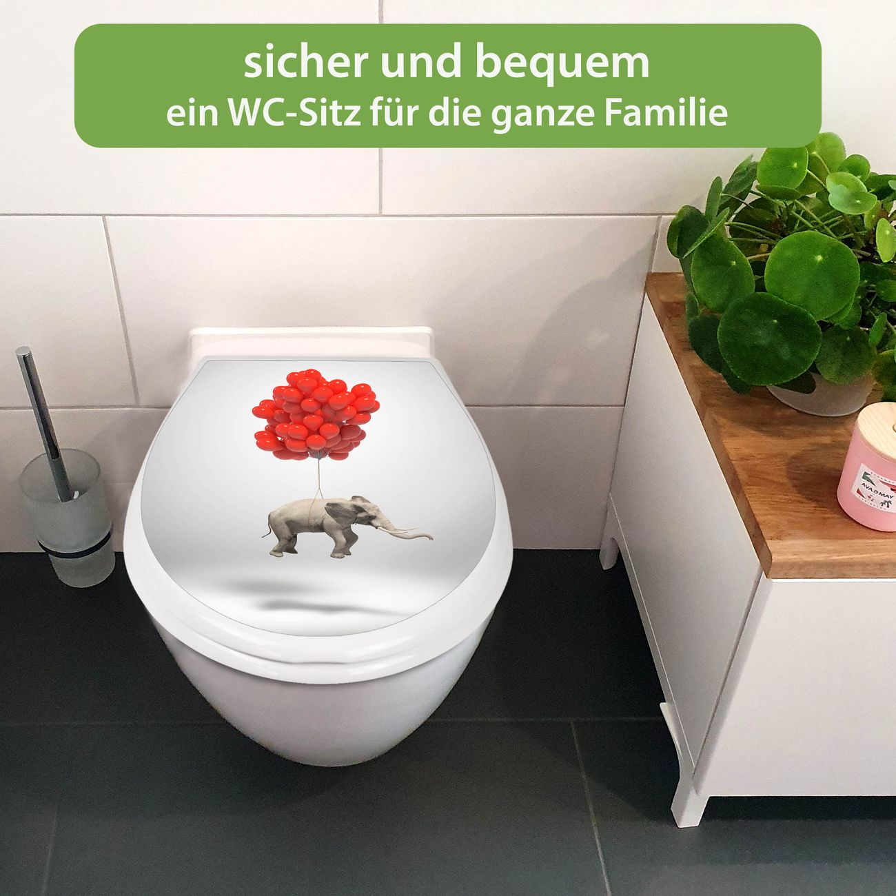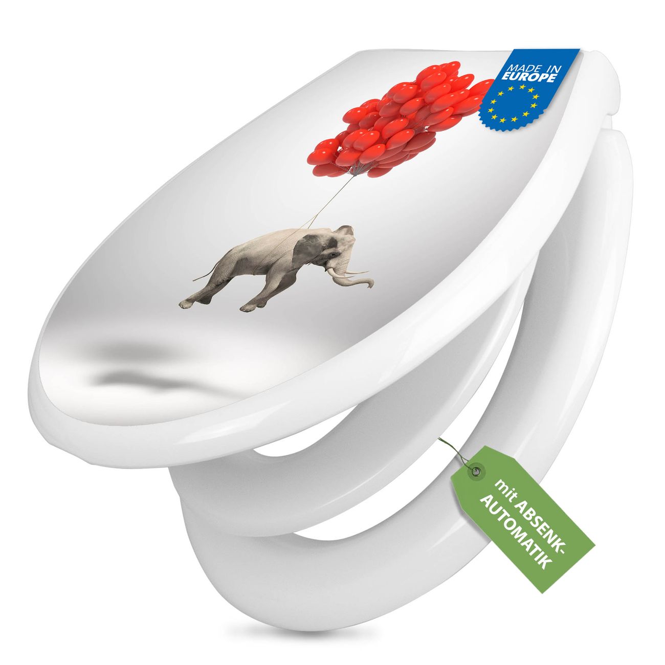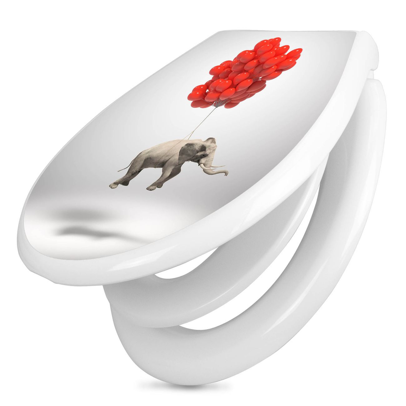 Toilettendeckel weiß mit Absenkautomatik Motiv Fliegender Elefant