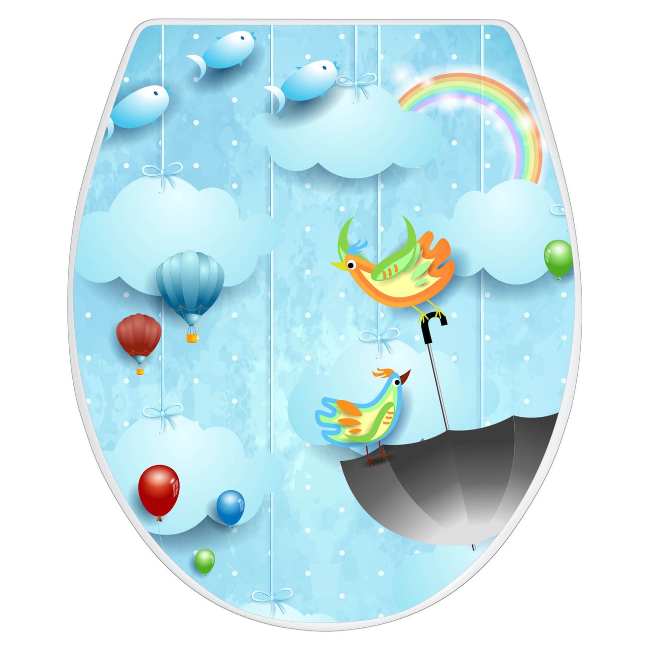 Toilettendeckel weiß mit Absenkautomatik Motiv fliegender Regenschirm