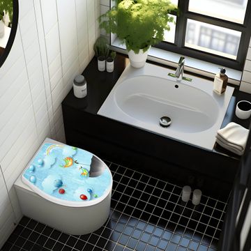 FUNKTION:Mit dem banjado Familien WC Sitz mit Absenkautomatik und dem Motiv fliegender Regenschirm verbinden Sie Design mit Funktionalität. Sie erhalten den Toilettendeckel in bewährt guter Qualität mit Montagematerial passend auf alle Euro-WC-Becken. Die Gesamtgröße beträgt 37cm x 44,5cm x 5cm, die Grundfarbe ist weiß.</p> DESIGN:Der Klodeckel in weiß mit Motiv fliegender Regenschirm hat eine ansprechende Optik, eine besondere Form und ist sehr stabil. Das Motiv besteht aus einer farbbrillianten Motivfolie, die durch ein Schutzlaminat zusätzlich vor Kratzern schützt. Der integrierte Kindersitz fügt sich harmonisch ein. DETAILS:Der Toilettensitz mit Soft Close besteht aus hochwertigem Polypropylen, ist geruchlos, ungiftig und kann mit handelsüblicher Seife gereinigt werden. Die Montage kann von von oben oder von unten erfolgen und ist kinderleicht. NUTZEN:Mit Hilfe der detaillierten Aufbauanleitung ermöglichen wir eine schnelle und unkomplizierte Montage. Die banjado Klobrille ist universell geeignet für alle Euro-WC-Schüsseln. Der Kindersitz kann unkompliziert entfernt werden. BANJADO:Ihr WC-Deckel wird in Sachsen in einer kleinen Manufaktur von Hand veredelt. Die Motivfolie ist lösungsmittelfrei und schutzlaminiert für einen langen Halt. Wir wünschen viel Freude bei der Auswahl eines schönen Motivs.