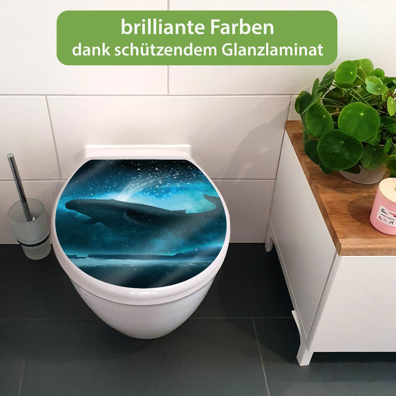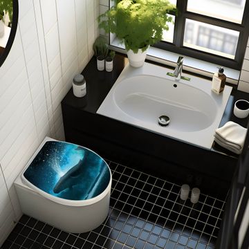 Toilettendeckel weiß mit Absenkautomatik Motiv fliegender Wal