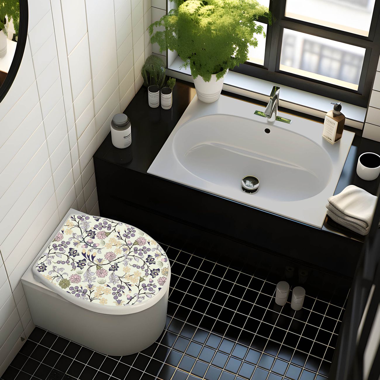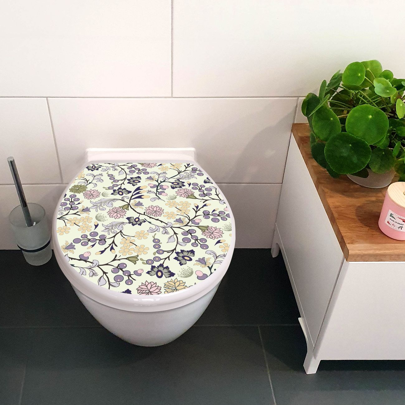 Toilettendeckel weiß mit Absenkautomatik Motiv Florale Tapete