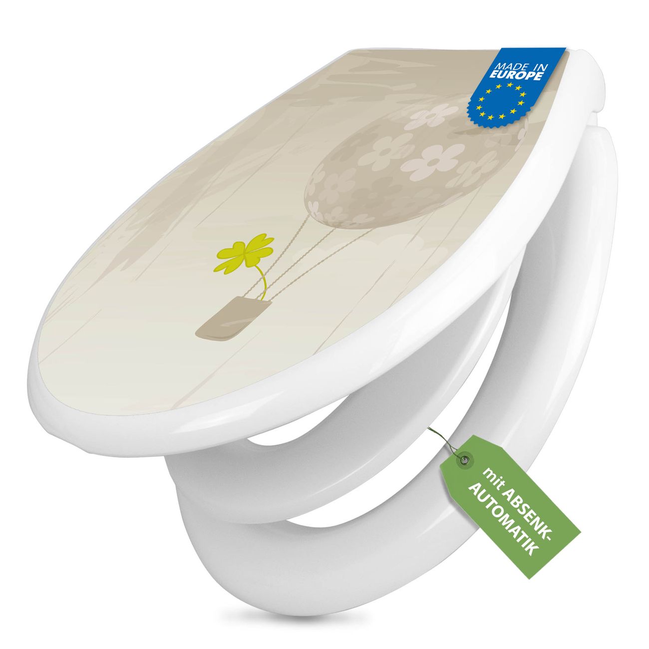 Toilettendeckel weiß mit Absenkautomatik Motiv Flüchtiges Glück