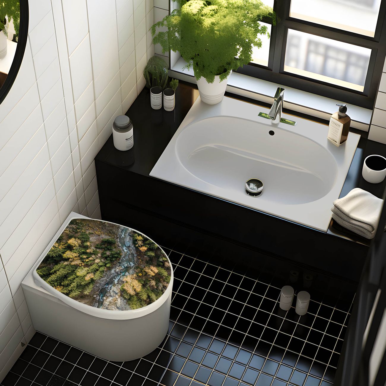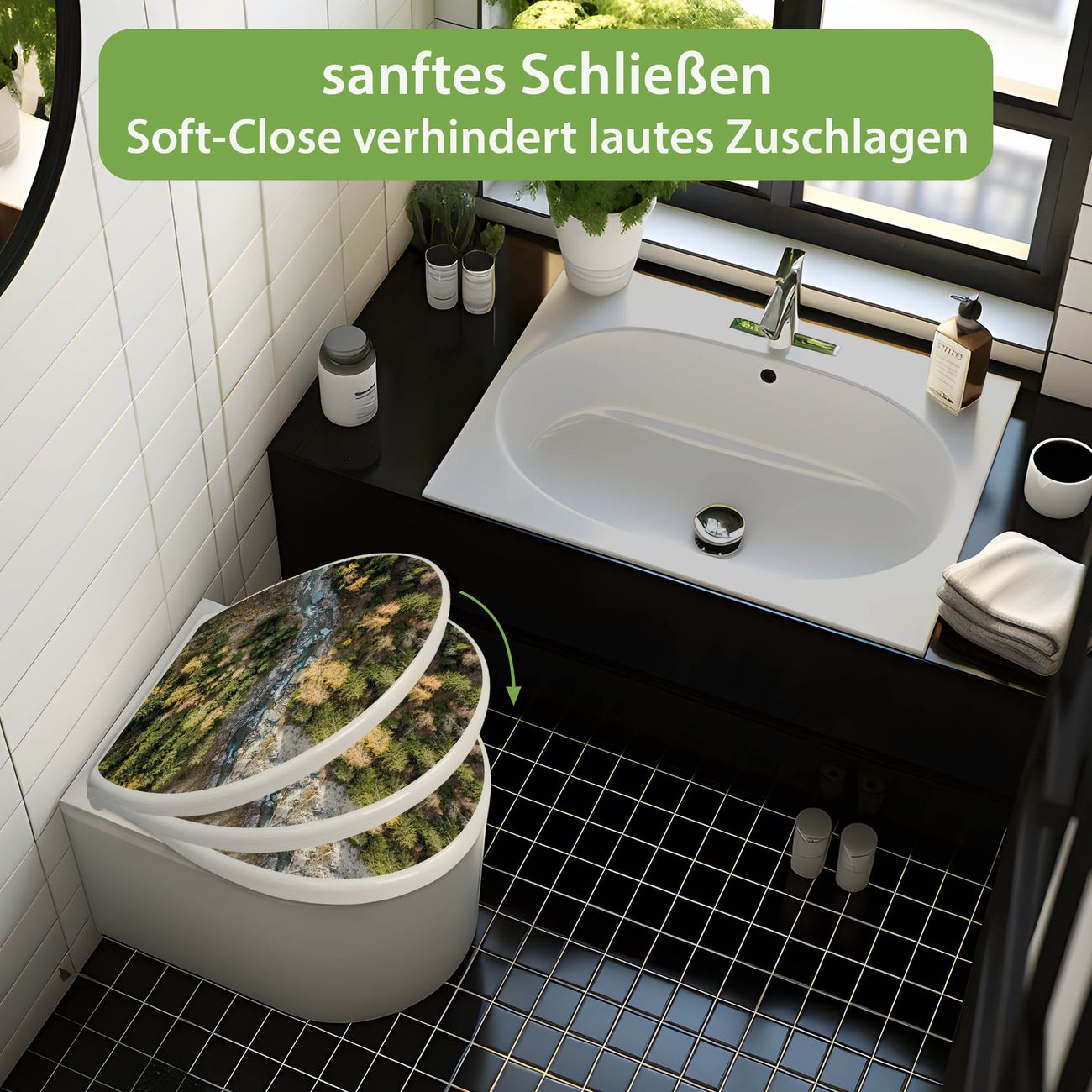 Toilettendeckel weiß mit Absenkautomatik Motiv Fluss im Tal 2