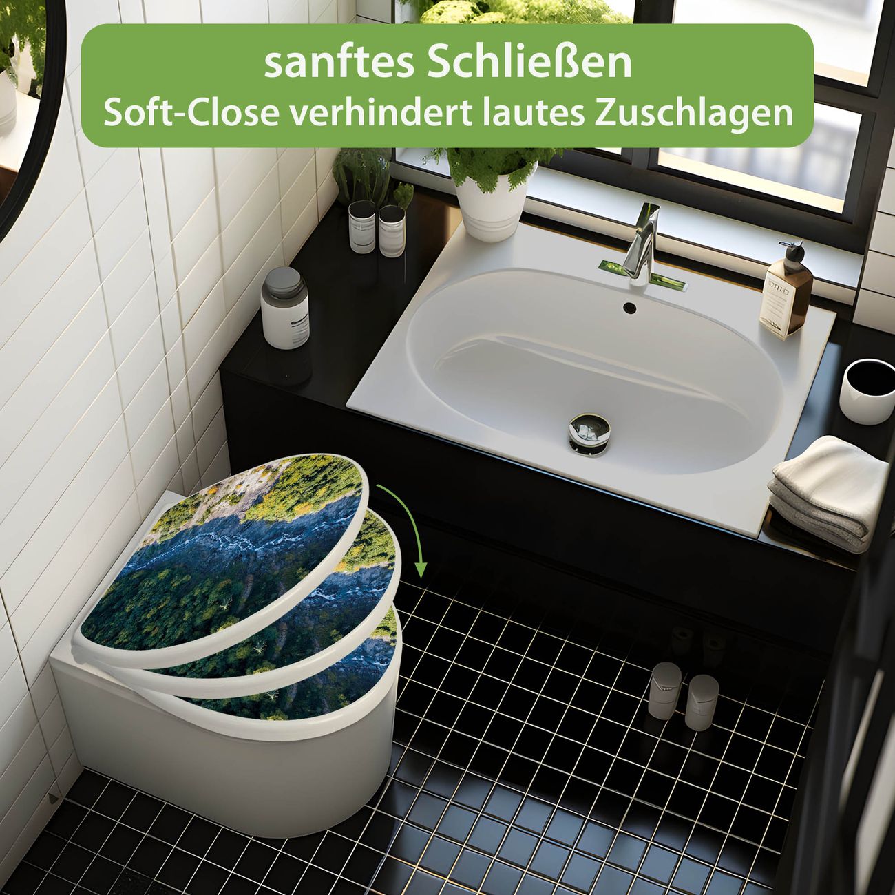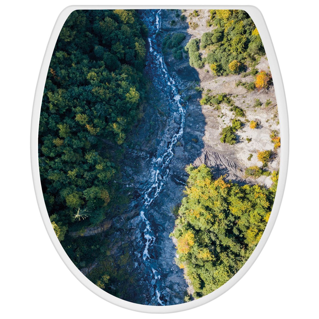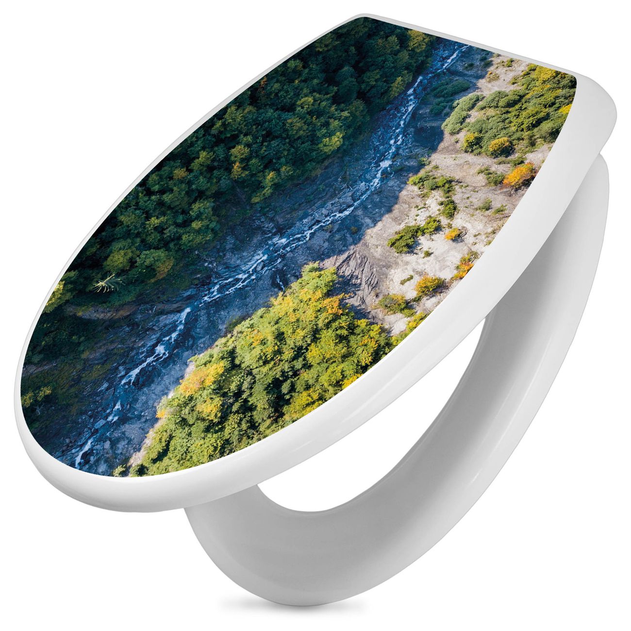 Toilettendeckel weiß mit Absenkautomatik Motiv Fluss im Tal