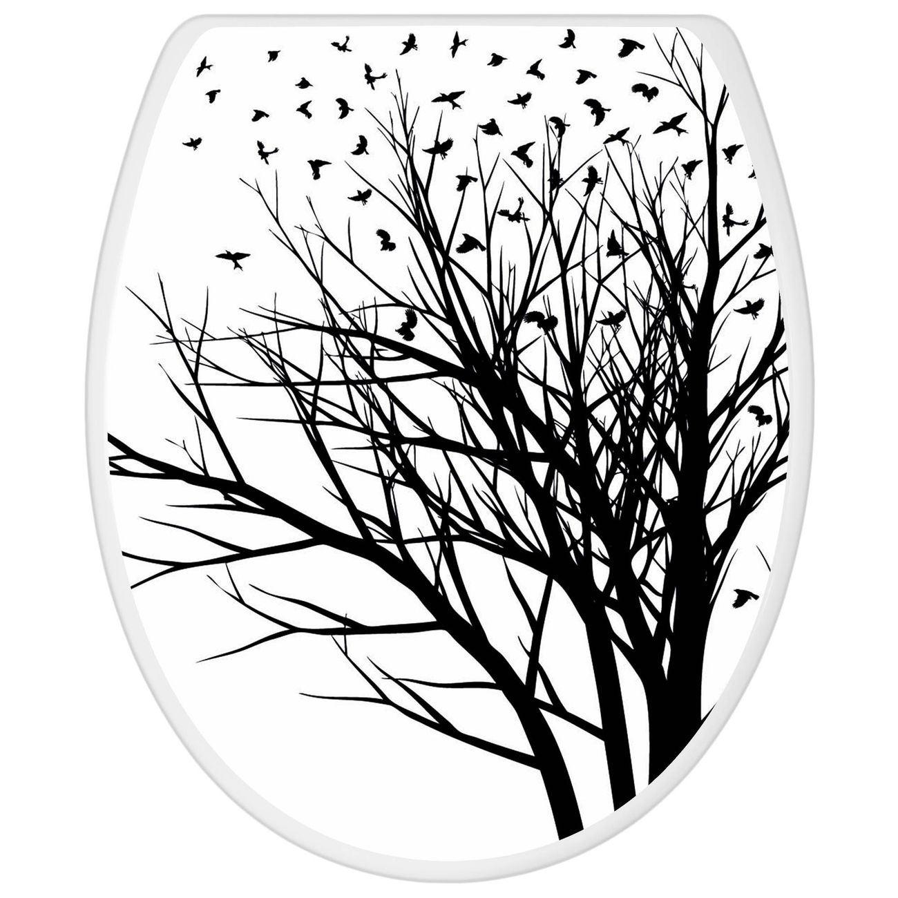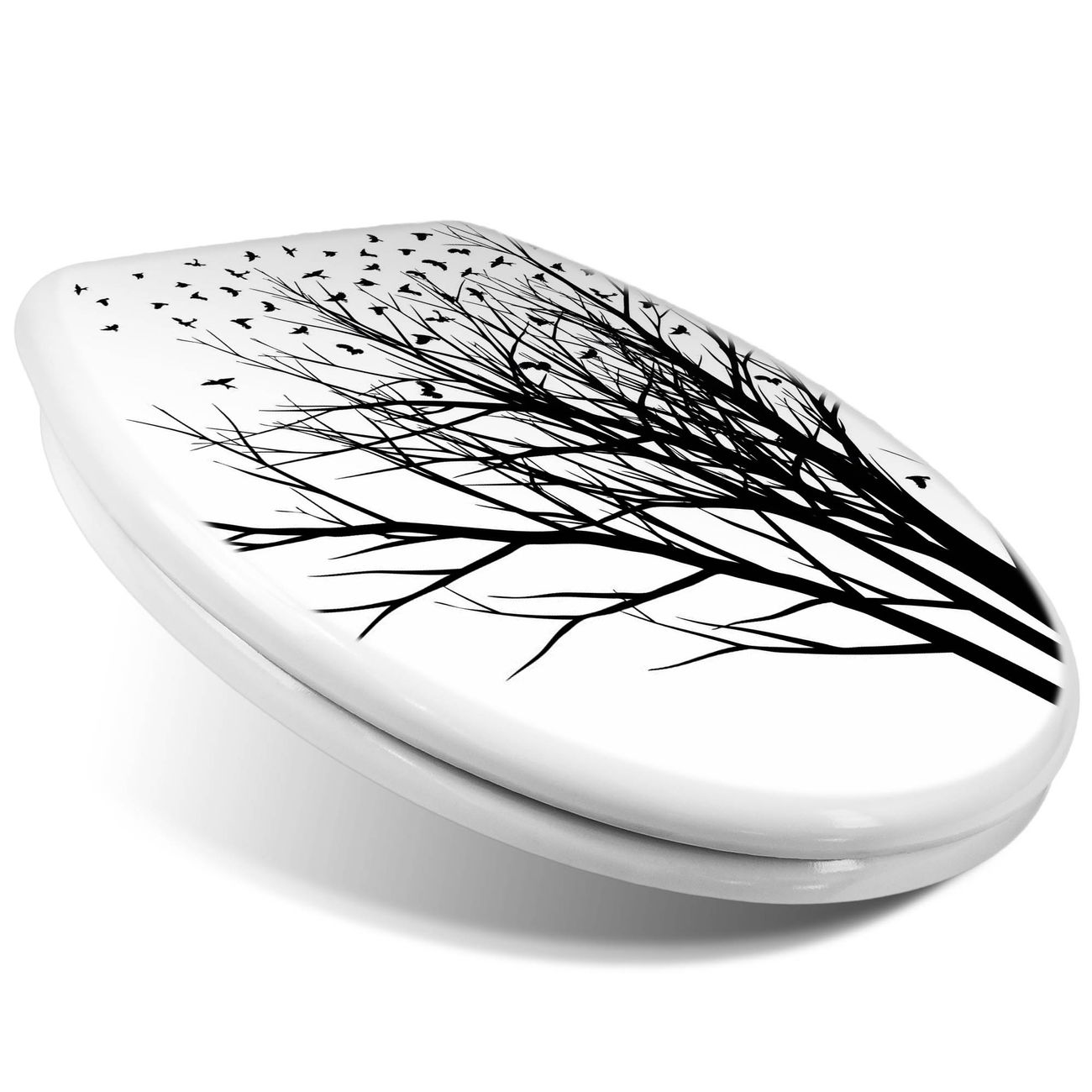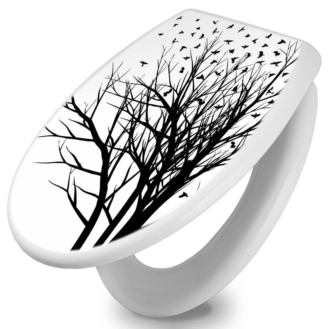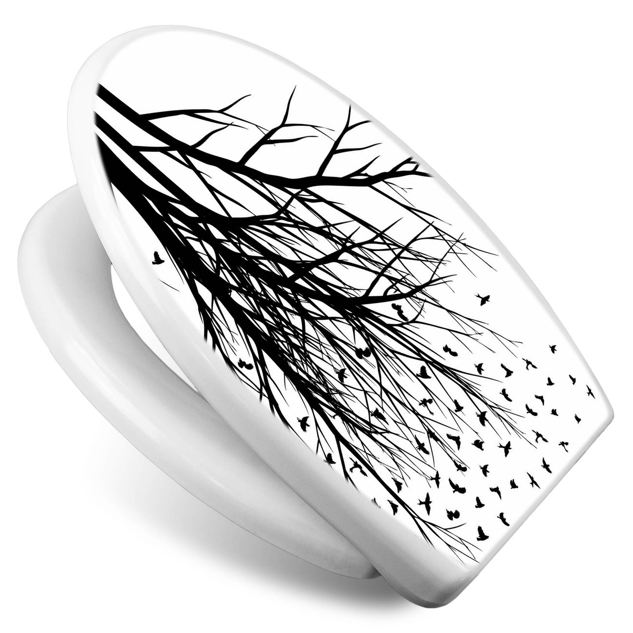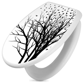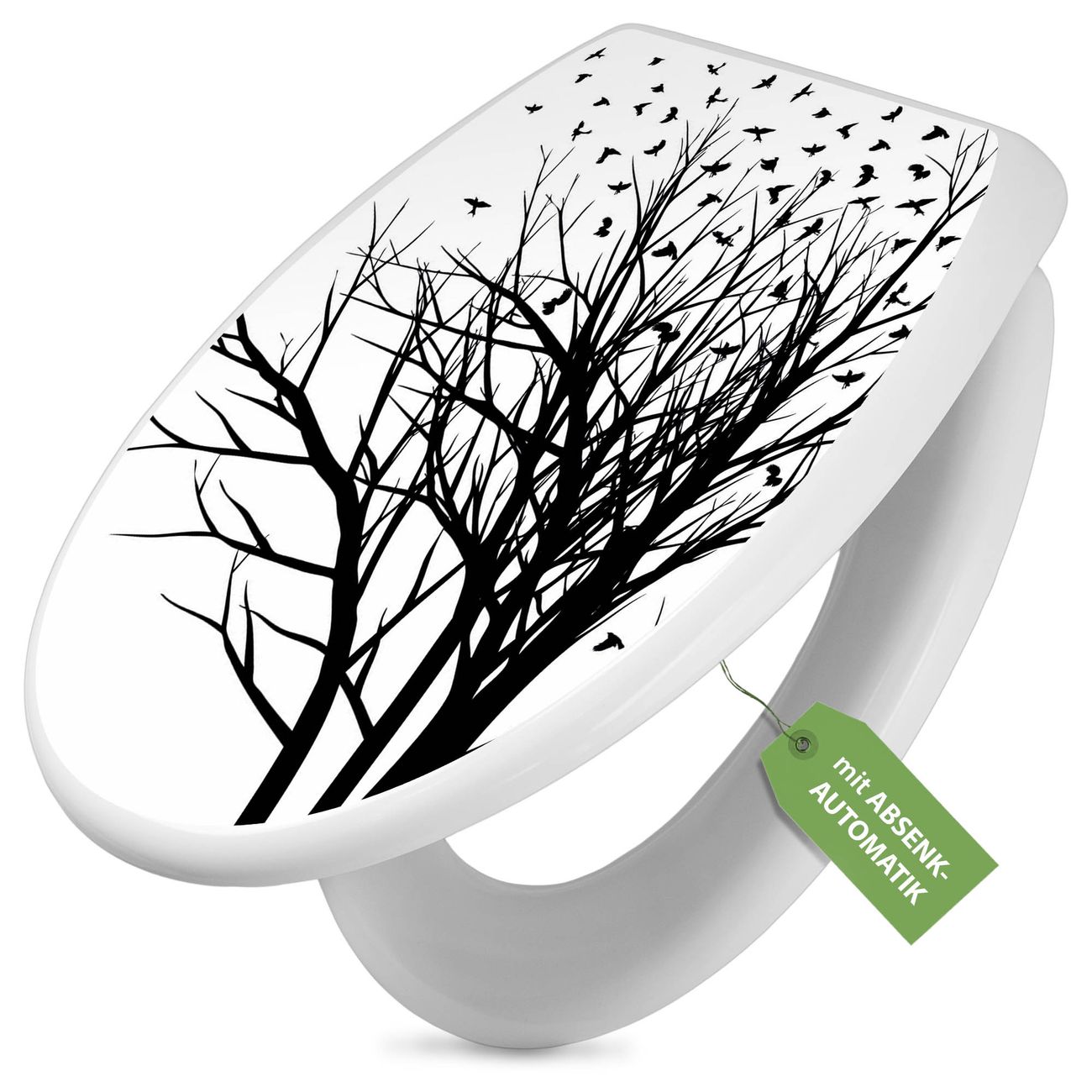 Toilettendeckel weiß mit Absenkautomatik Motiv Fortfliegen