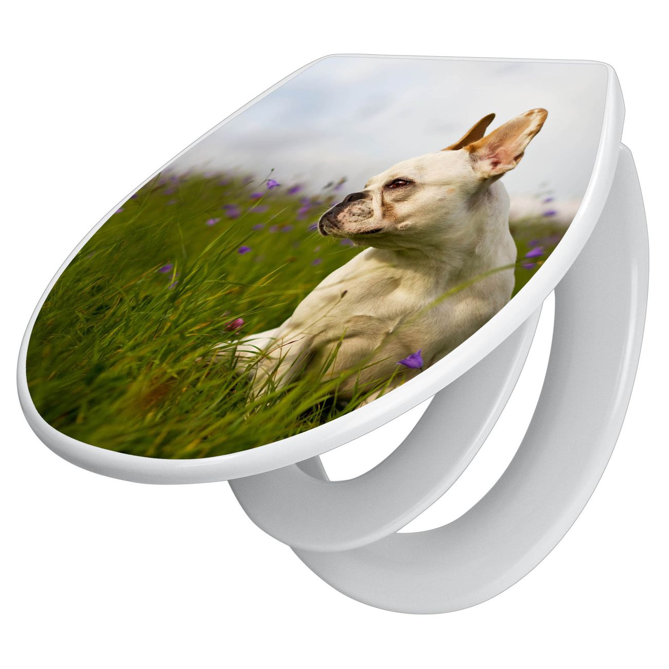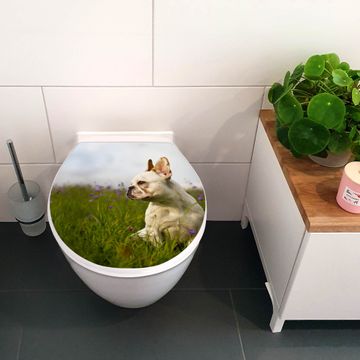 Toilettendeckel weiß mit Absenkautomatik Motiv Französische Bulldogge