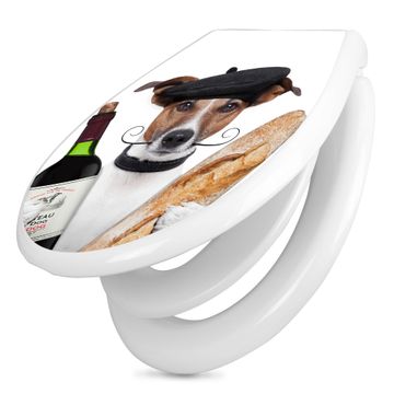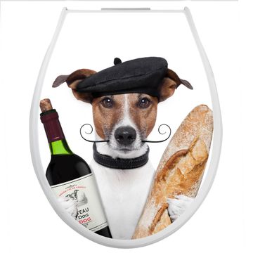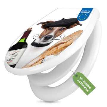 Toilettendeckel weiß mit Absenkautomatik Motiv Franzose Jack Russel