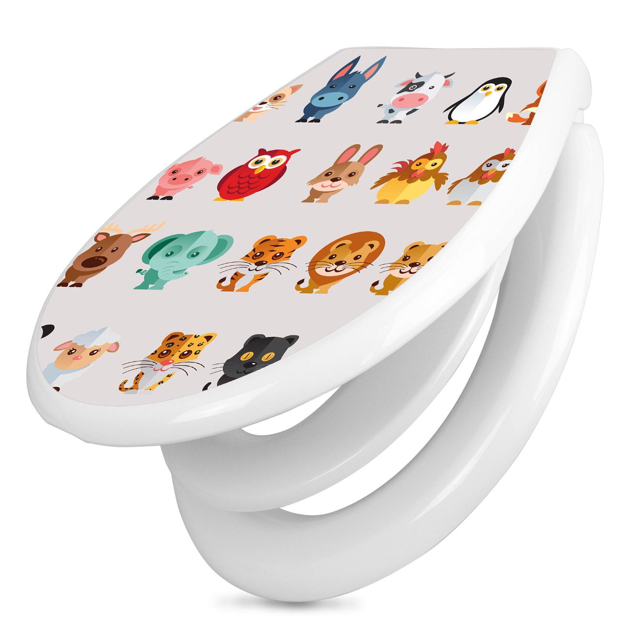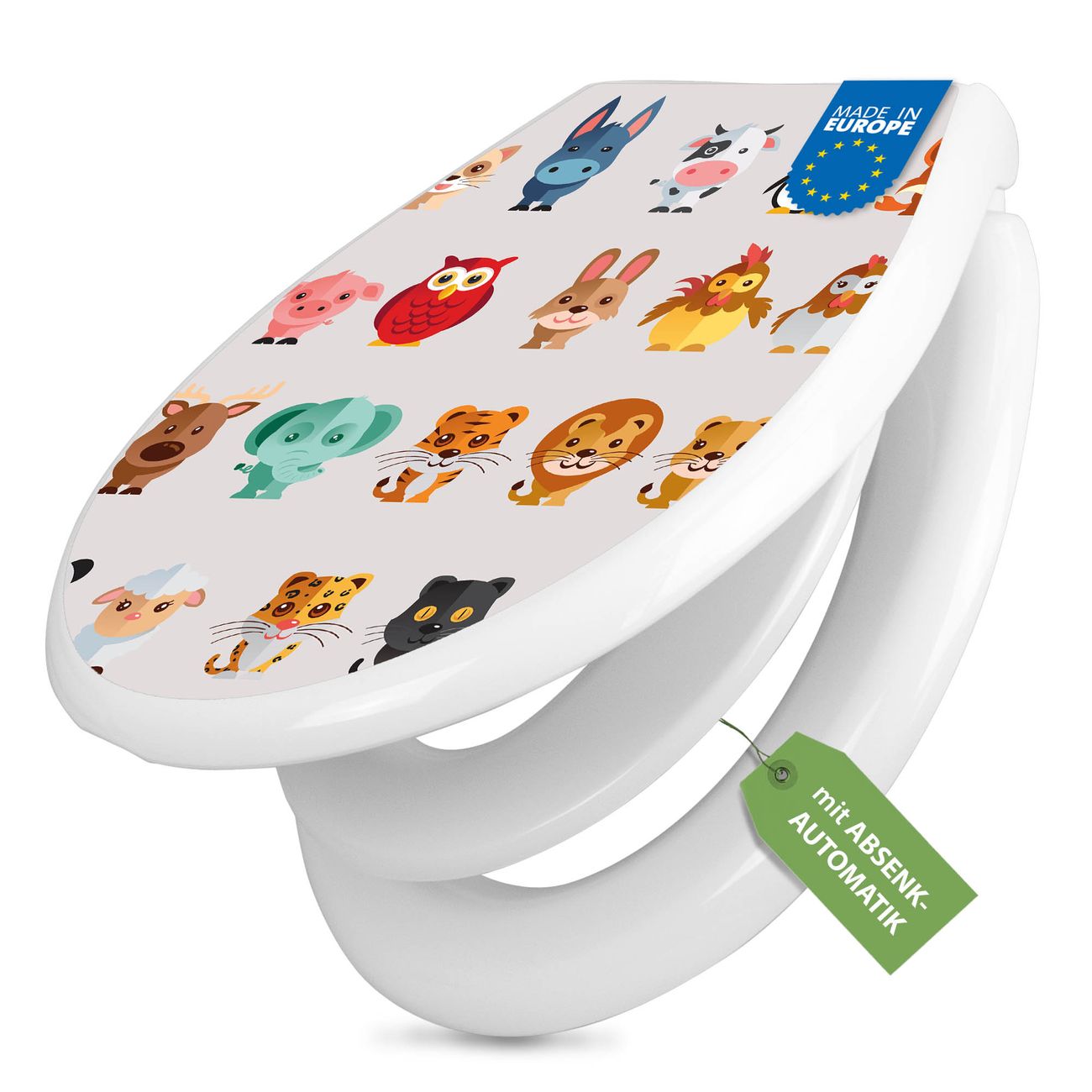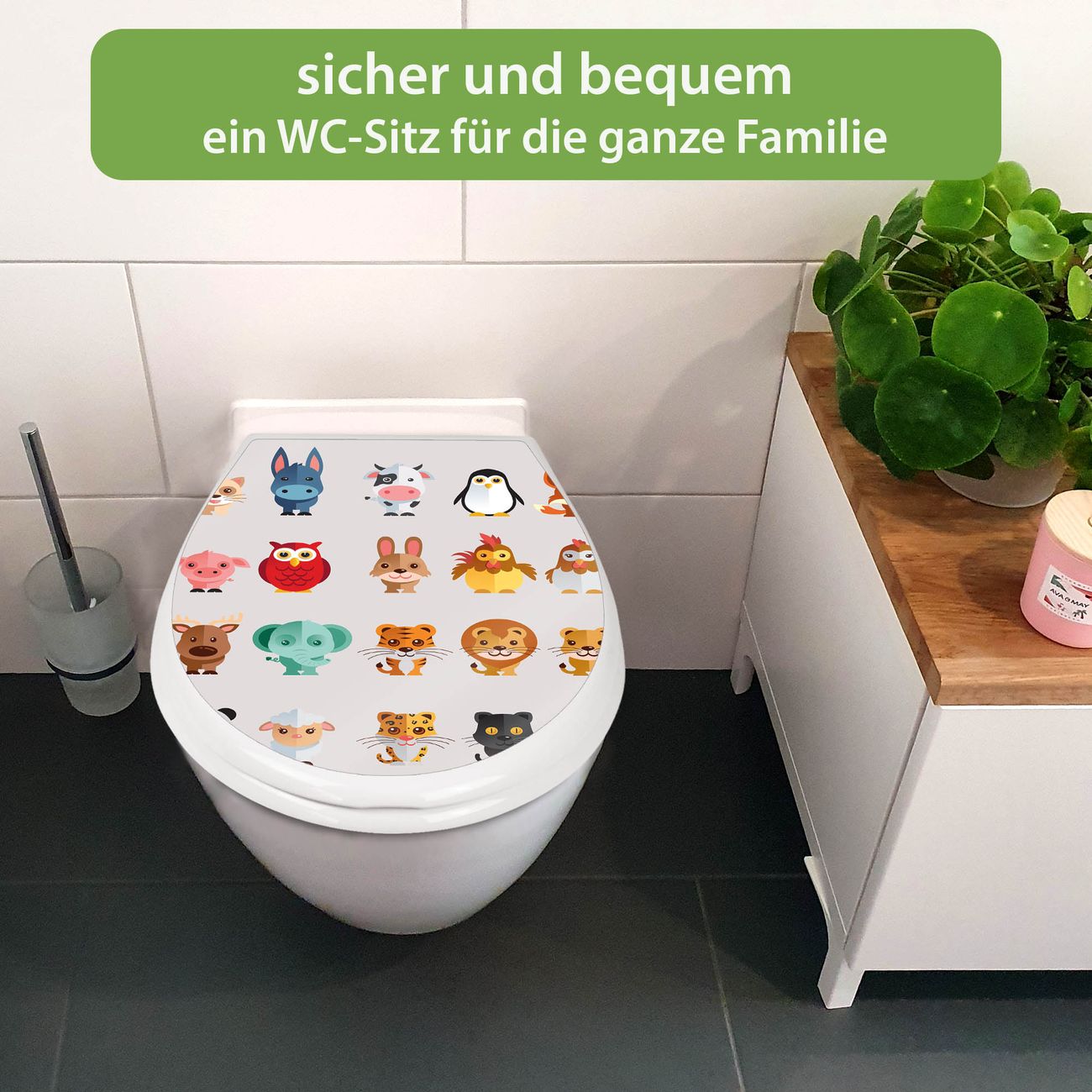 FUNKTION:Mit dem banjado Familien WC Sitz mit Absenkautomatik und dem Motiv Motiv Freunde verbinden Sie Design mit Funktionalität. Sie erhalten den Toilettendeckel in bewährt guter Qualität mit Montagematerial passend auf alle Euro-WC-Becken. Die Gesamtgröße beträgt 37,1cm x 44,9cm x 5cm, die Grundfarbe ist weiß.</p> DESIGN:Der Klodeckel in weiß mit Motiv Motiv Freunde hat eine ansprechende Optik, eine besondere Form und ist sehr stabil. Das Motiv besteht aus einer farbbrillianten Motivfolie, die durch ein Schutzlaminat zusätzlich vor Kratzern schützt. Der integrierte Kindersitz fügt sich harmonisch ein. DETAILS:Der Toilettensitz mit Soft Close besteht aus hochwertigem Polypropylen, ist geruchlos, ungiftig und kann mit handelsüblicher Seife gereinigt werden. Die Montage kann von von oben oder von unten erfolgen und ist kinderleicht. NUTZEN:Mit Hilfe der detaillierten Aufbauanleitung ermöglichen wir eine schnelle und unkomplizierte Montage. Die banjado Klobrille ist universell geeignet für alle Euro-WC-Schüsseln. Der Kindersitz kann unkompliziert entfernt werden. BANJADO:Ihr WC-Deckel wird in Sachsen in einer kleinen Manufaktur von Hand veredelt. Die Motivfolie ist lösungsmittelfrei und schutzlaminiert für einen langen Halt. Wir wünschen viel Freude bei der Auswahl eines schönen Motivs.