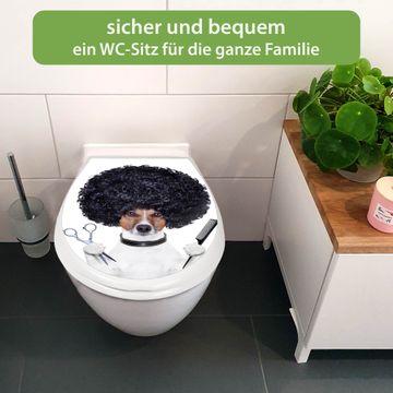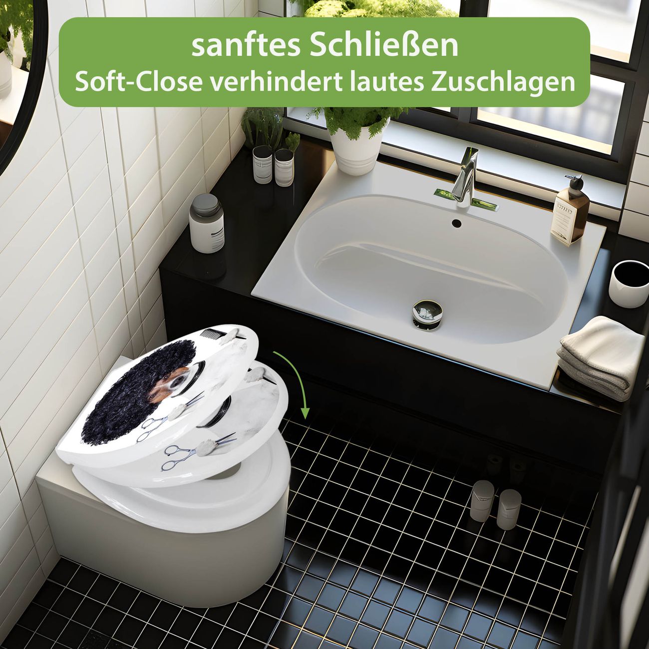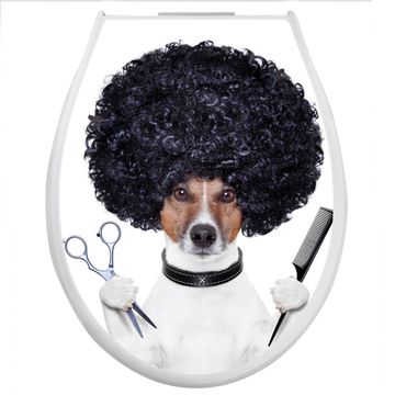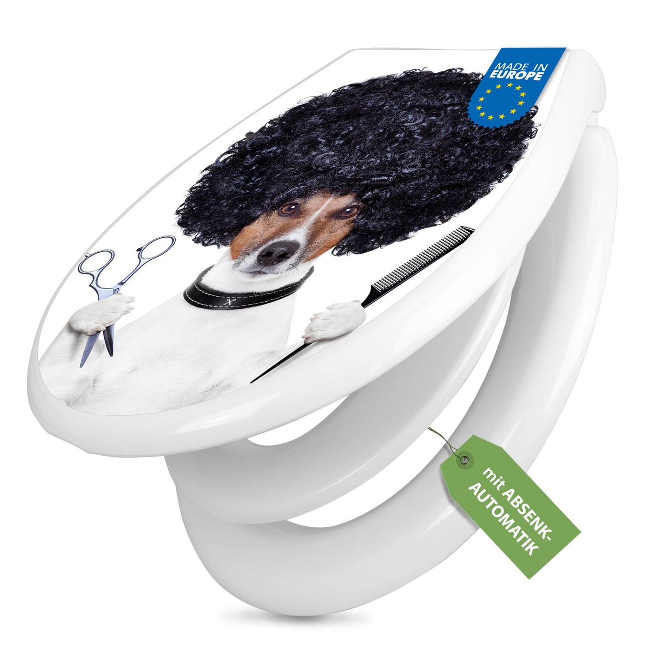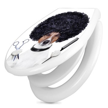 Toilettendeckel weiß mit Absenkautomatik Motiv Friseur Jack Russel