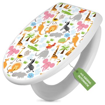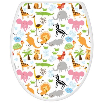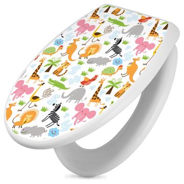 Toilettendeckel weiß mit Absenkautomatik Motiv Fröhliche Tiere