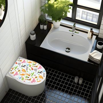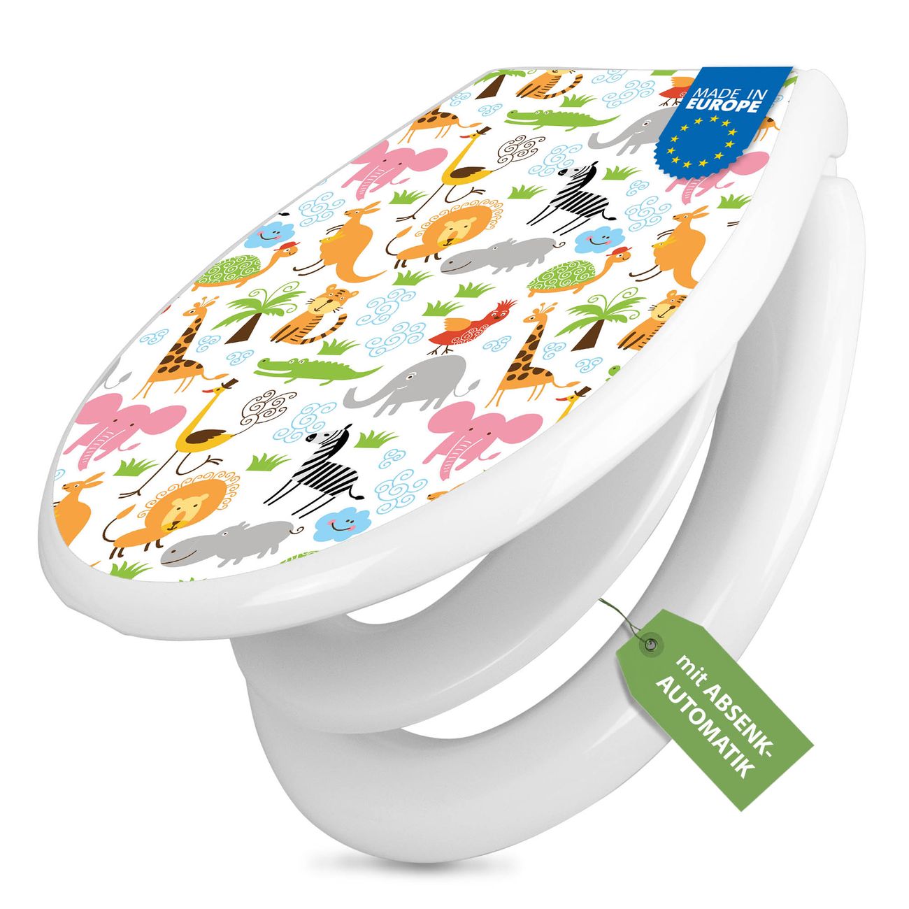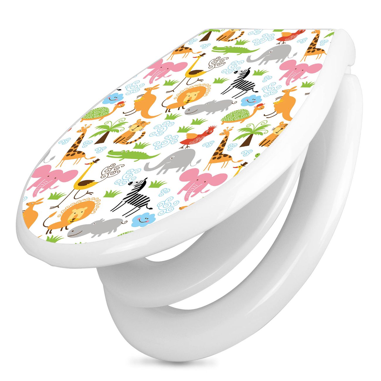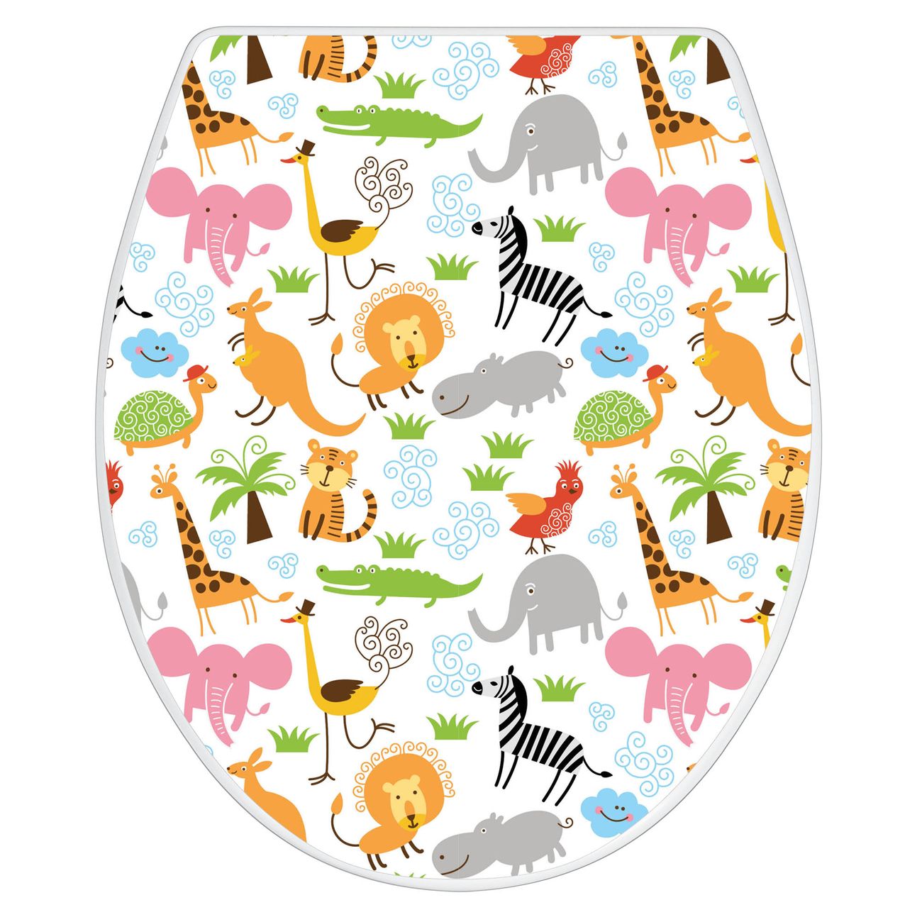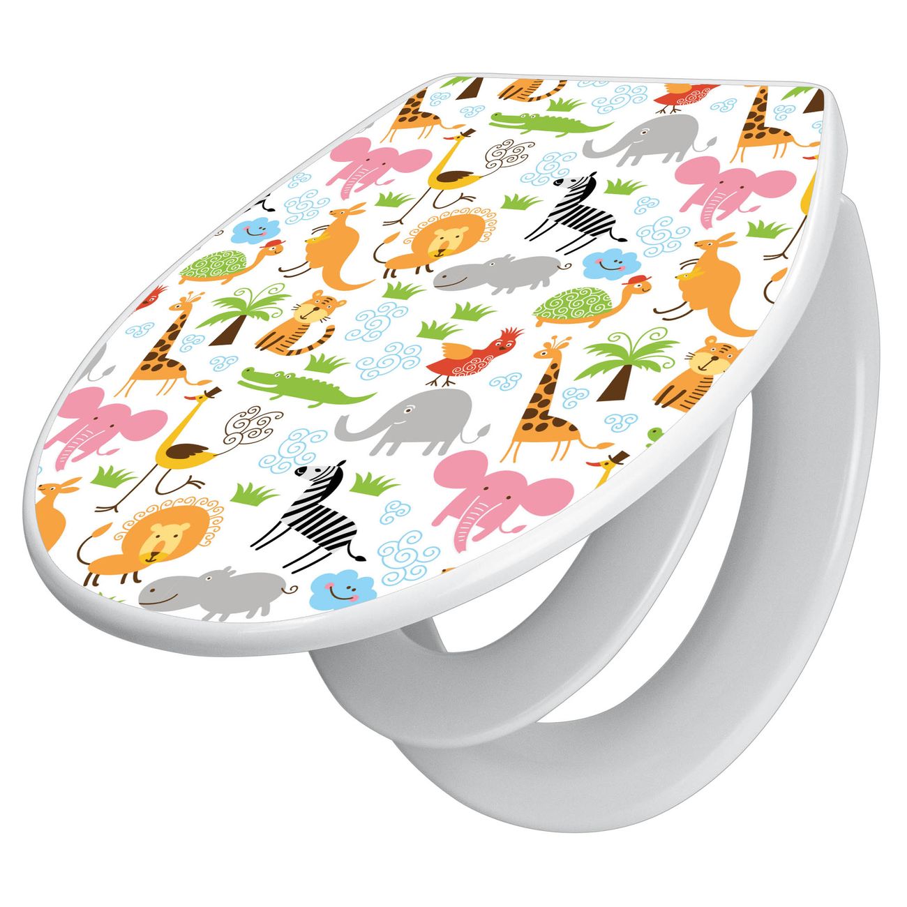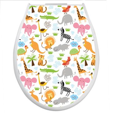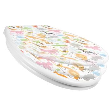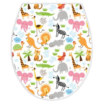 Toilettendeckel weiß mit Absenkautomatik Motiv Fröhliche Tiere