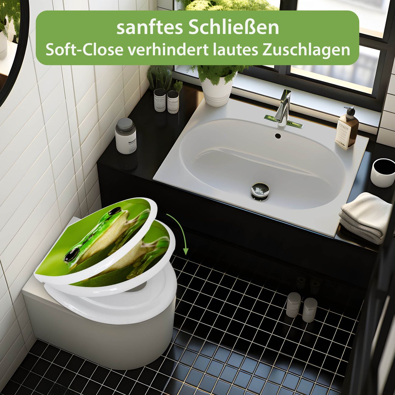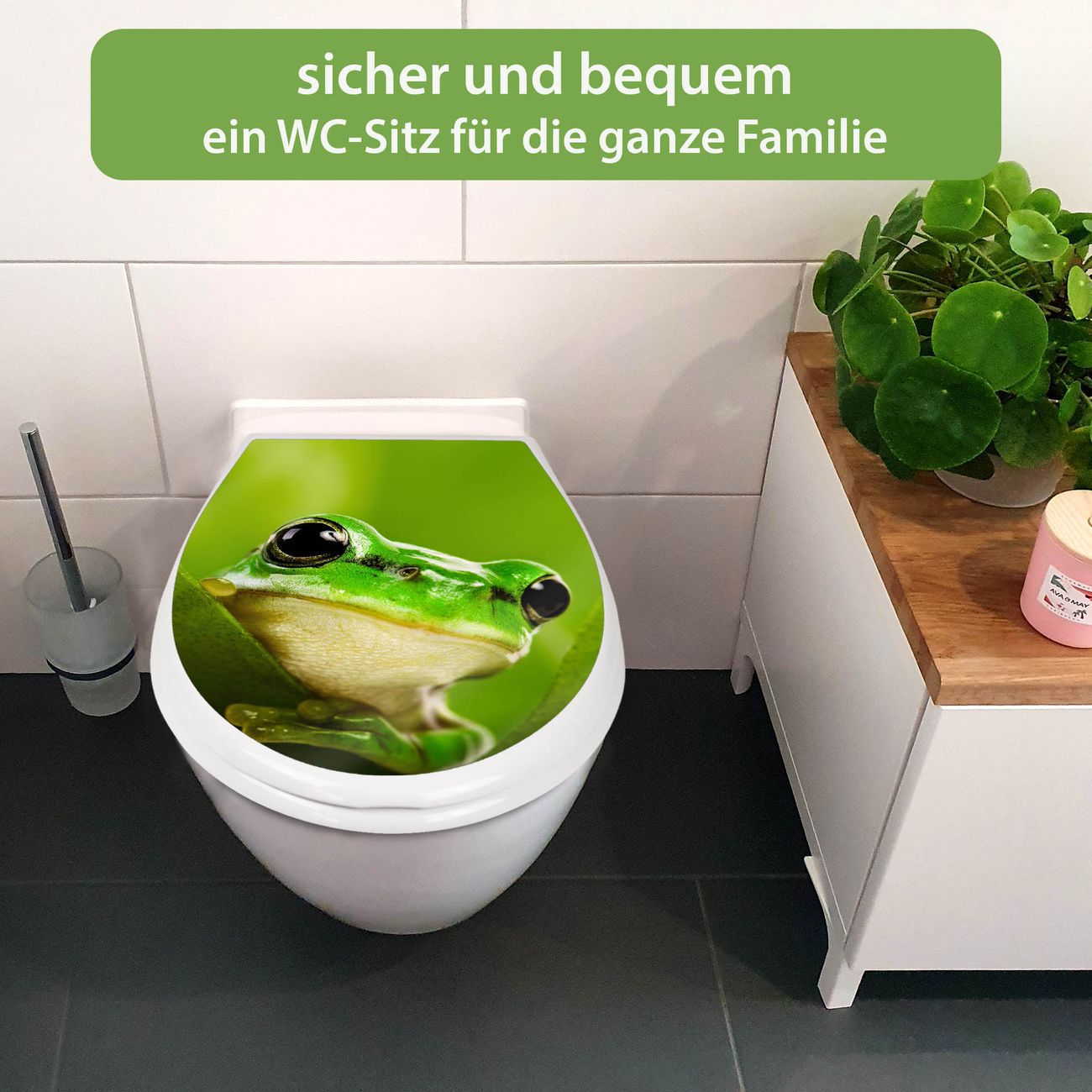 Toilettendeckel weiß mit Absenkautomatik Motiv Frosch