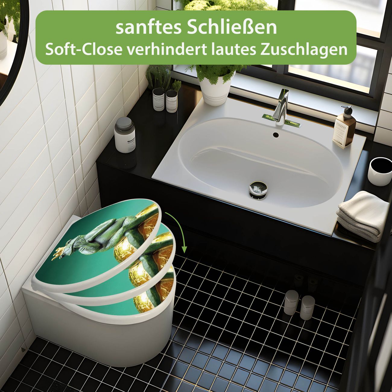 Toilettendeckel weiß mit Absenkautomatik Motiv Froschkönig