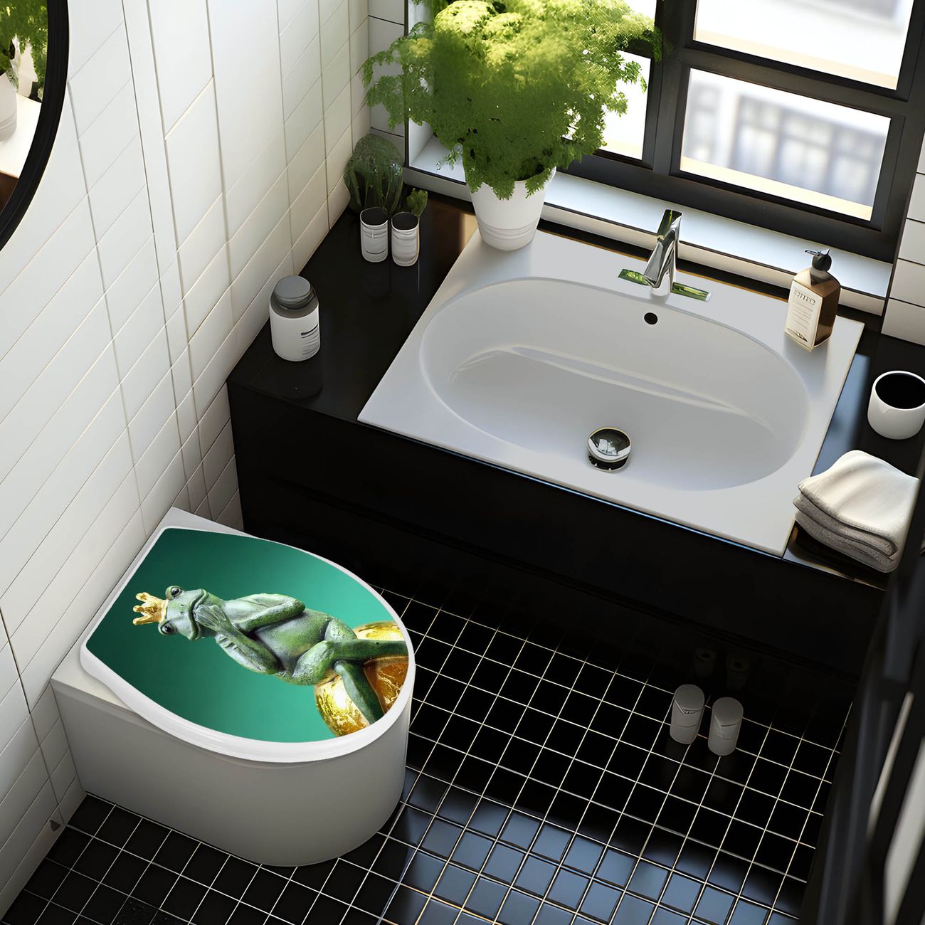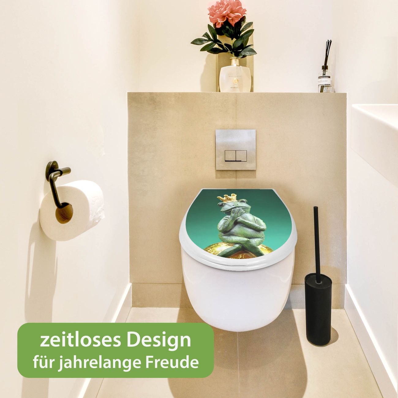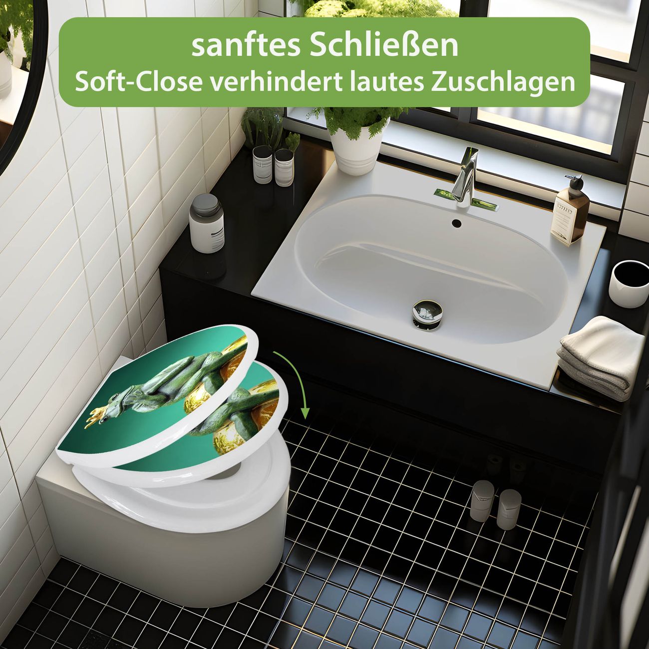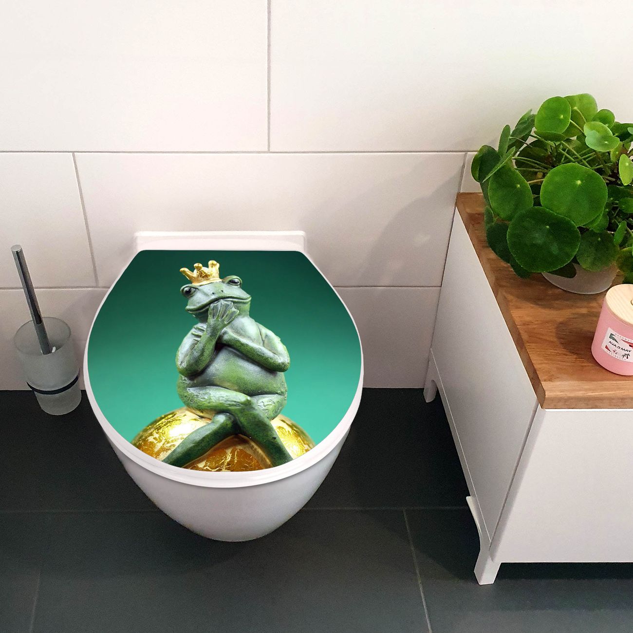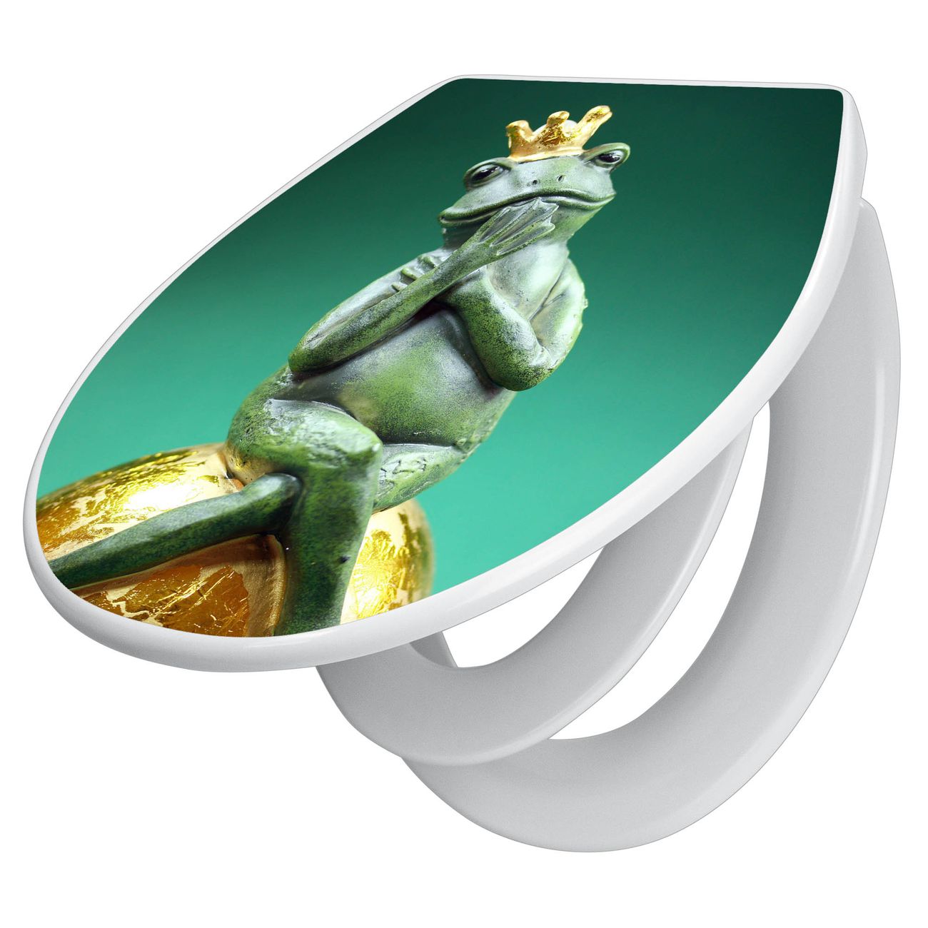Toilettendeckel weiß mit Absenkautomatik Motiv Froschkönig