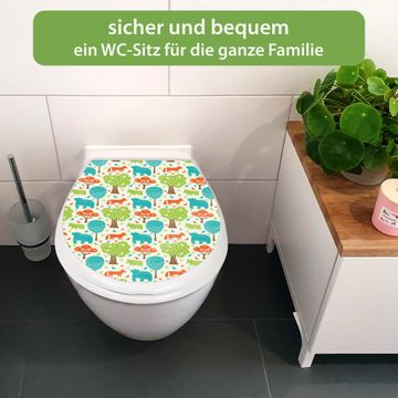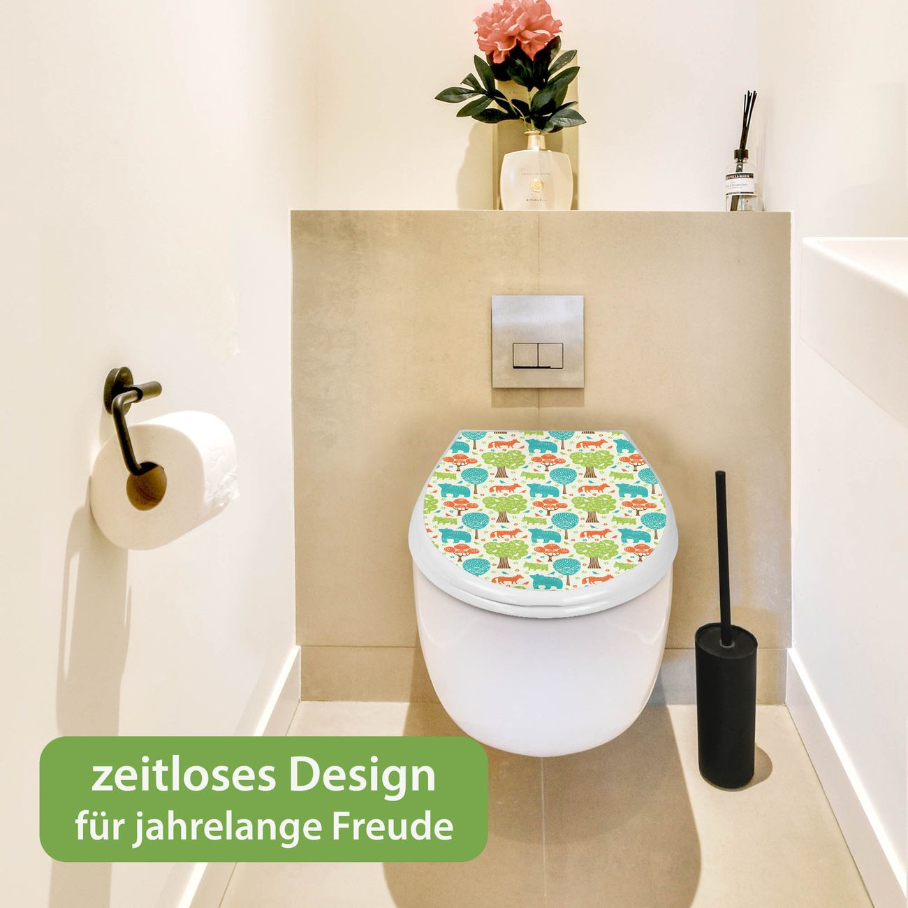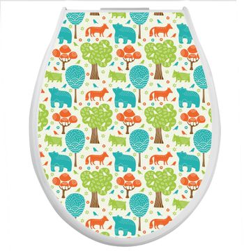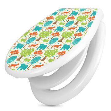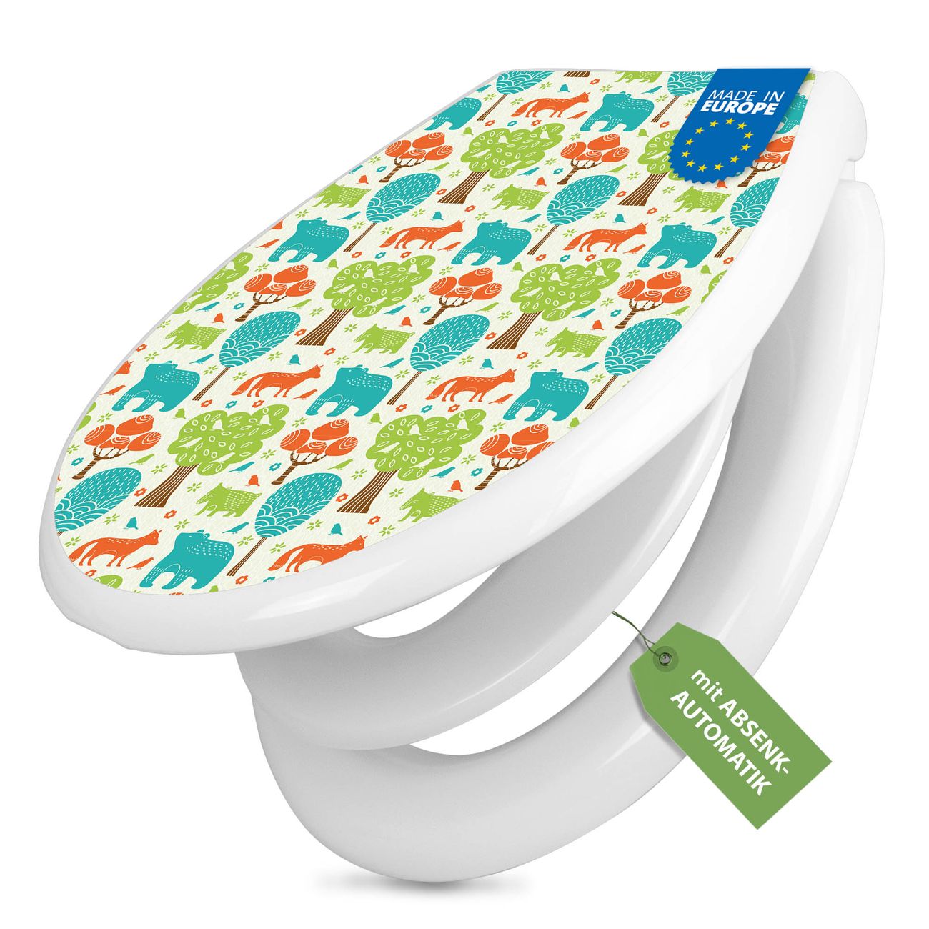 Toilettendeckel weiß mit Absenkautomatik Motiv Fuchs Bär Wald