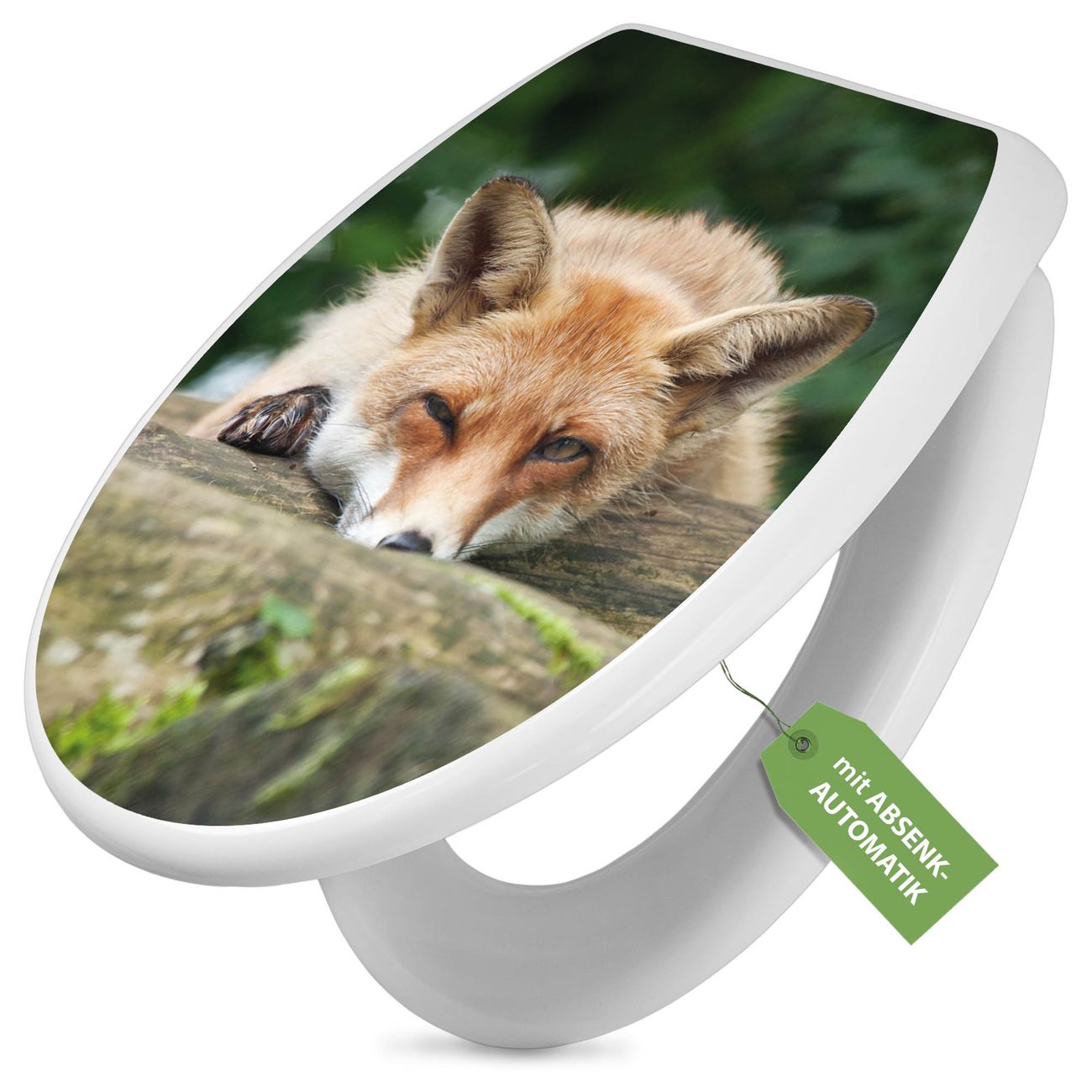 Toilettendeckel weiß mit Absenkautomatik Motiv Fuchs Relax