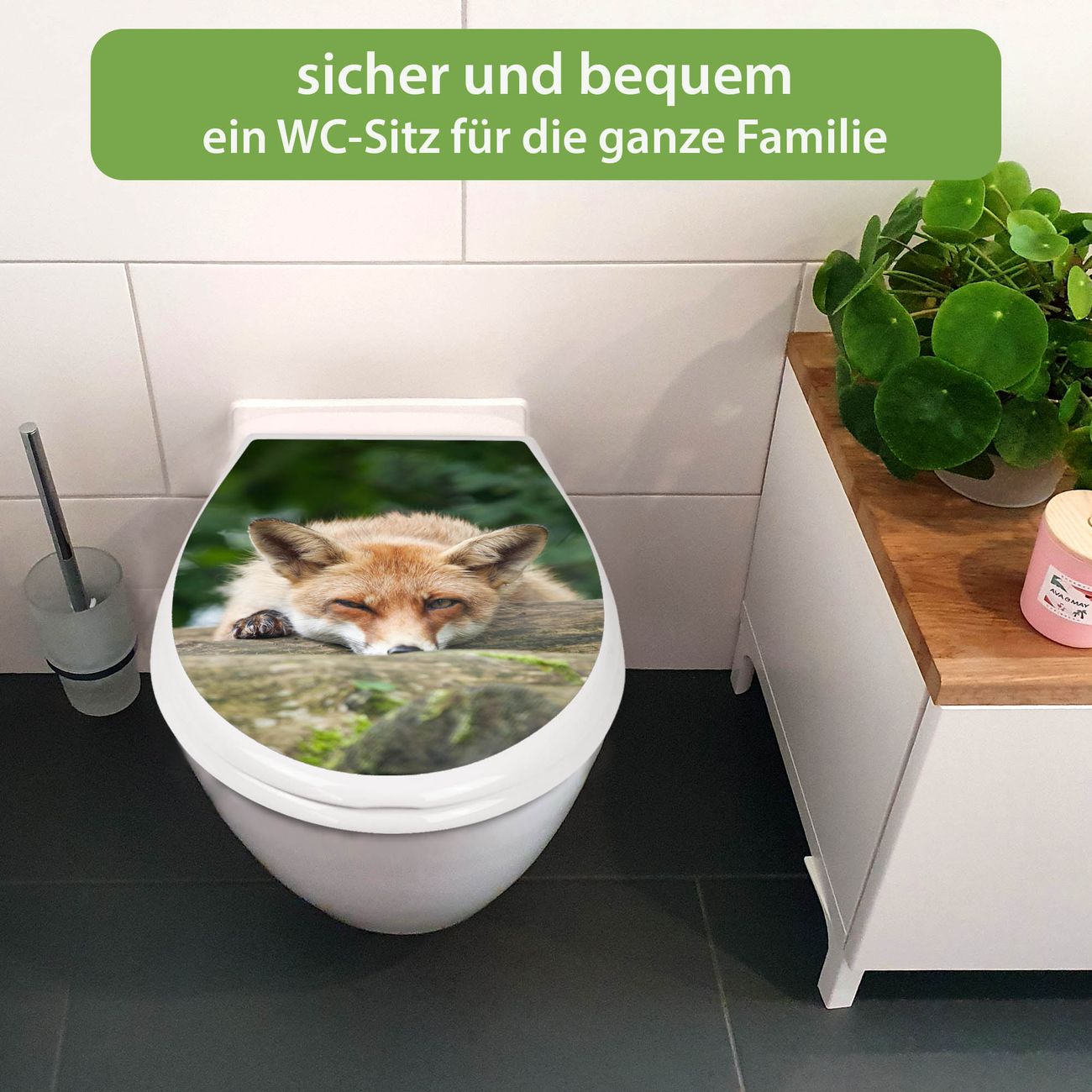 Toilettendeckel weiß mit Absenkautomatik Motiv Fuchs Relax