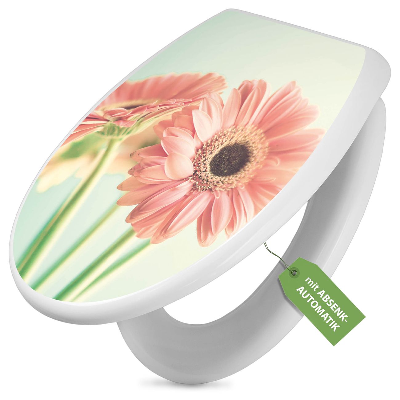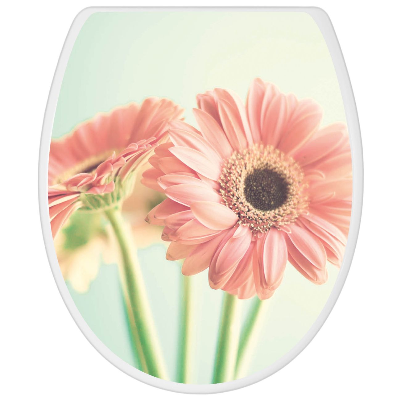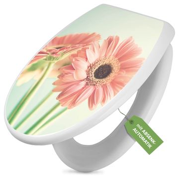 Toilettendeckel weiß mit Absenkautomatik Motiv Fünf Gerbera