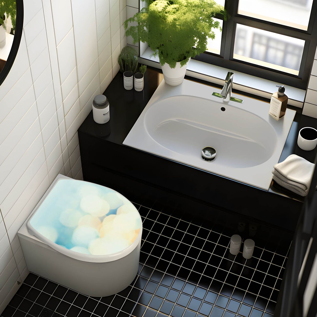 Toilettendeckel weiß mit Absenkautomatik Motiv Funkelnde Lichter