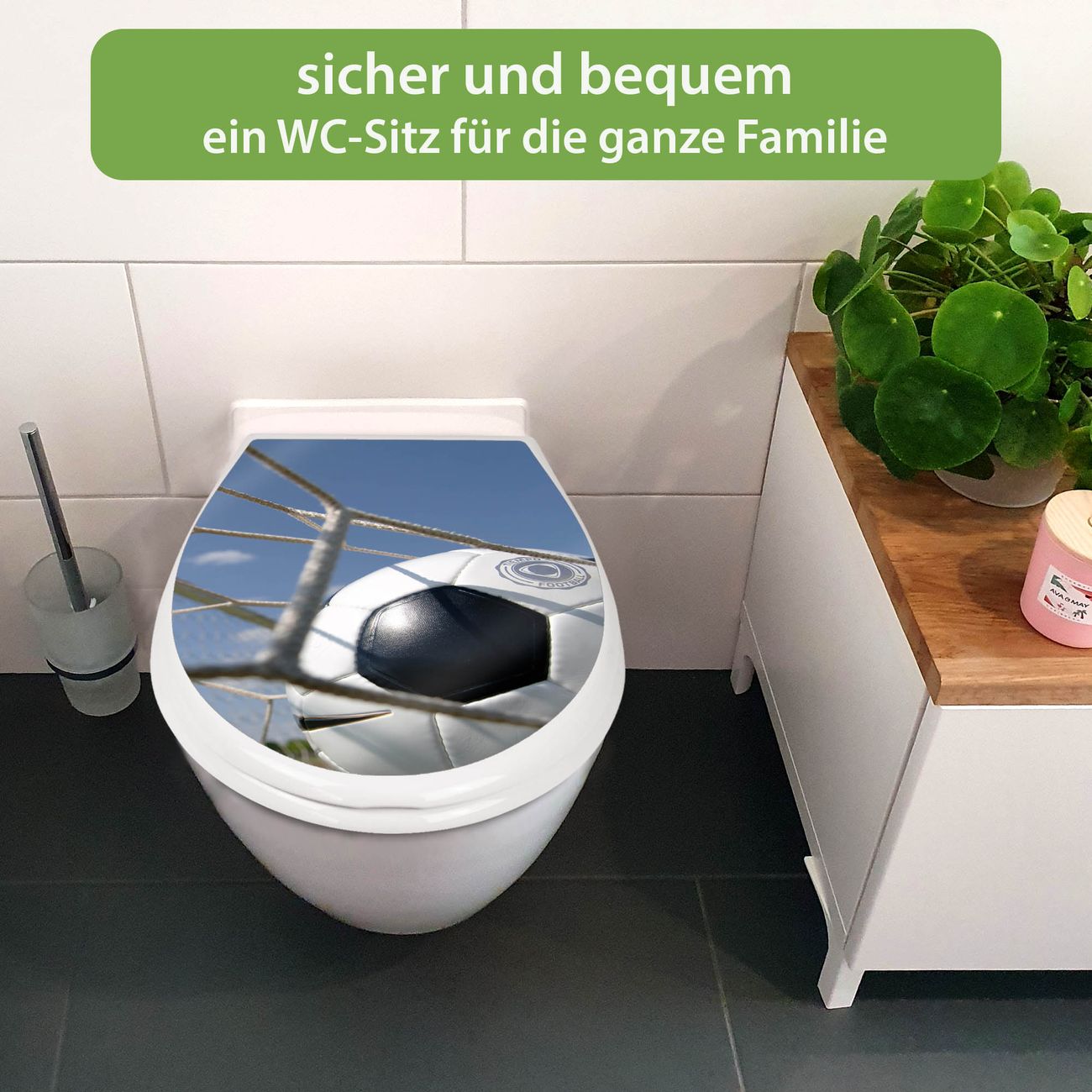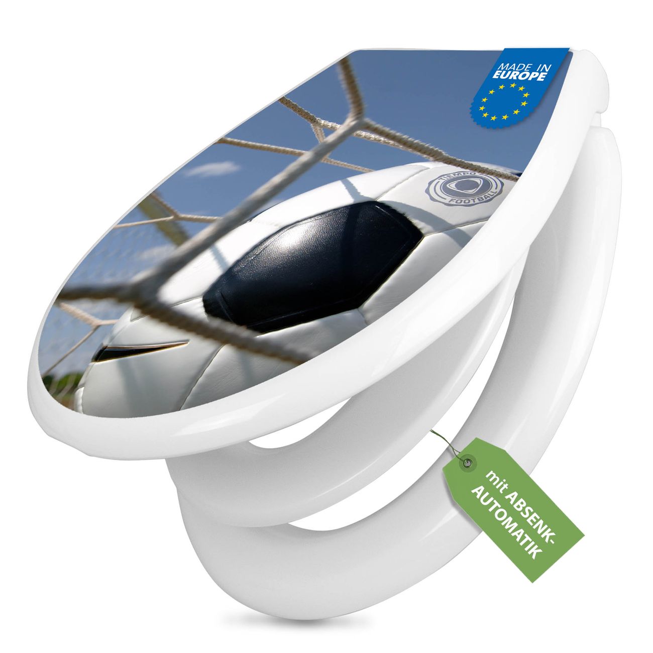 Toilettendeckel weiß mit Absenkautomatik Motiv Fußball