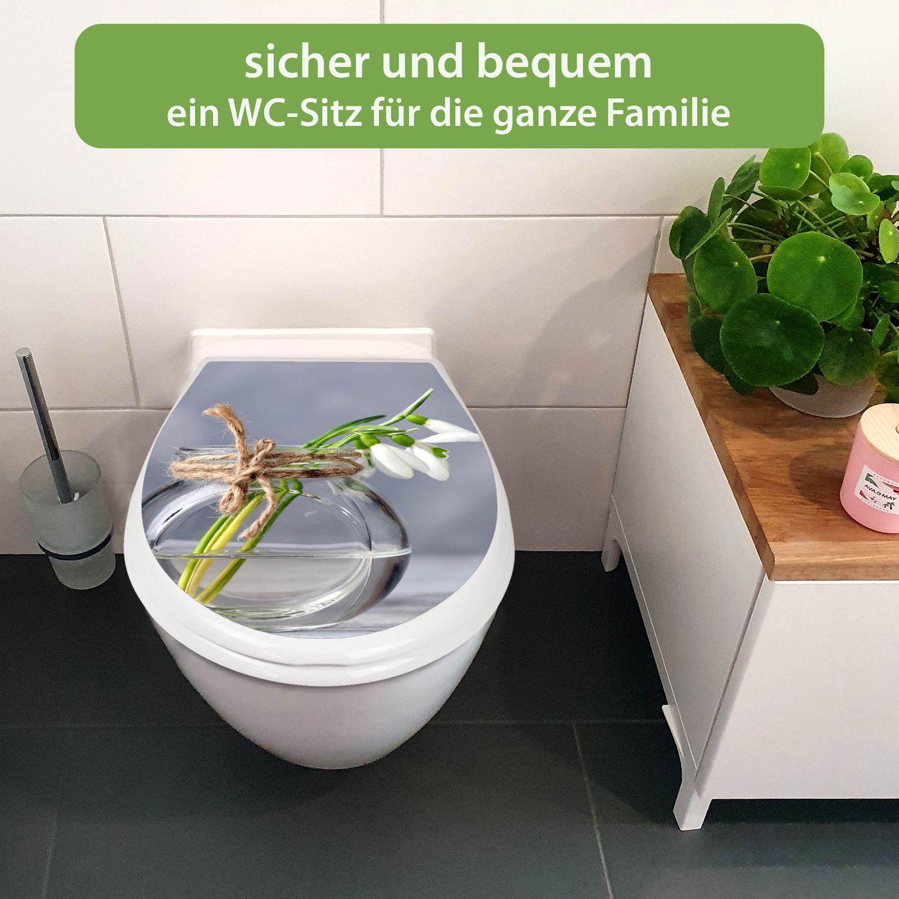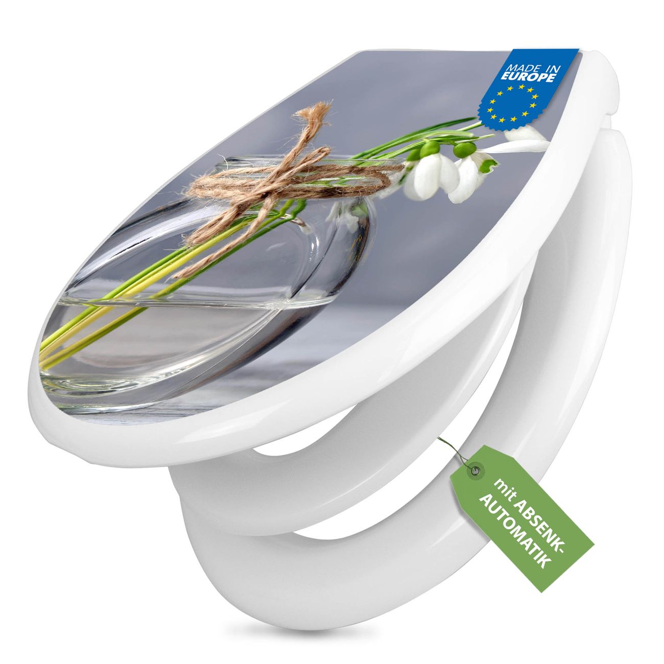 Toilettendeckel weiß mit Absenkautomatik Motiv Gänseblümchen im Glas