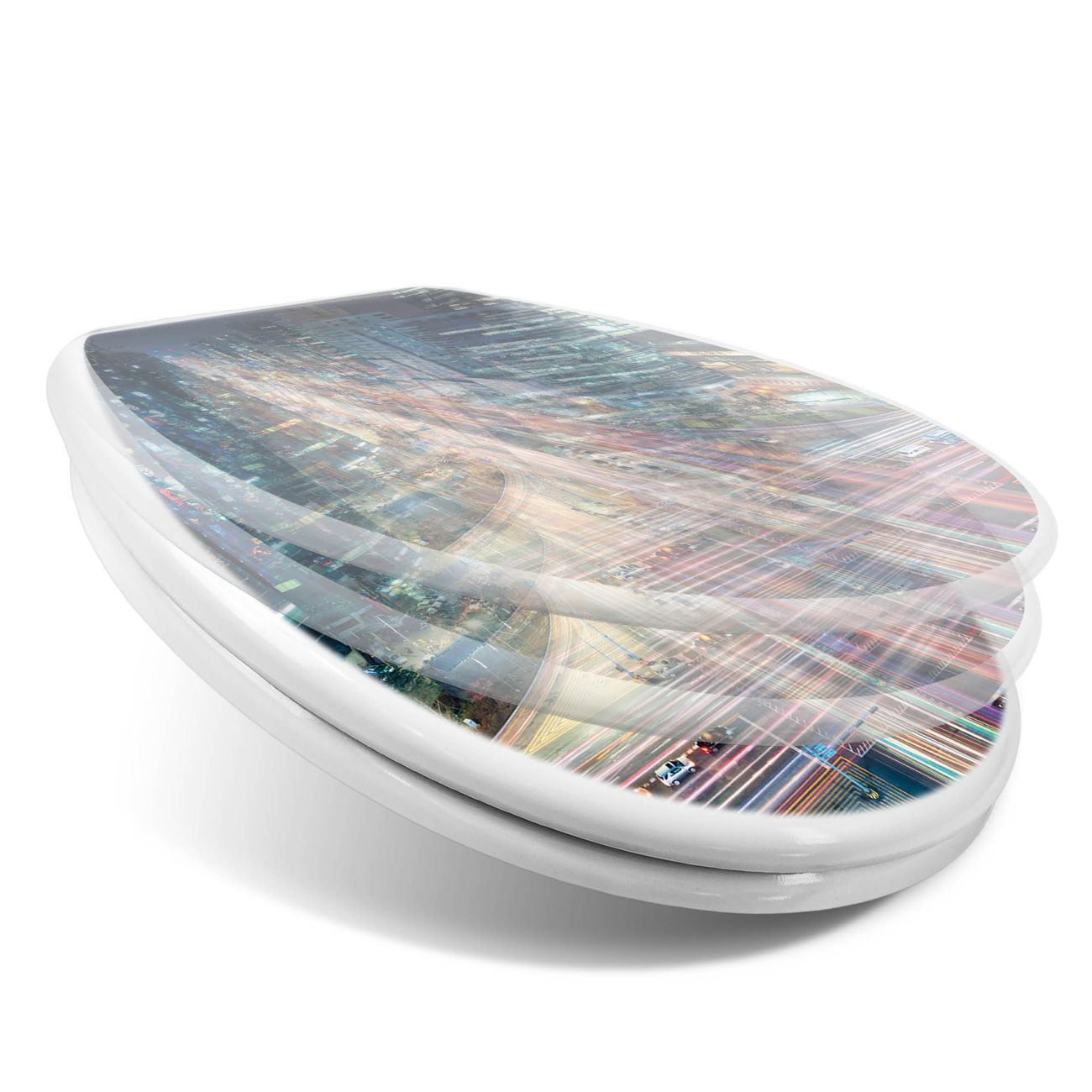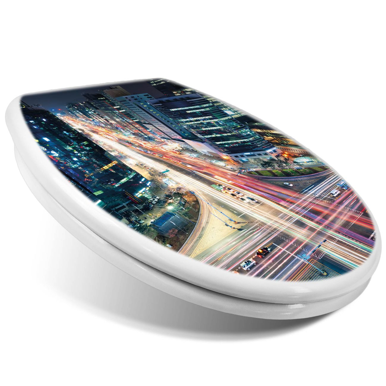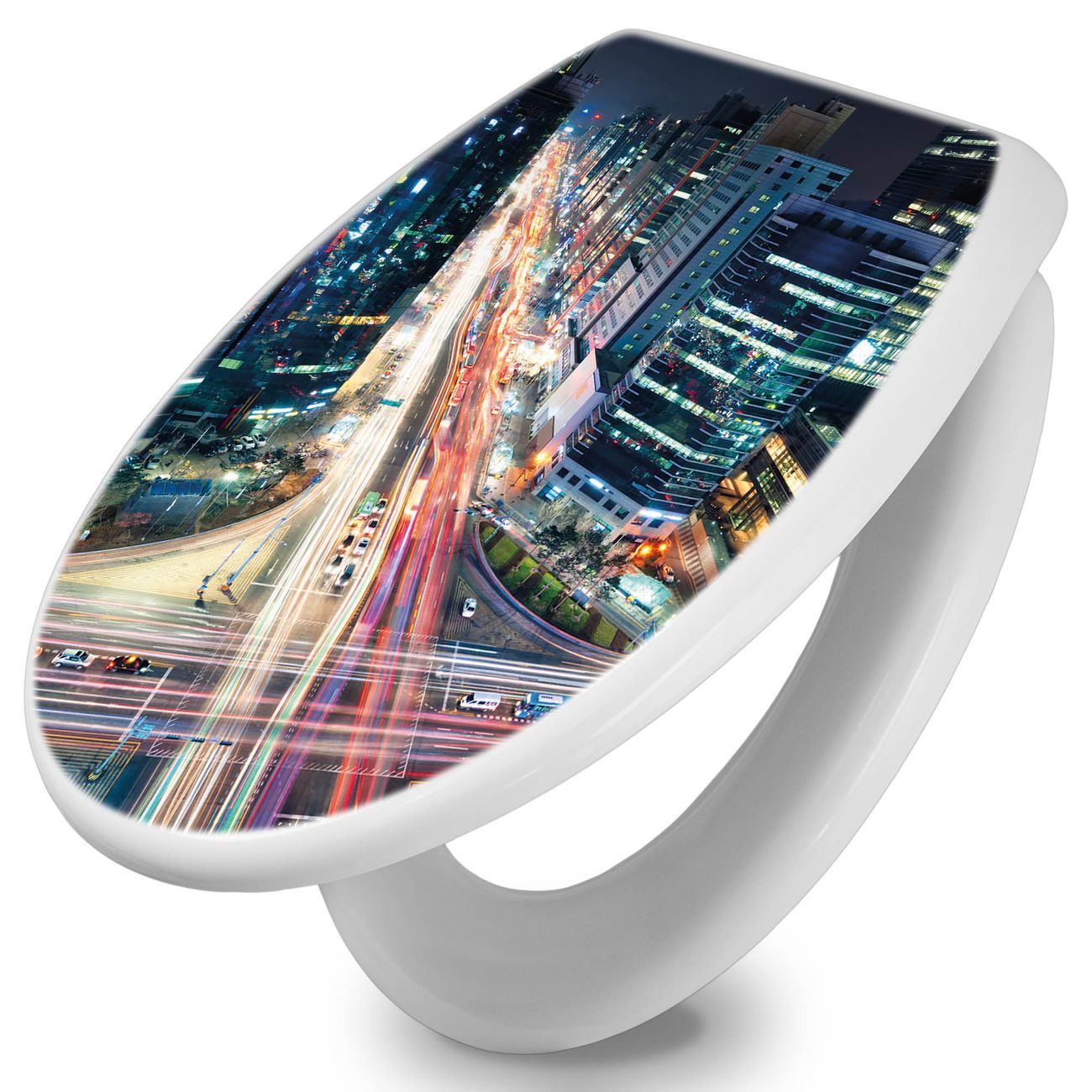 Toilettendeckel weiß mit Absenkautomatik Motiv Gangnam Bei Nacht