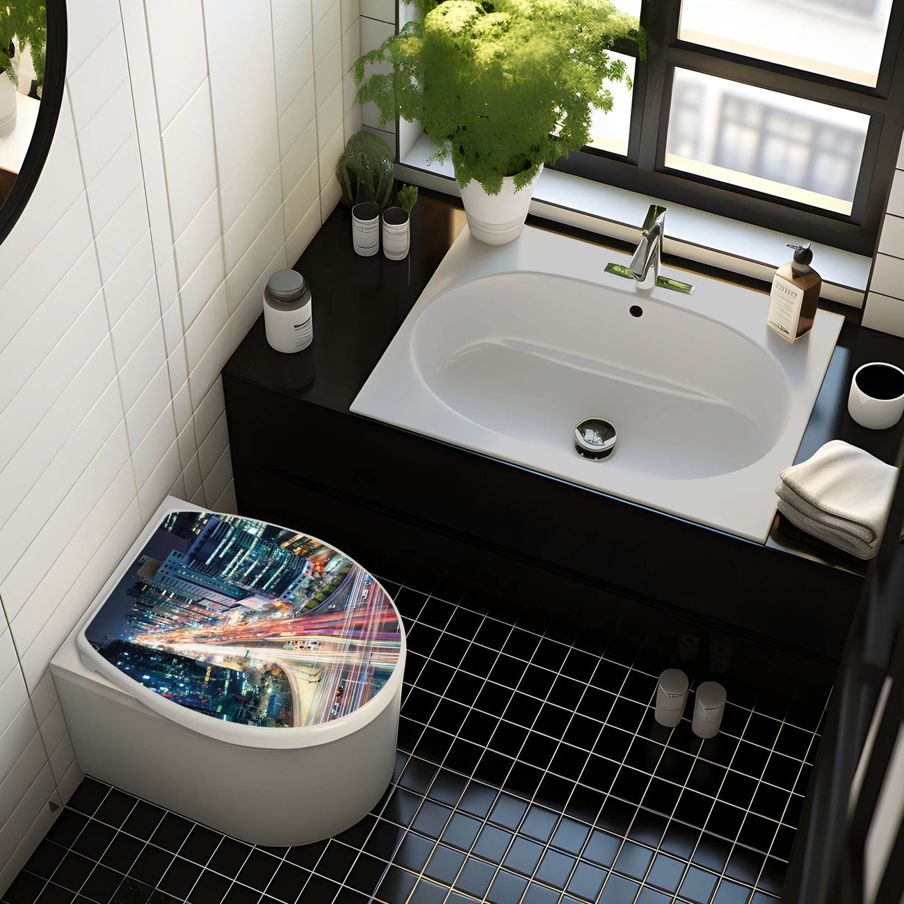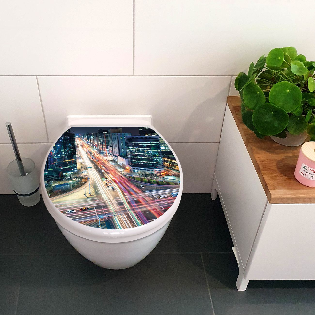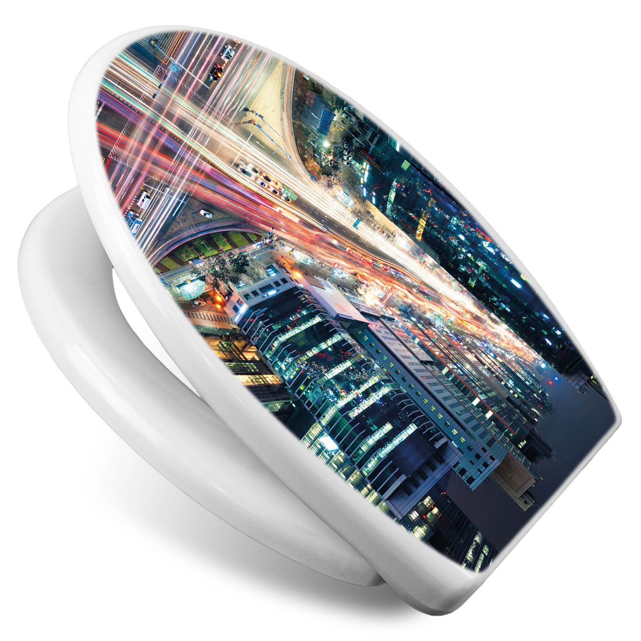 Toilettendeckel weiß mit Absenkautomatik Motiv Gangnam Bei Nacht