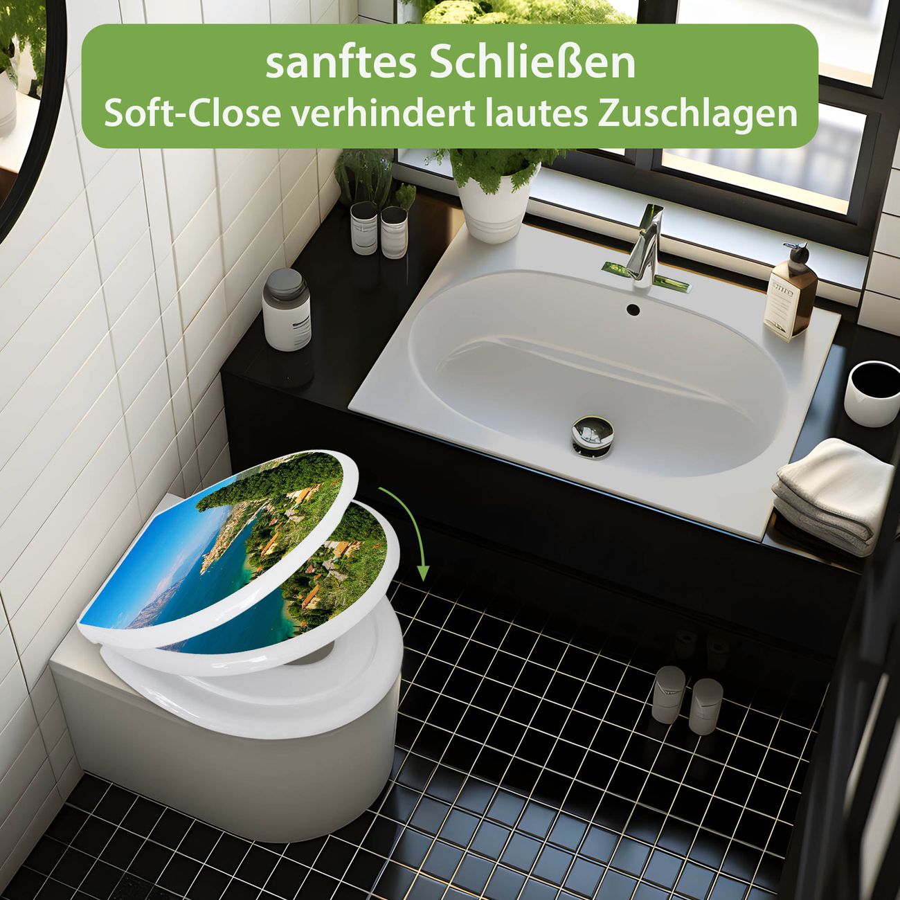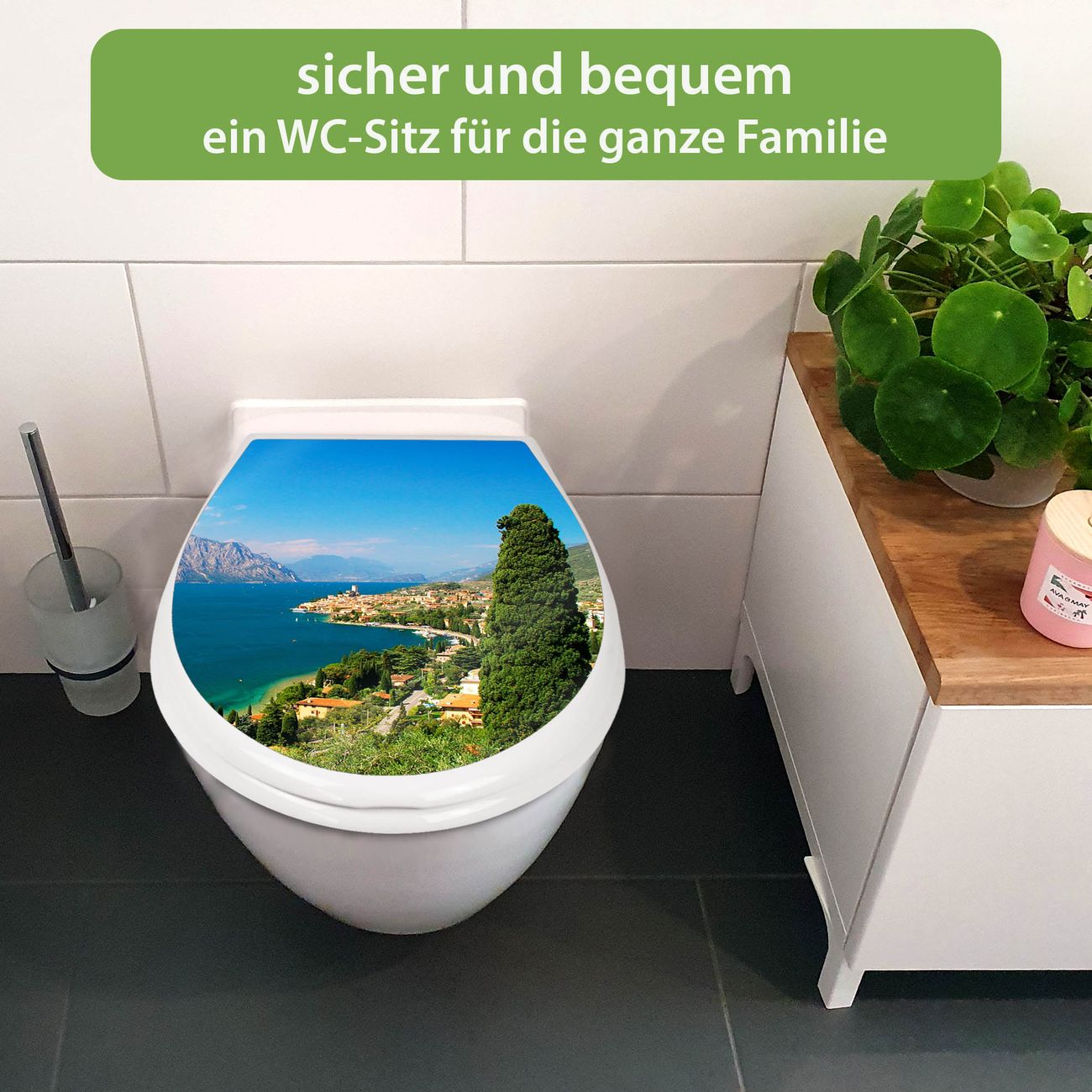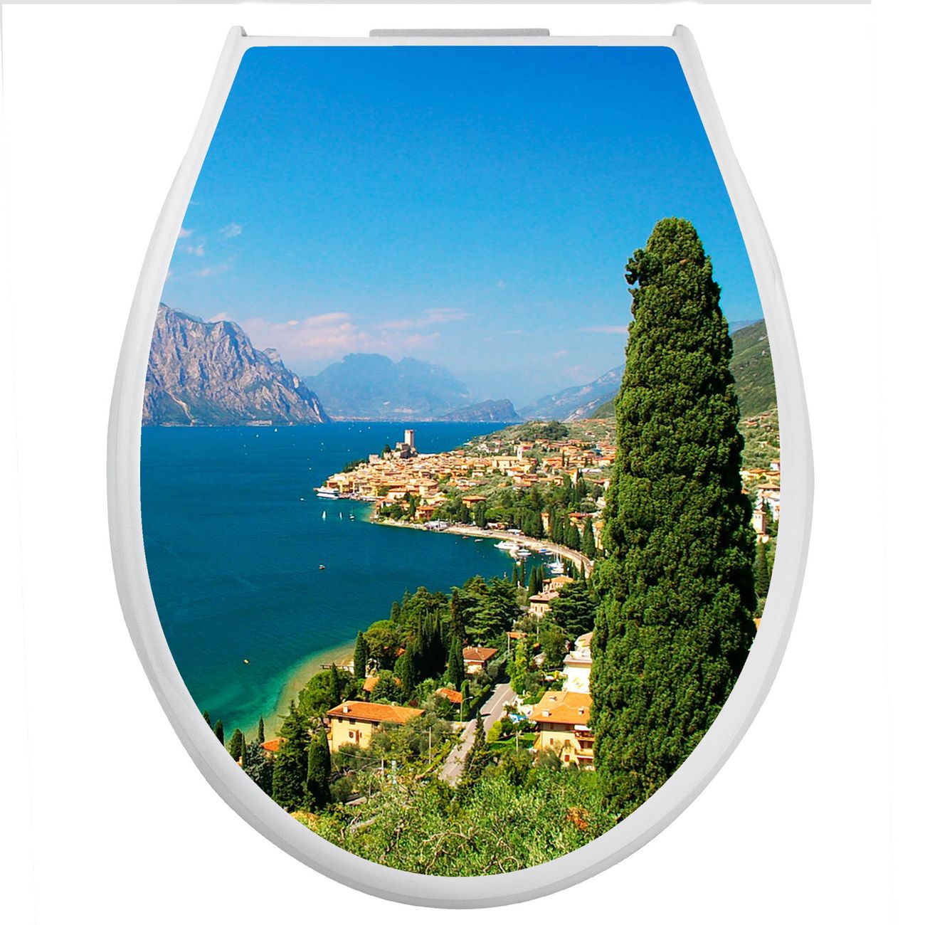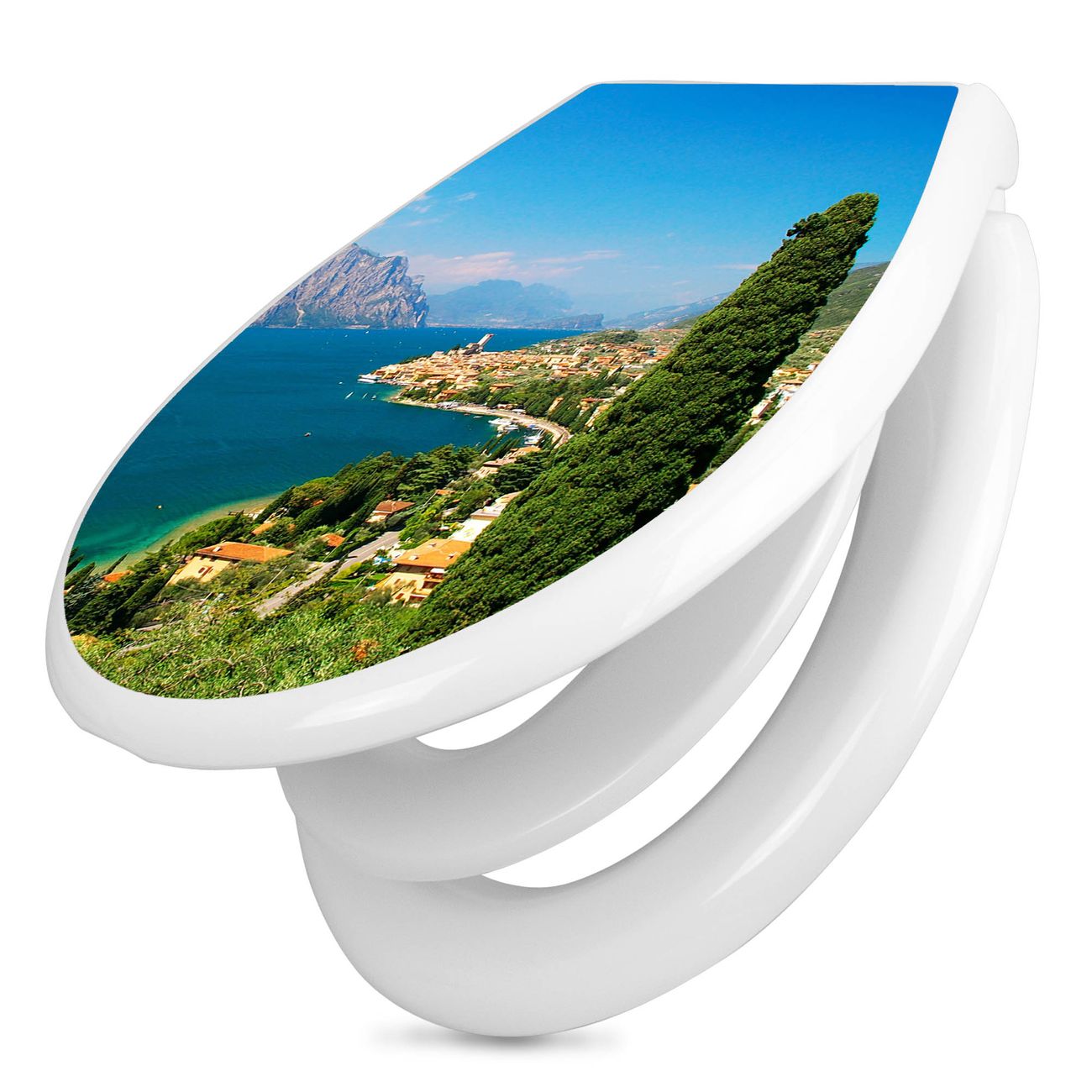 Toilettendeckel weiß mit Absenkautomatik Motiv Gardasee