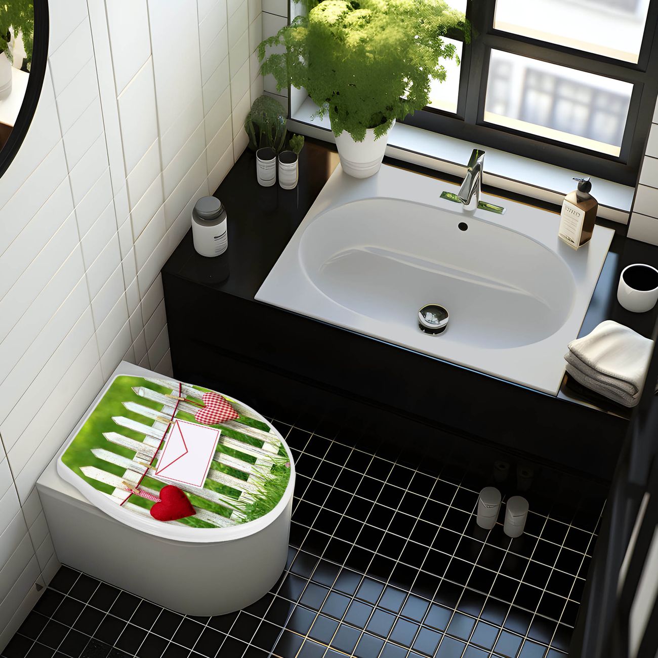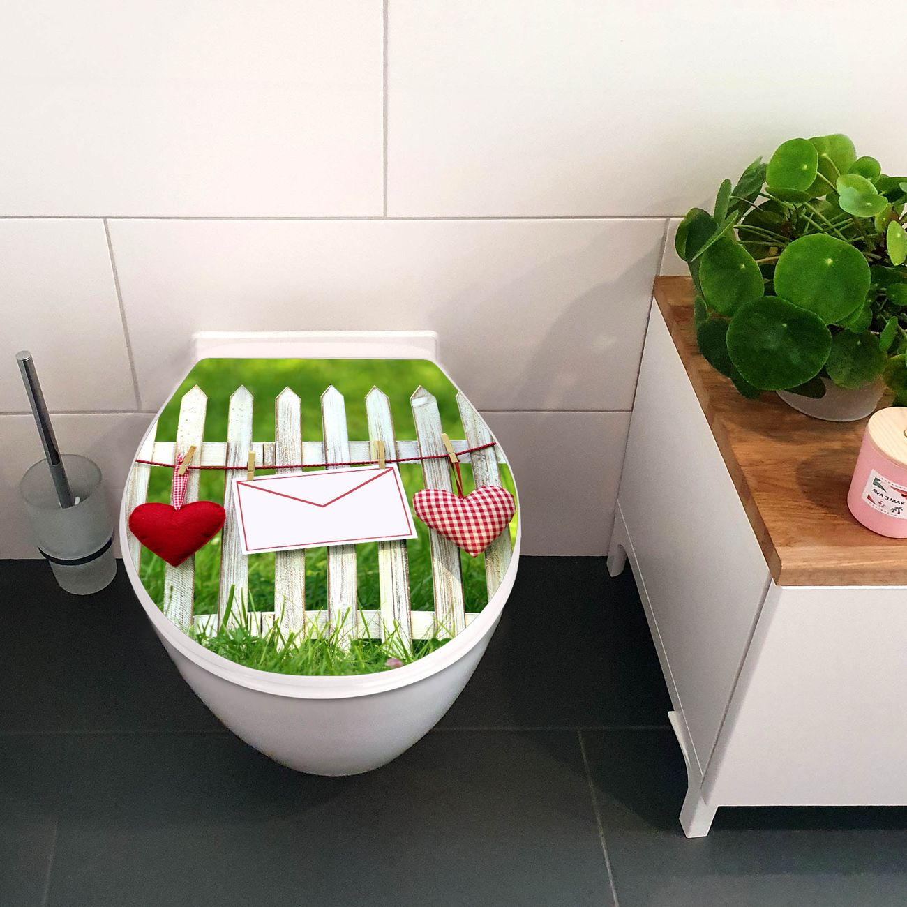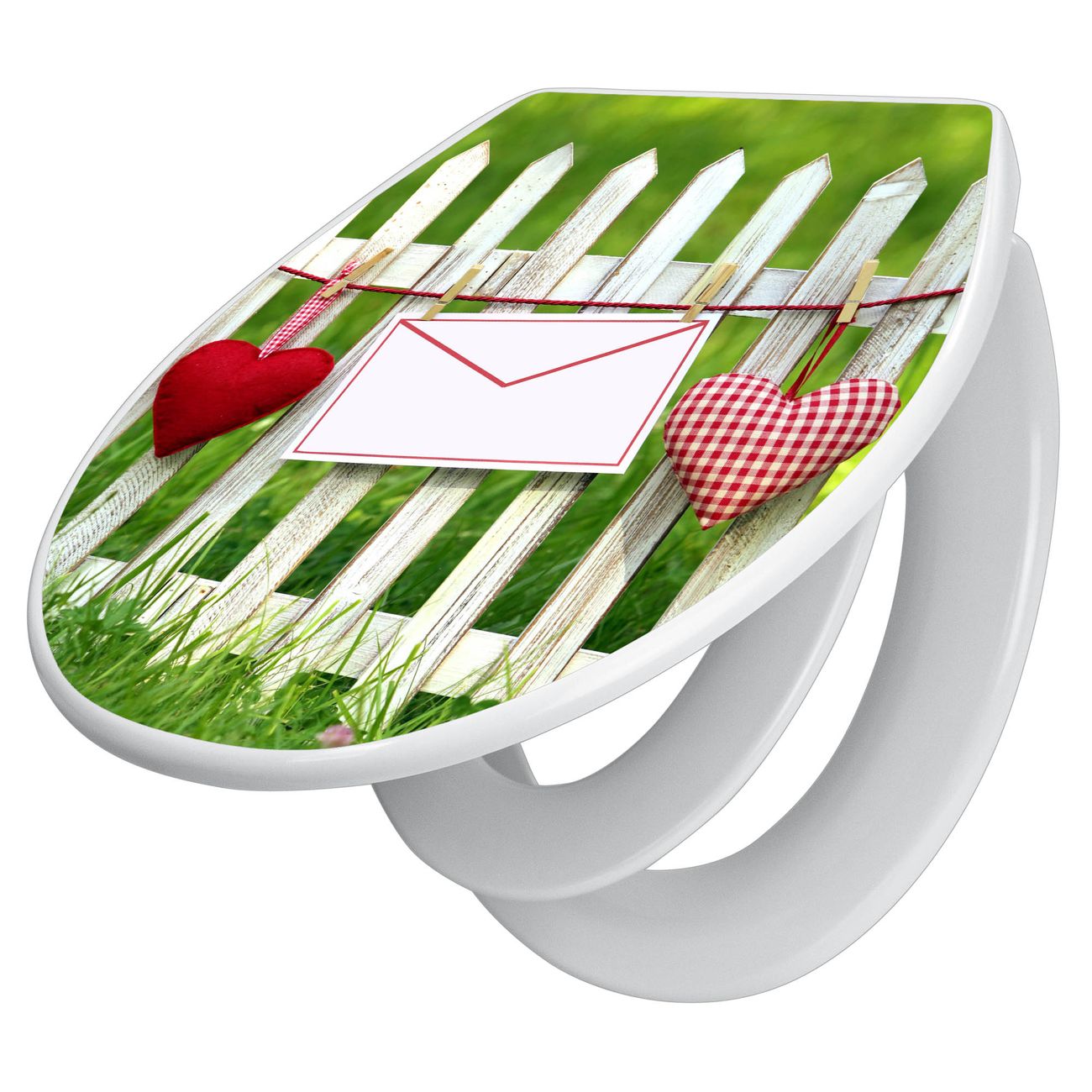 Toilettendeckel weiß mit Absenkautomatik Motiv Gartenzaun