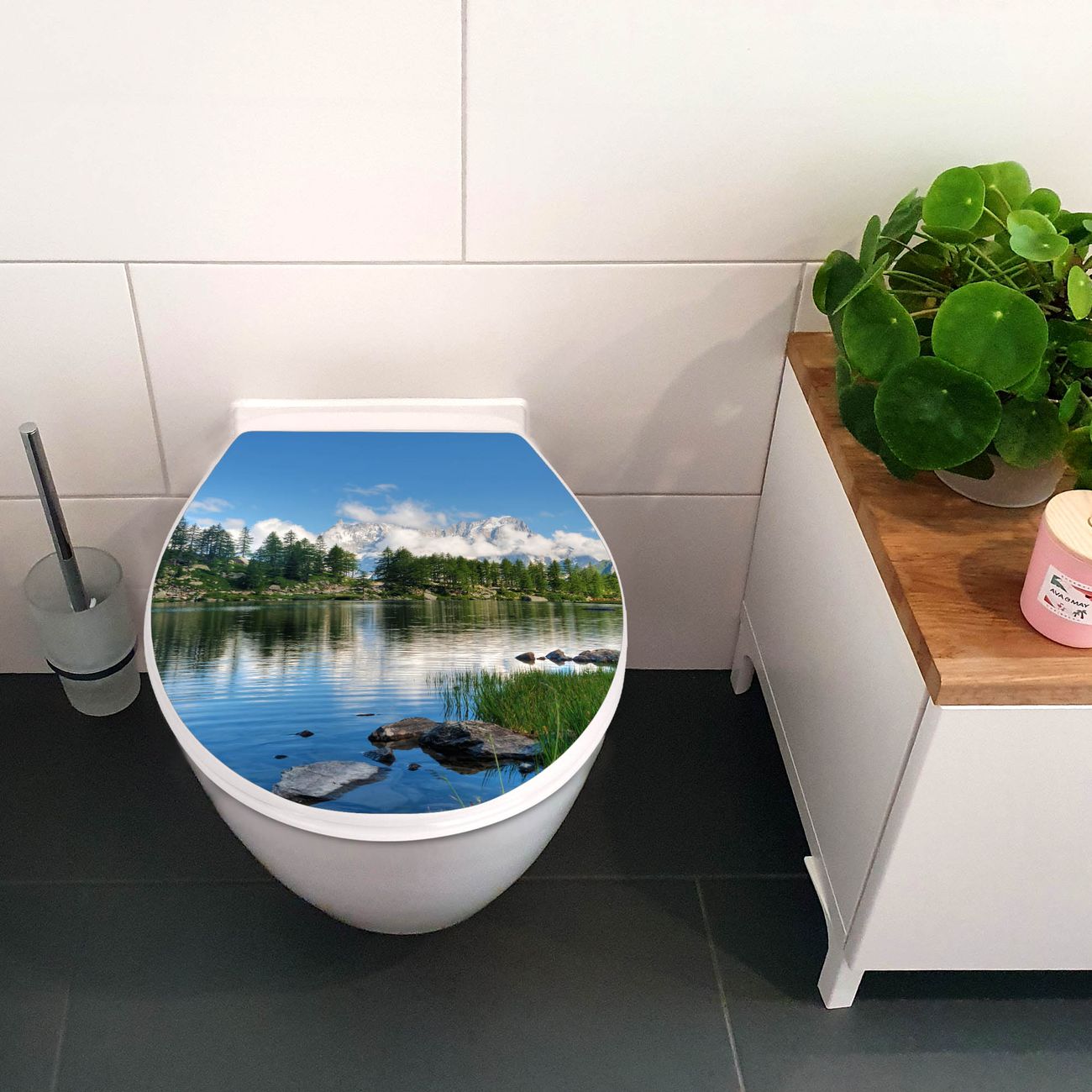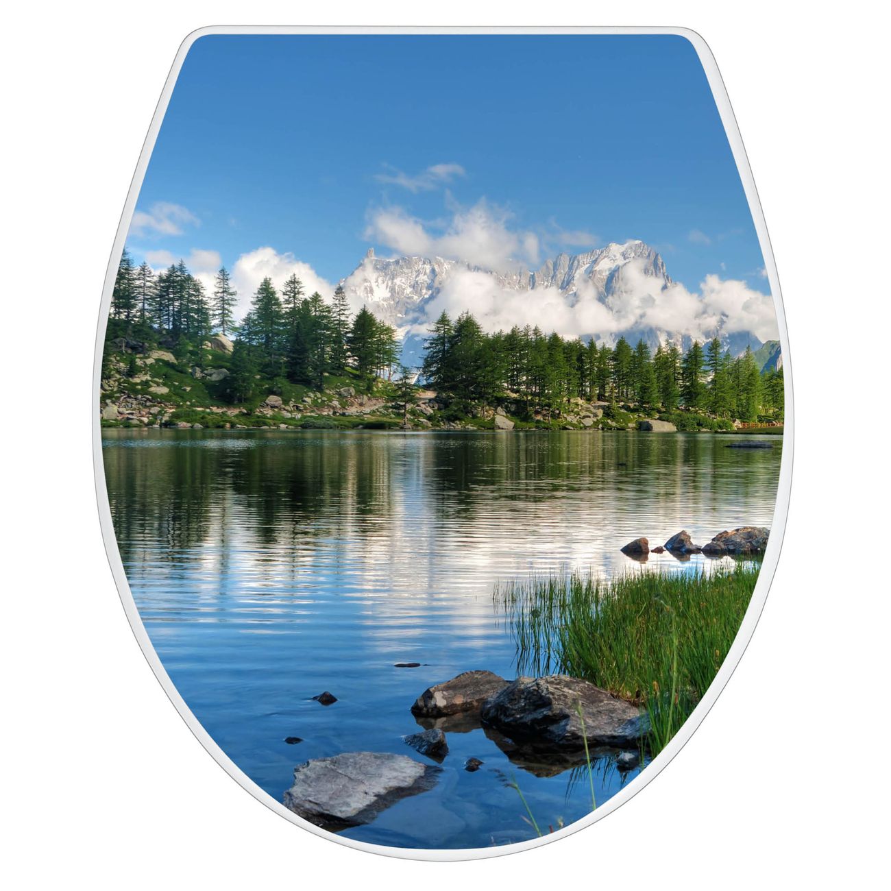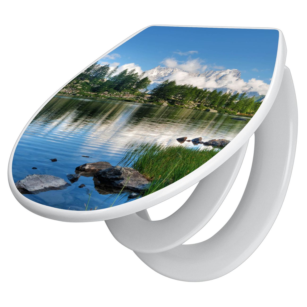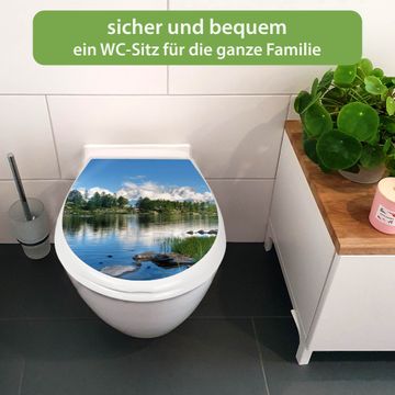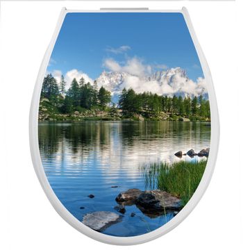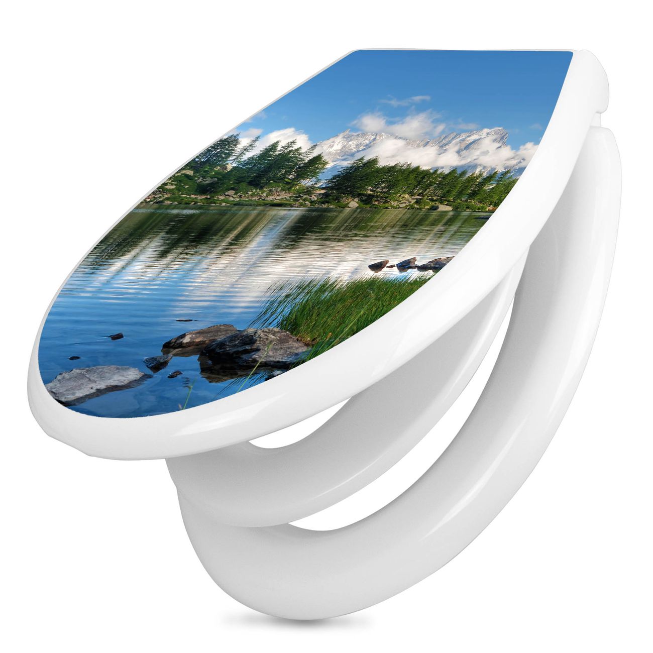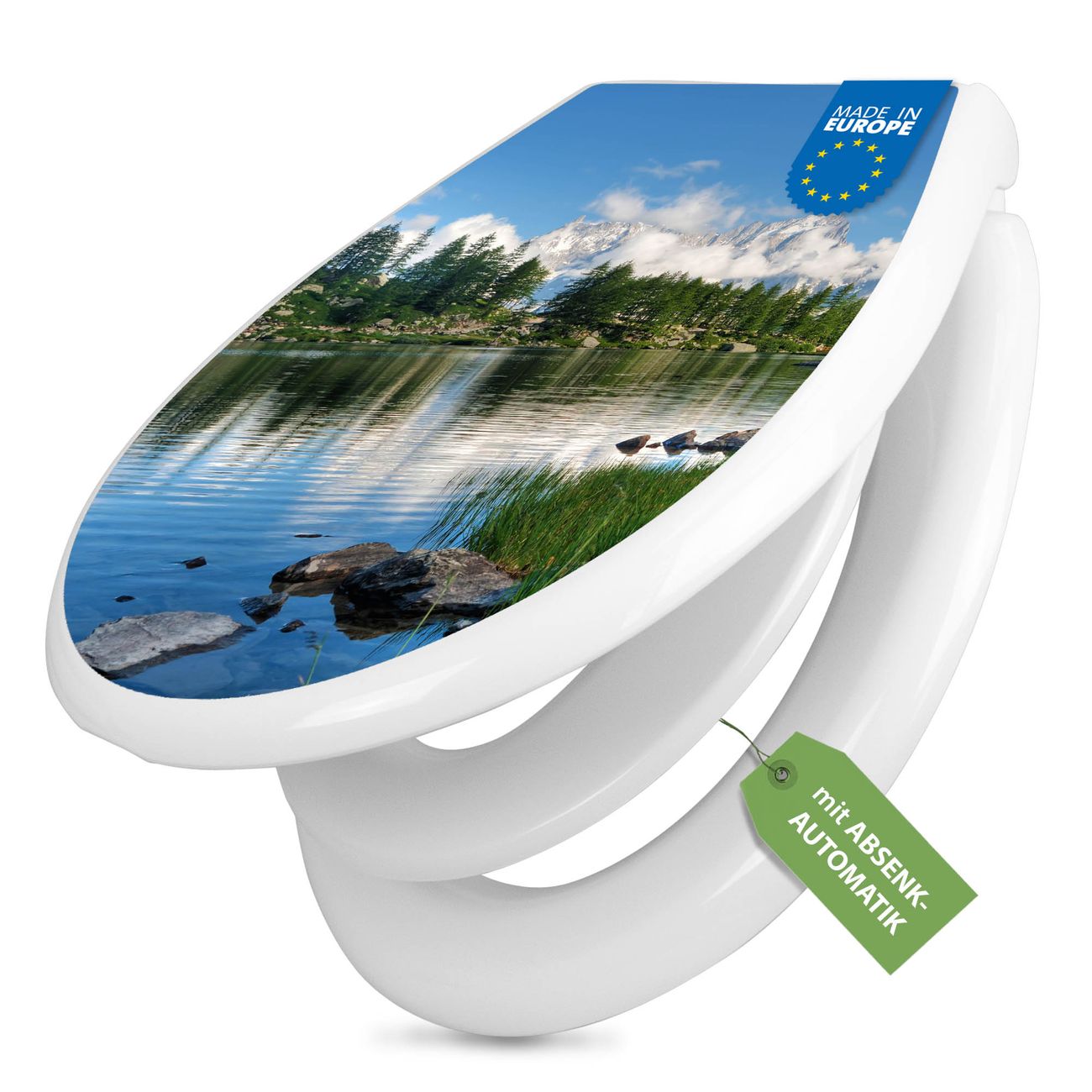 Toilettendeckel weiß mit Absenkautomatik Motiv Gebirgssee
