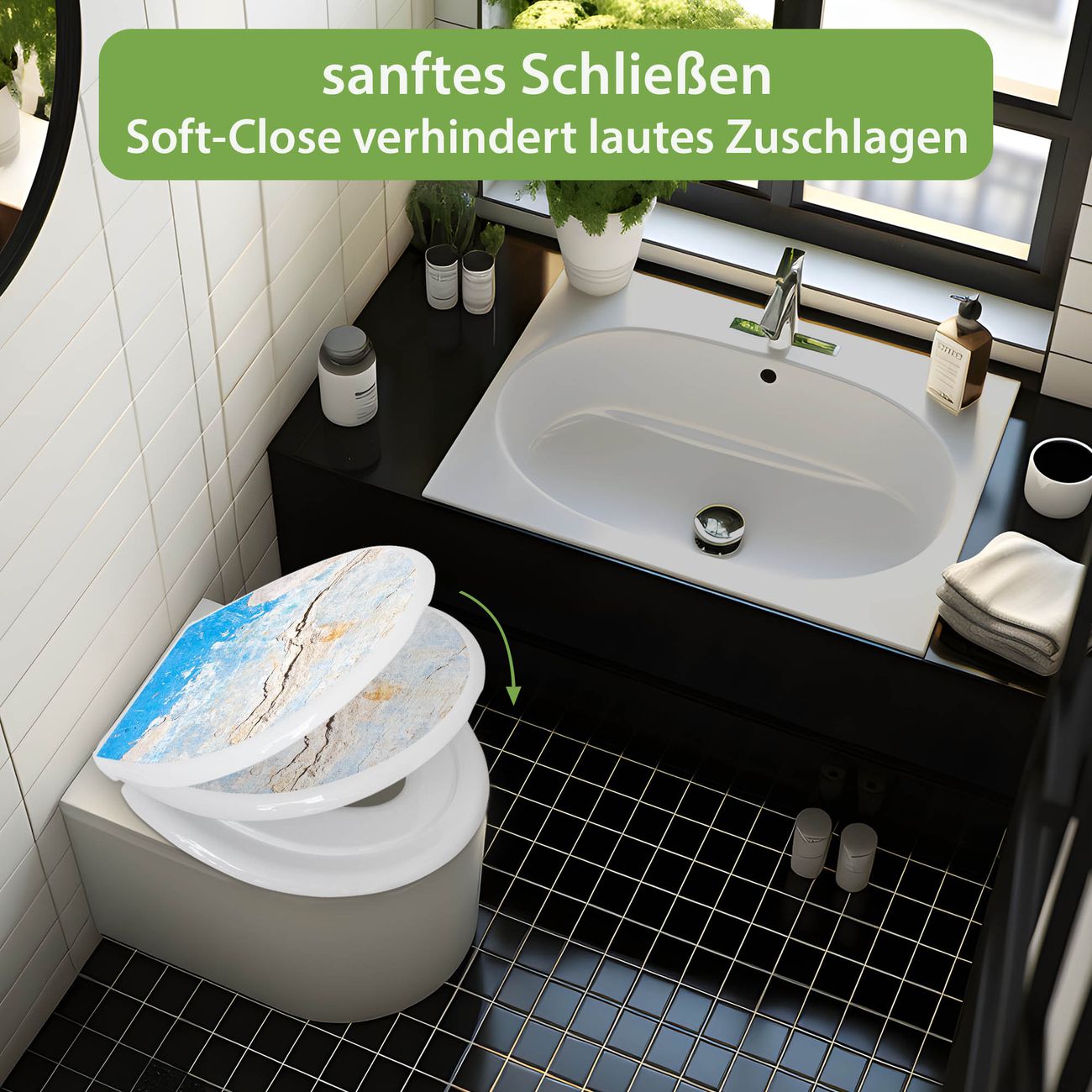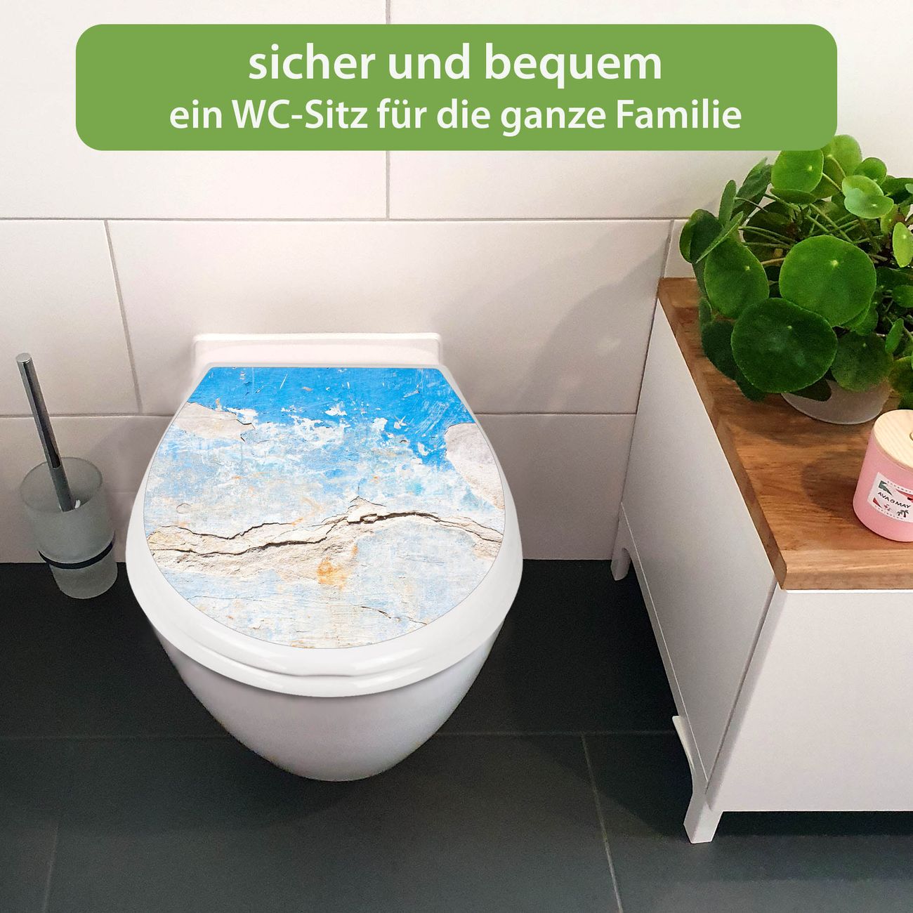 Toilettendeckel weiß mit Absenkautomatik Motiv Gebrochene Wand