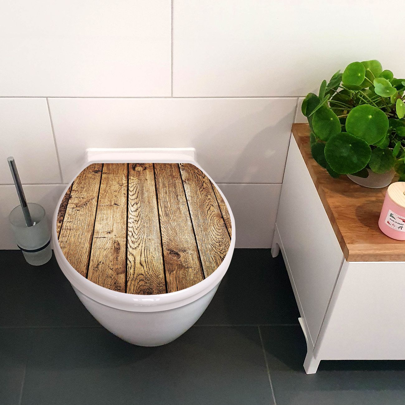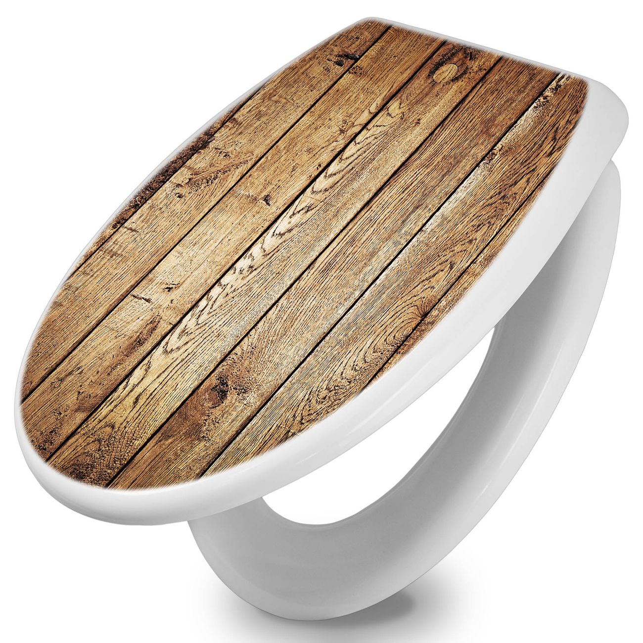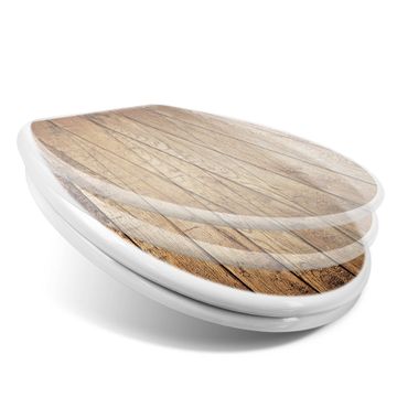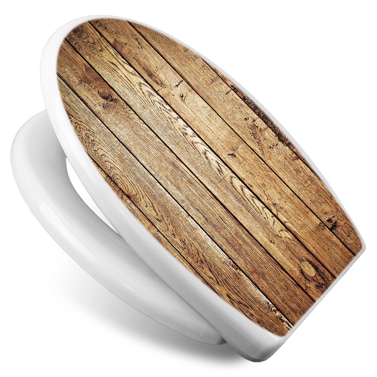 Toilettendeckel weiß mit Absenkautomatik Motiv Geöltes Holz