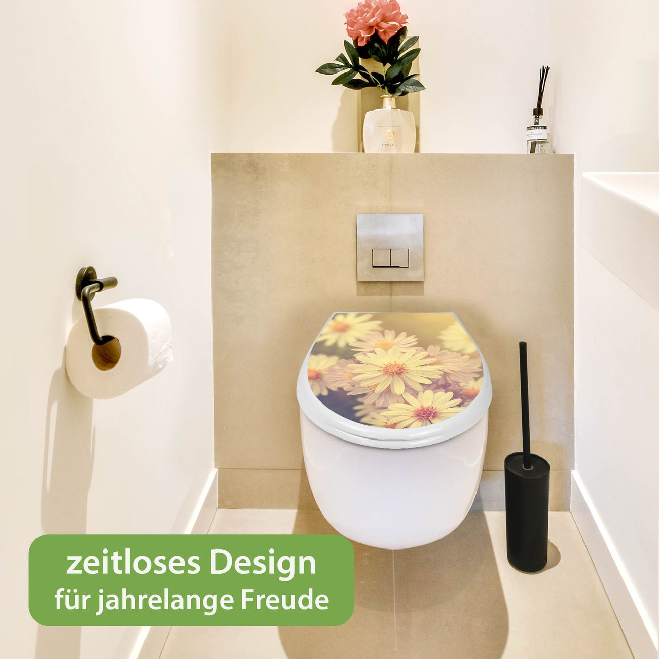 Toilettendeckel weiß mit Absenkautomatik Motiv Gerbera 3