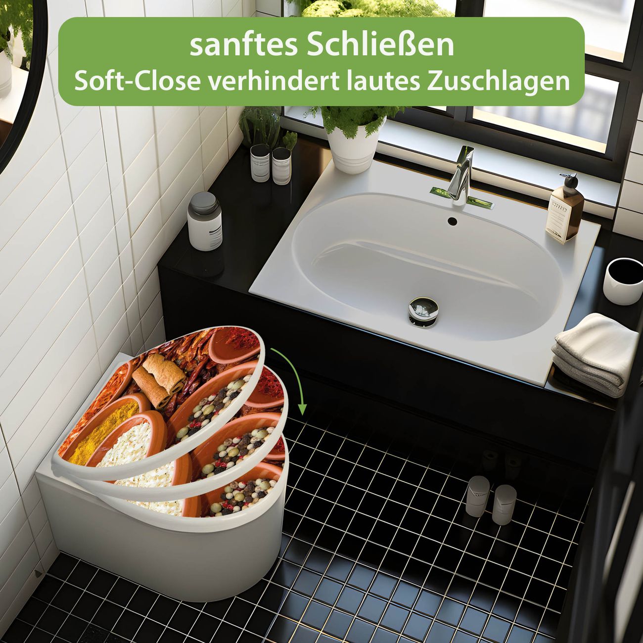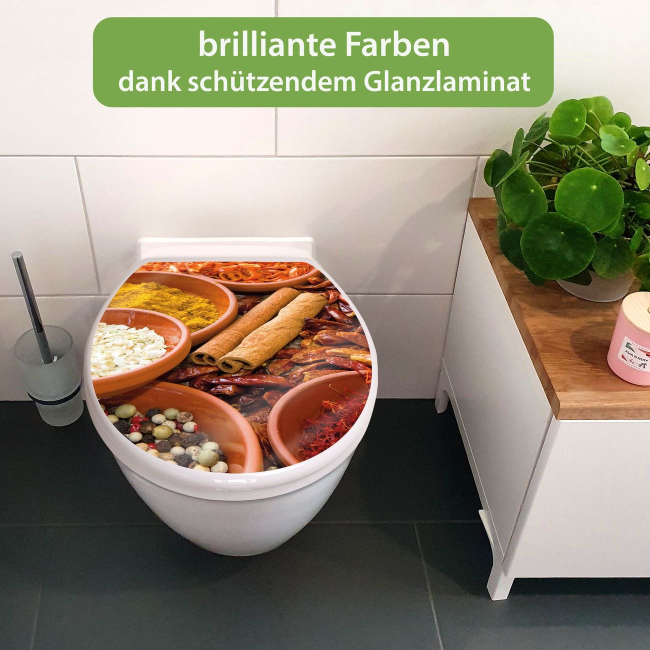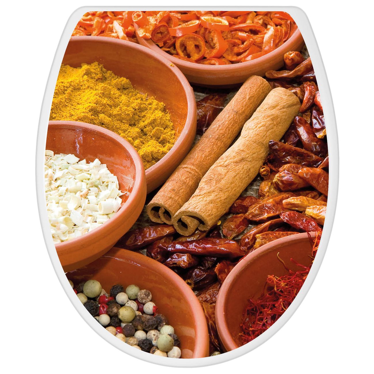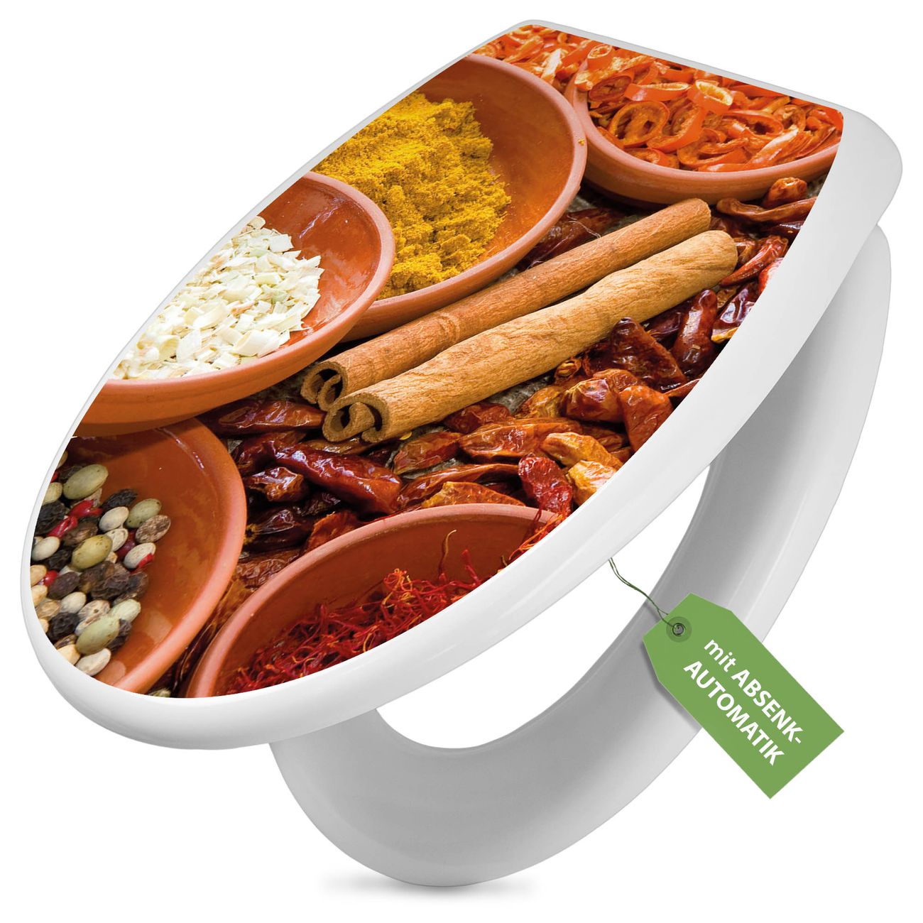 Toilettendeckel weiß mit Absenkautomatik Motiv Gewürze