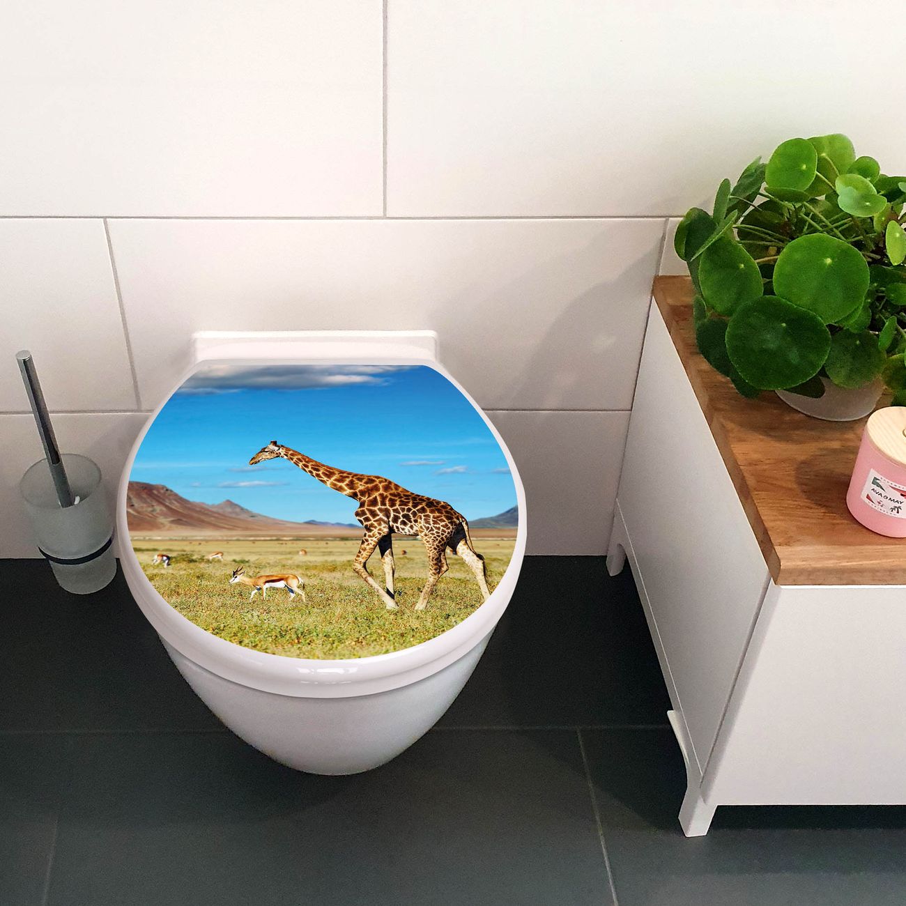 Toilettendeckel weiß mit Absenkautomatik Motiv Giraffe