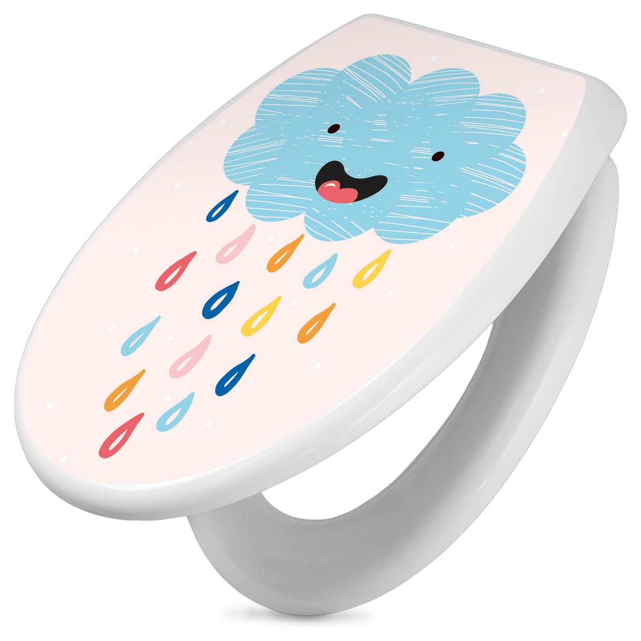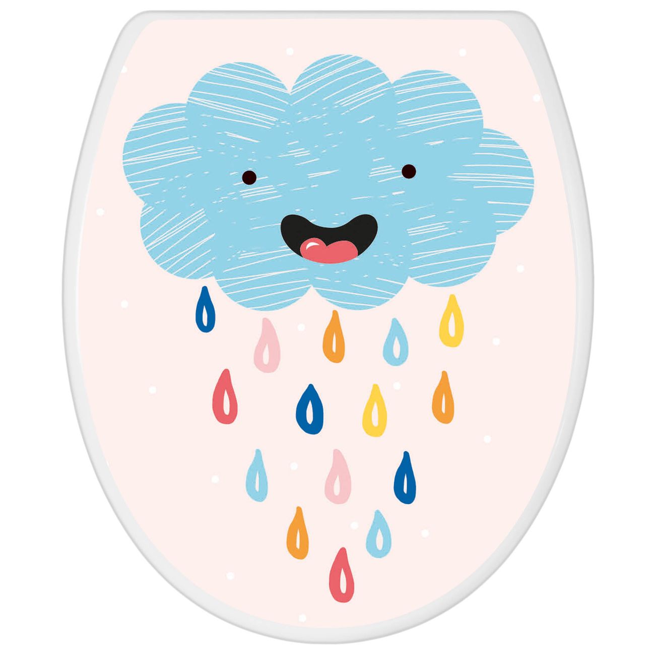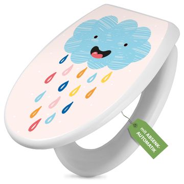 Toilettendeckel weiß mit Absenkautomatik Motiv glückliche Regenwolke